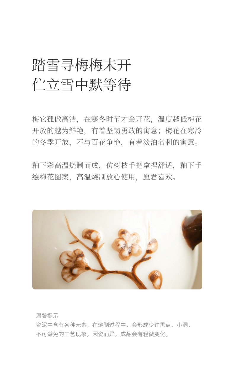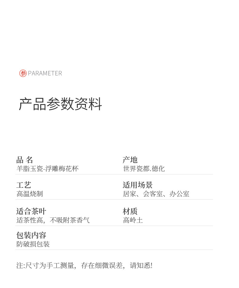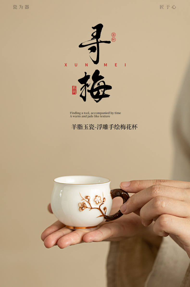 • 양고기 지방 옥 도자기 - 양각 매화 컵