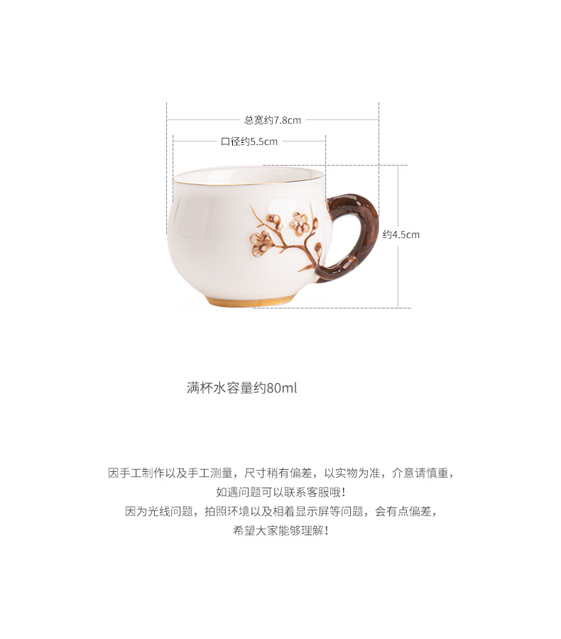 Dehua 차 세트 수트 옥 수제 꽃 차 컵 세라믹 차 세트 마스터 컵 차 시음 컵 커피 컵 쿵푸 차 세트