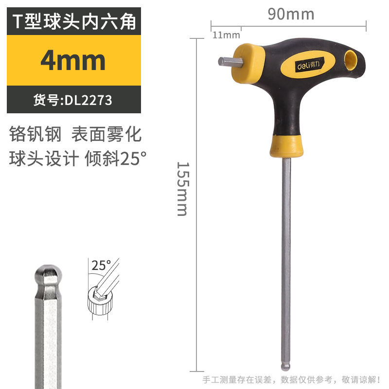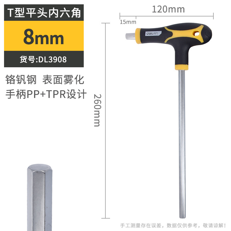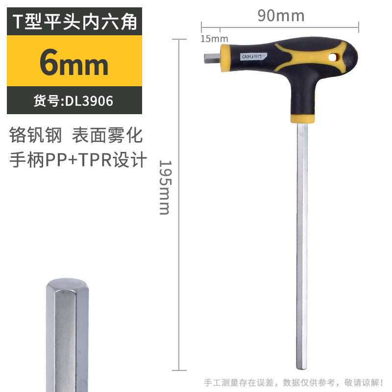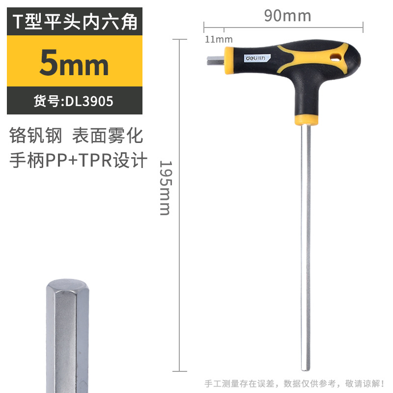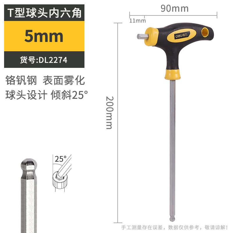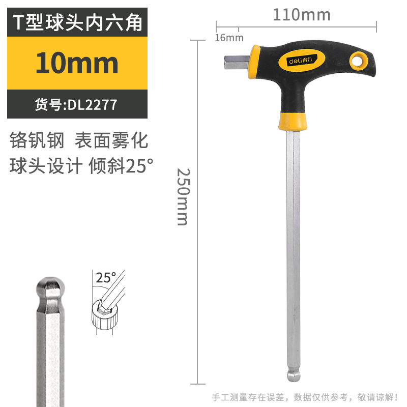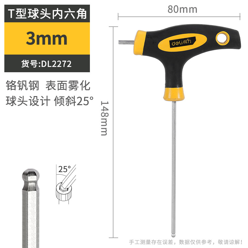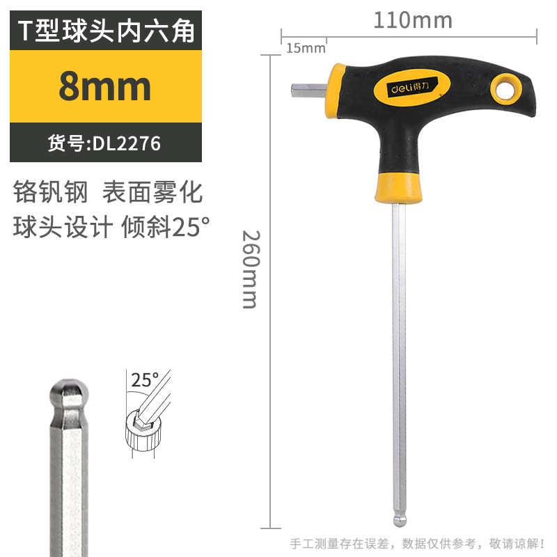델리 T 자형 앨런 렌치 단일 플랫 볼 헤드 핸들 양각 육각 렌치