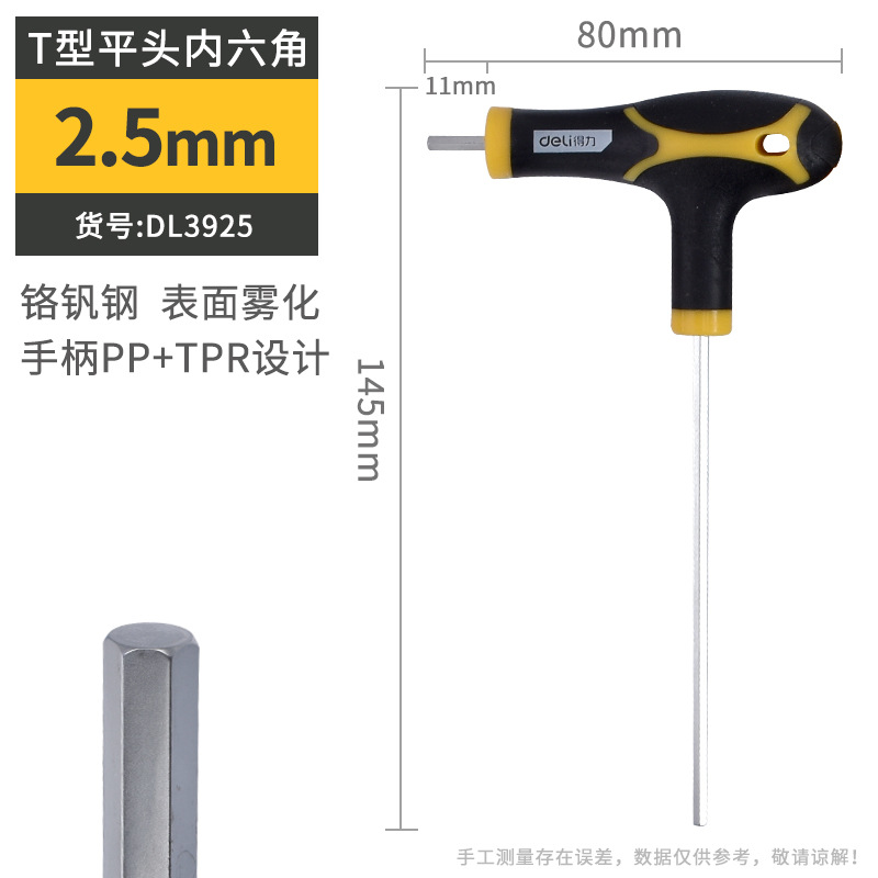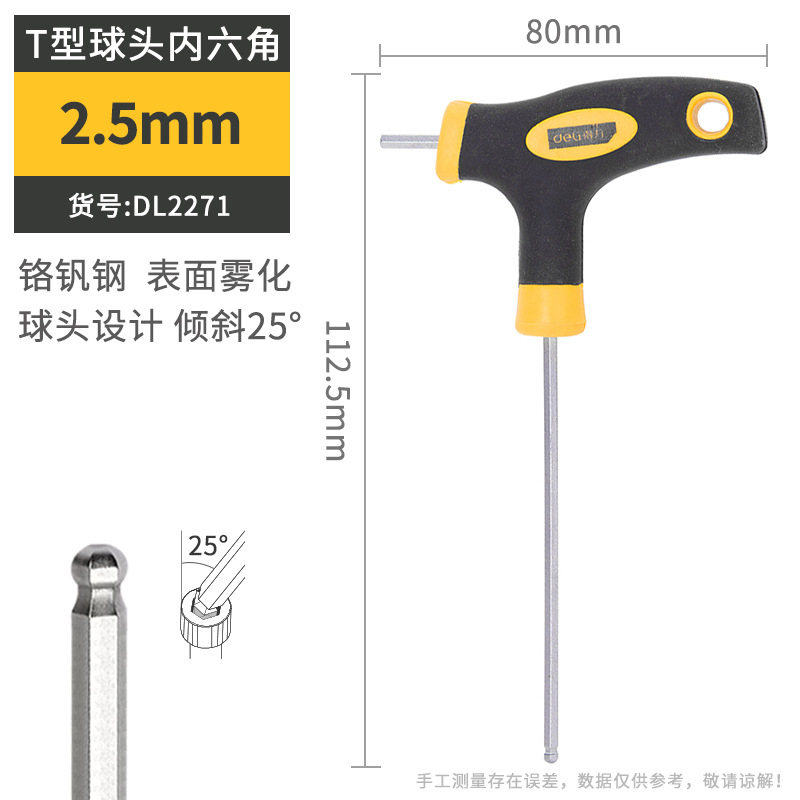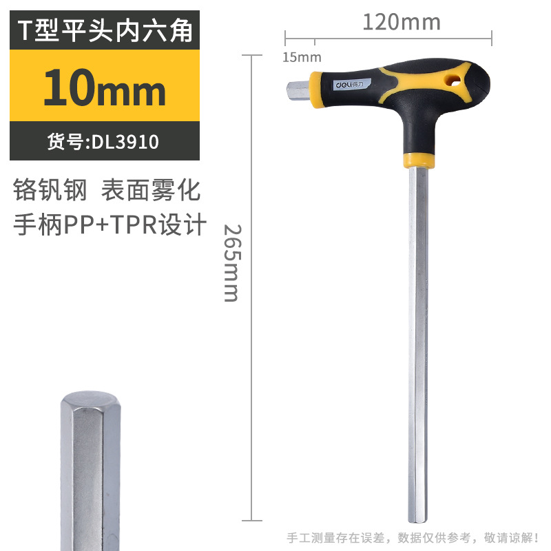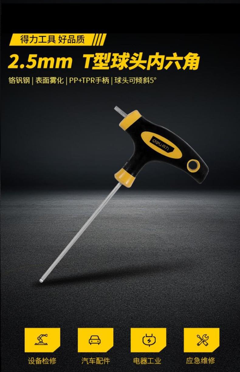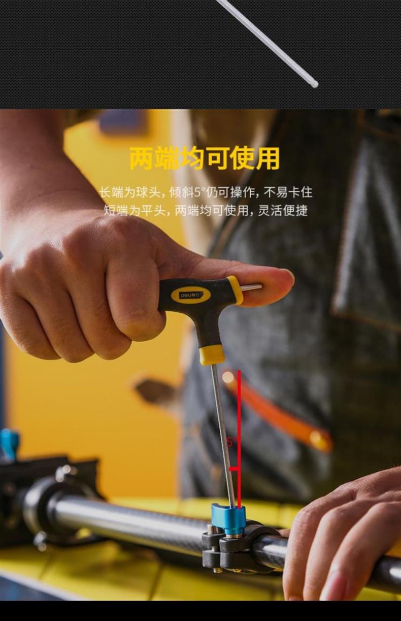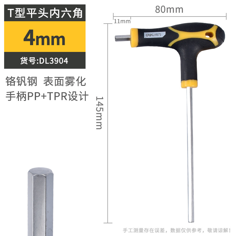 델리 T 자형 앨런 렌치 단일 플랫 볼 헤드 핸들 양각 육각 렌치