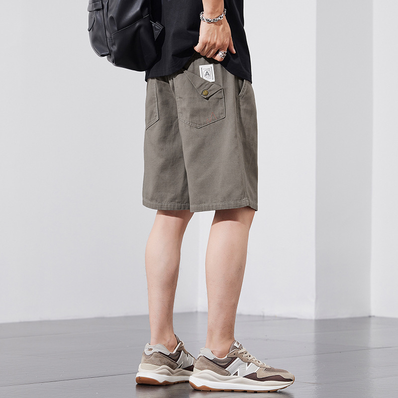 여름 얇은 캐주얼 반바지 남성 트렌디 한 브랜드 느슨한 스트레이트 툴링 스포츠 외부 착용 5 점 중간 길이 바지 2024 새로운 도착스토어 가기
