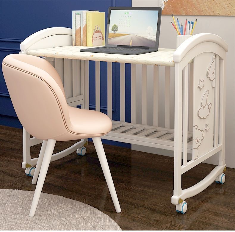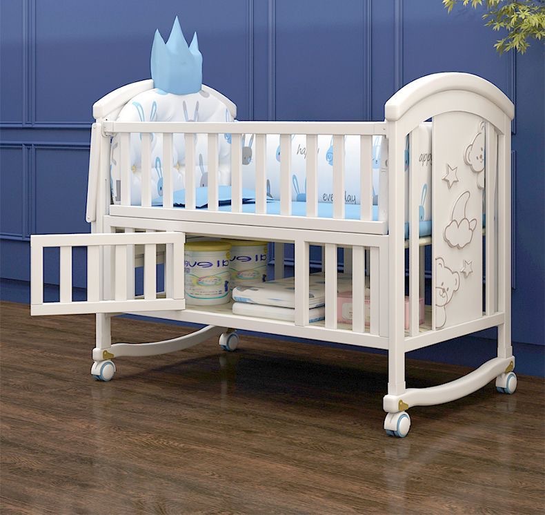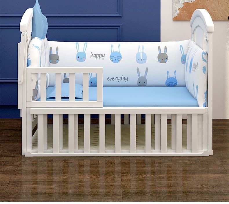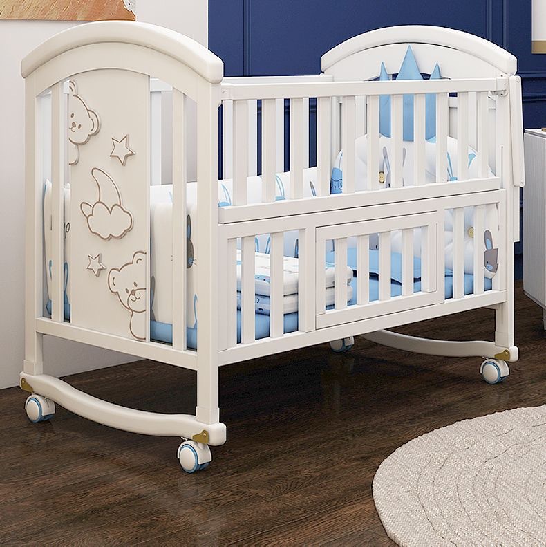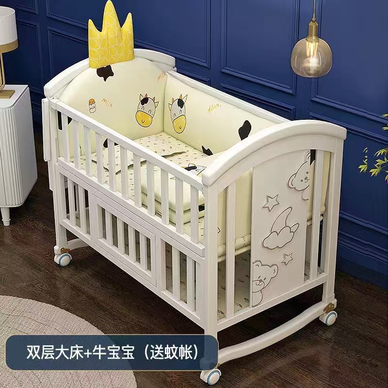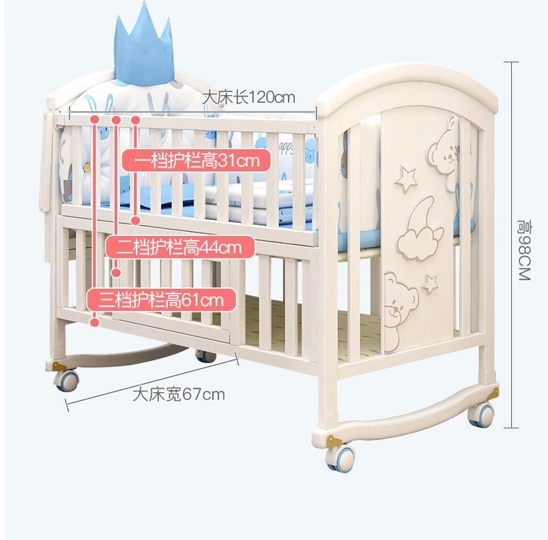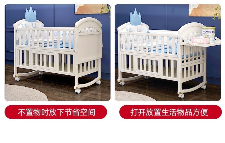 아기 침대 솔리드 우드 다기능 유럽식 아기 침대 솔리드 우드 페인트가없는 셰이커 신생아 이동식 어린이 접합 큰 침대스토어 가기