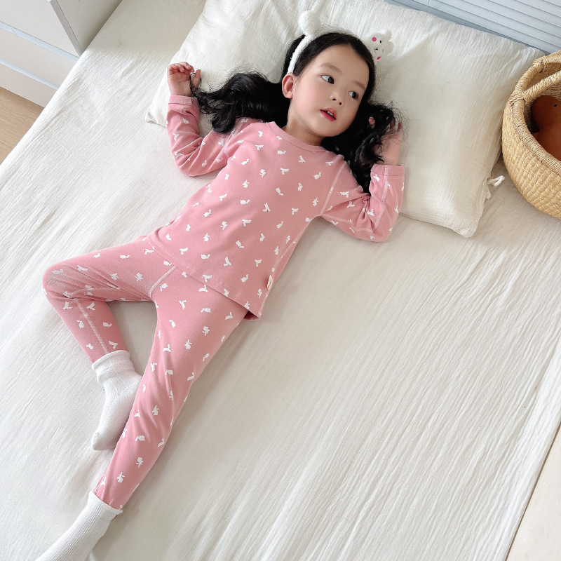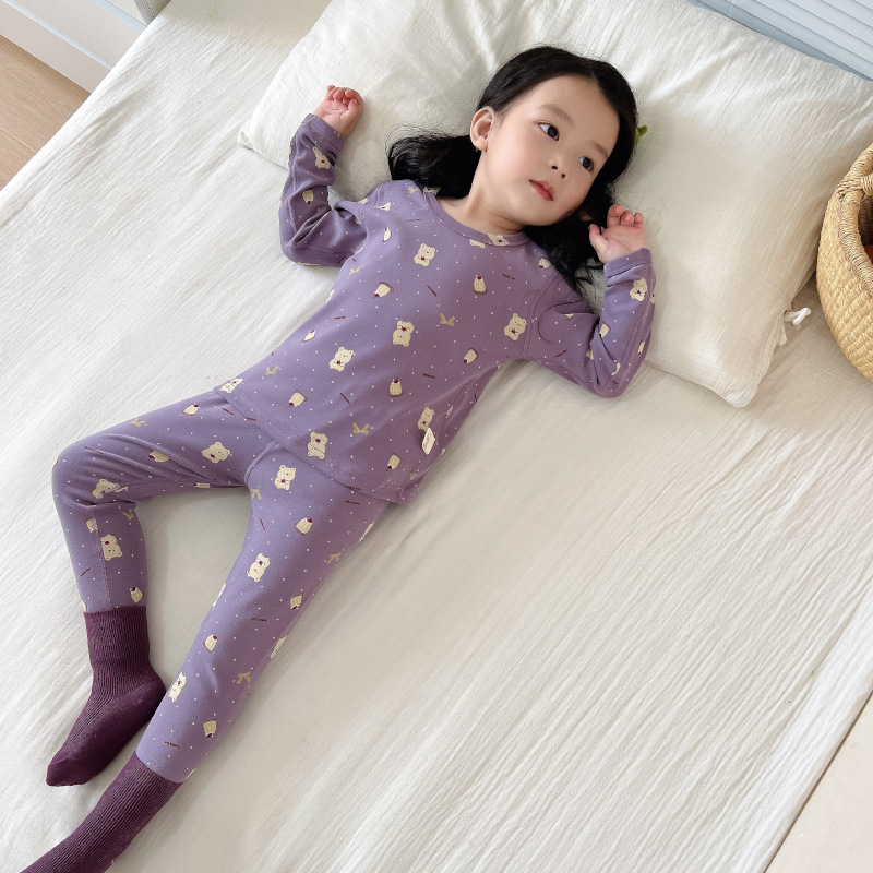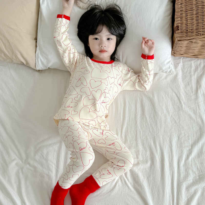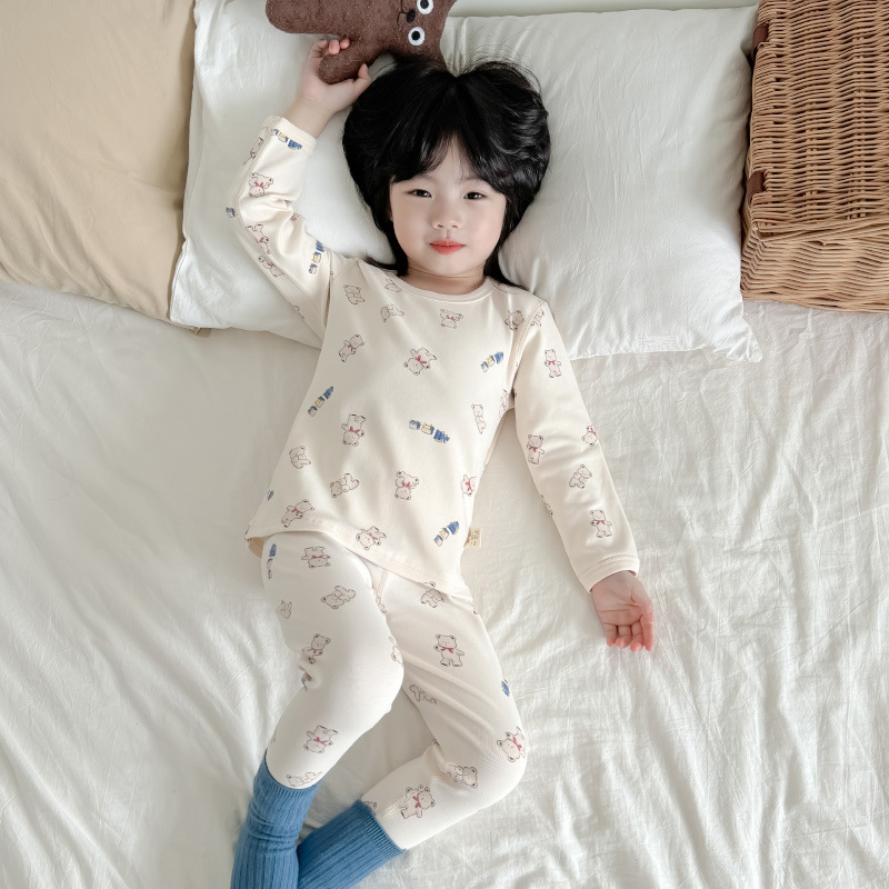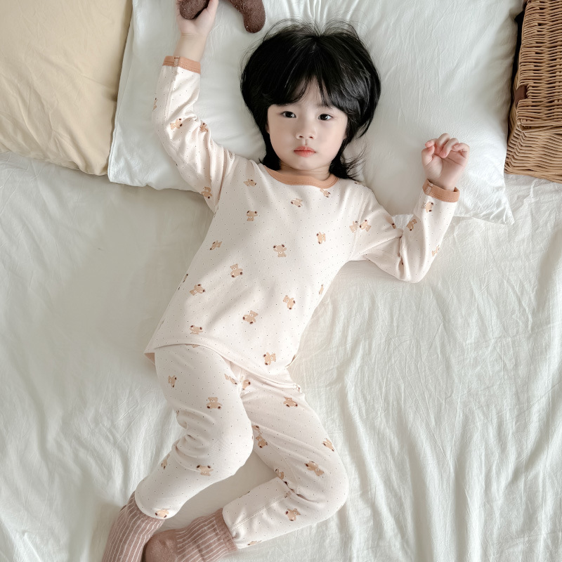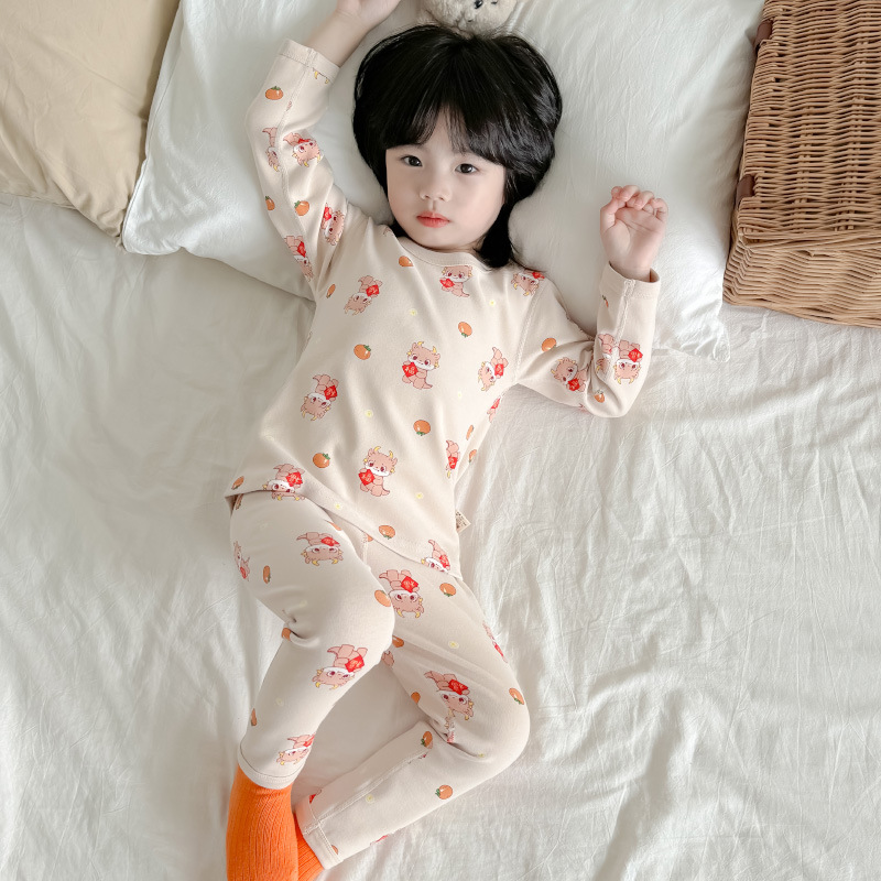 2024 가을과 겨울 아기 뼈없는 가을 옷 아기면 따뜻한 배꼽 바지 어린이 속옷 세트 소년 소녀
