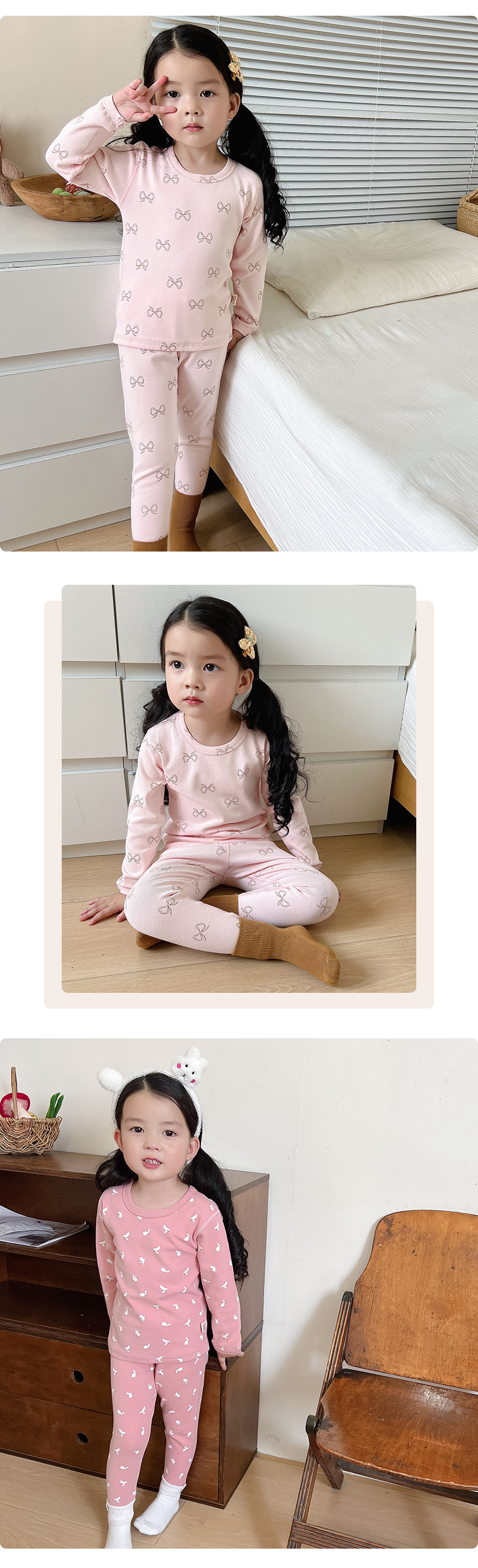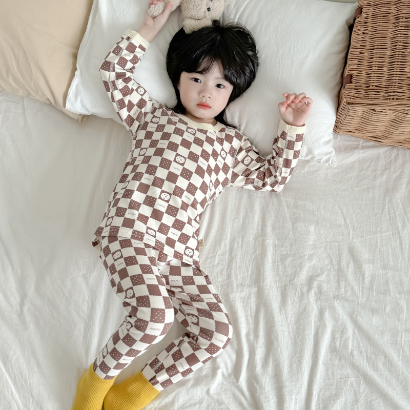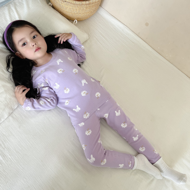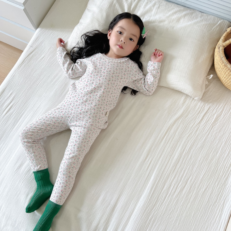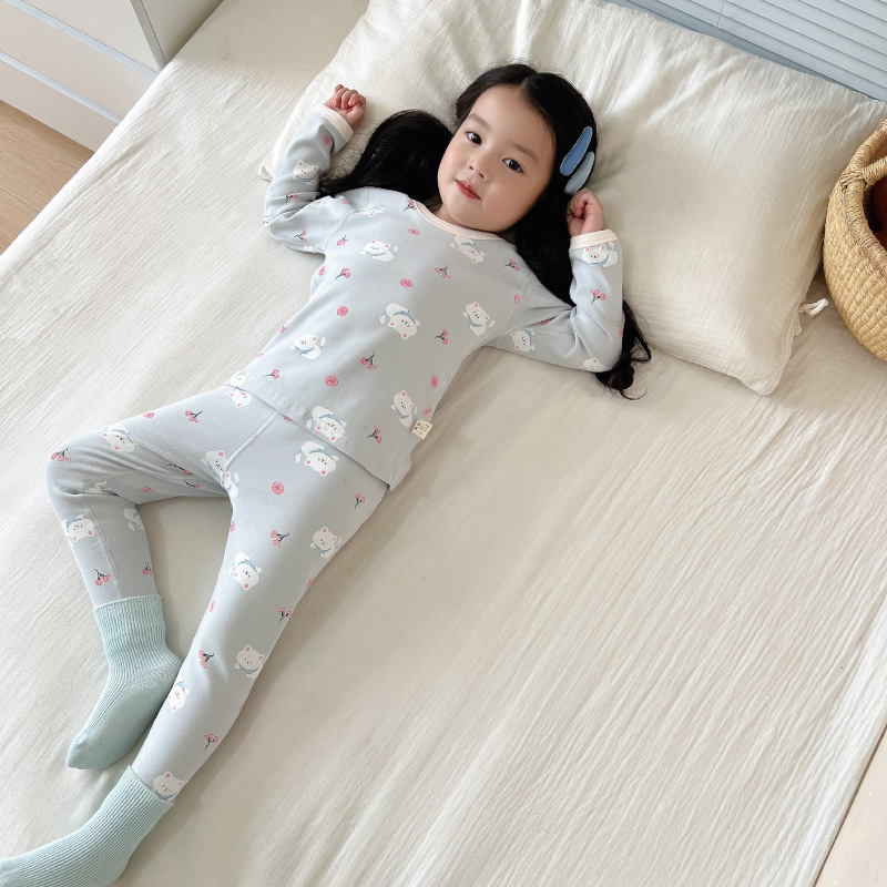 2024 가을과 겨울 아기 뼈없는 가을 옷 아기면 따뜻한 배꼽 바지 어린이 속옷 세트 소년 소녀