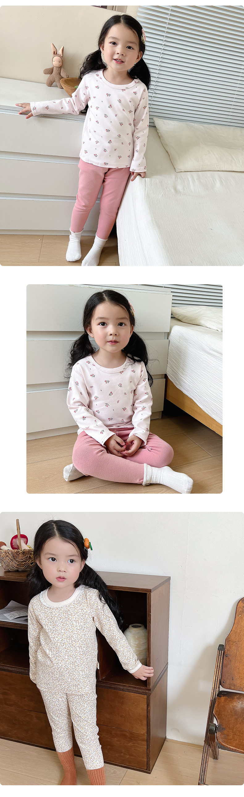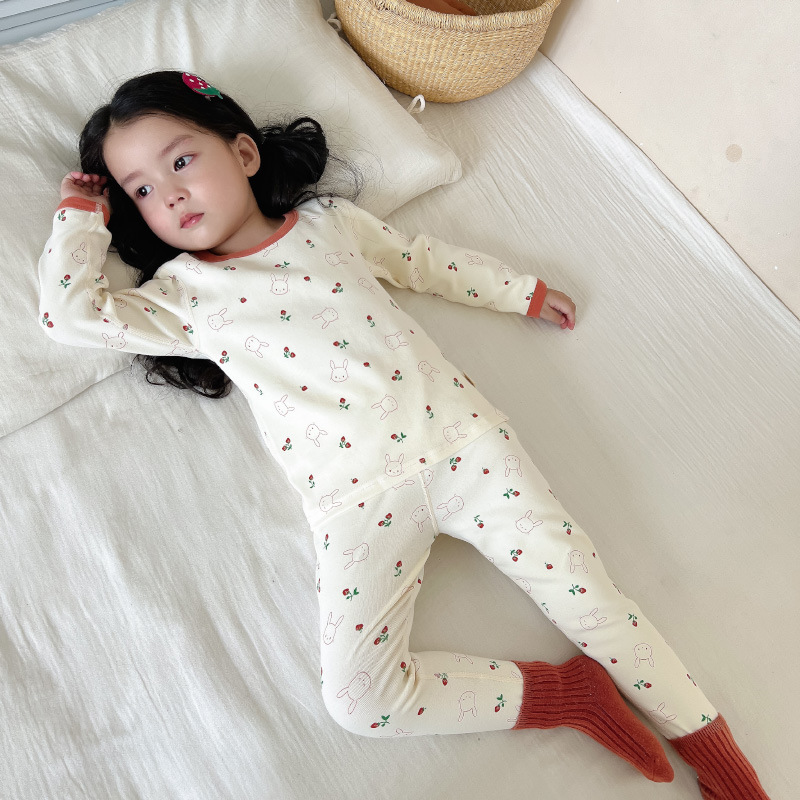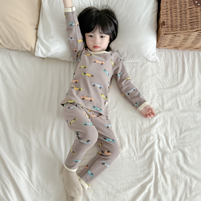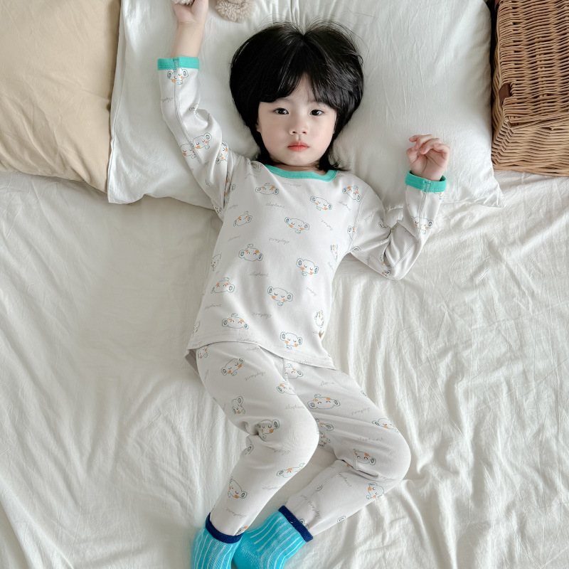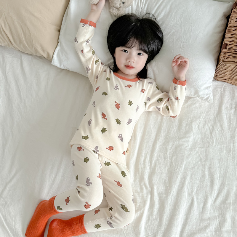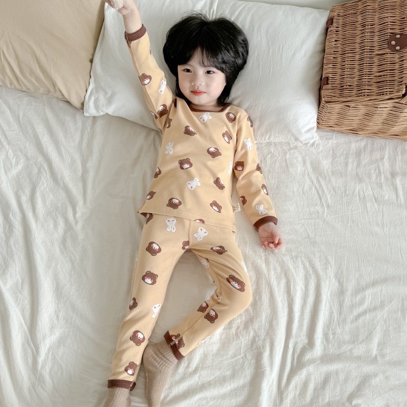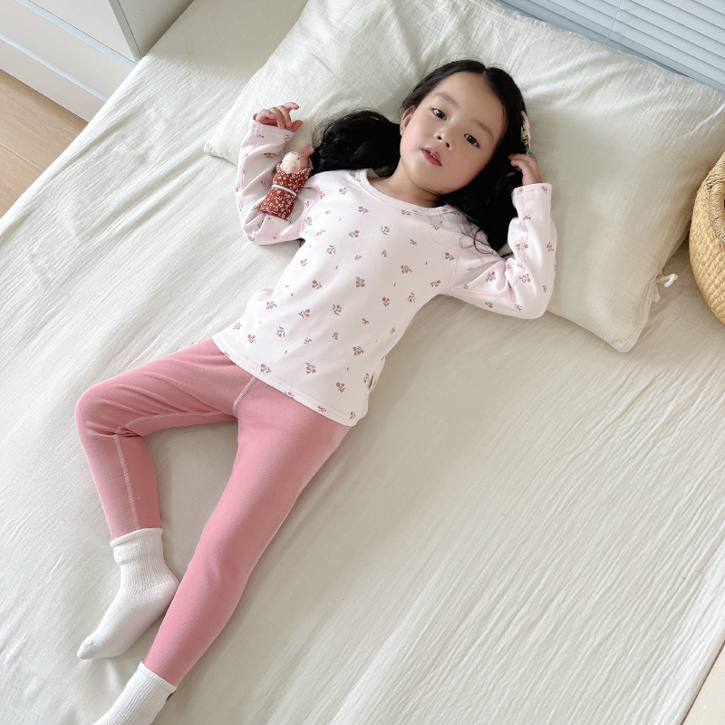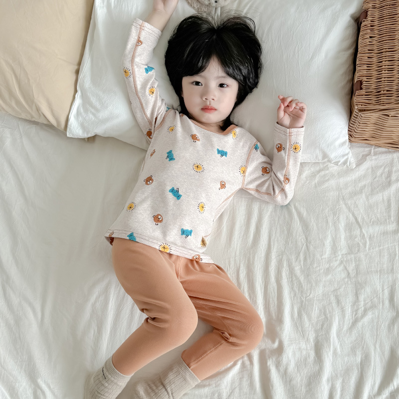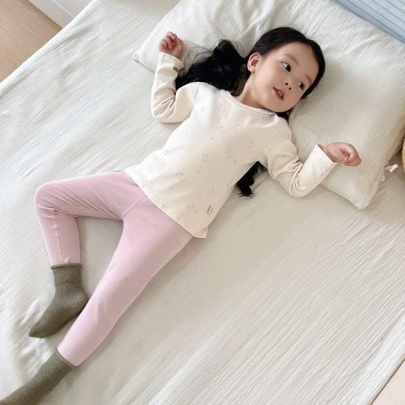 2024 가을과 겨울 아기 뼈없는 가을 옷 아기면 따뜻한 배꼽 바지 어린이 속옷 세트 소년 소녀스토어 가기
