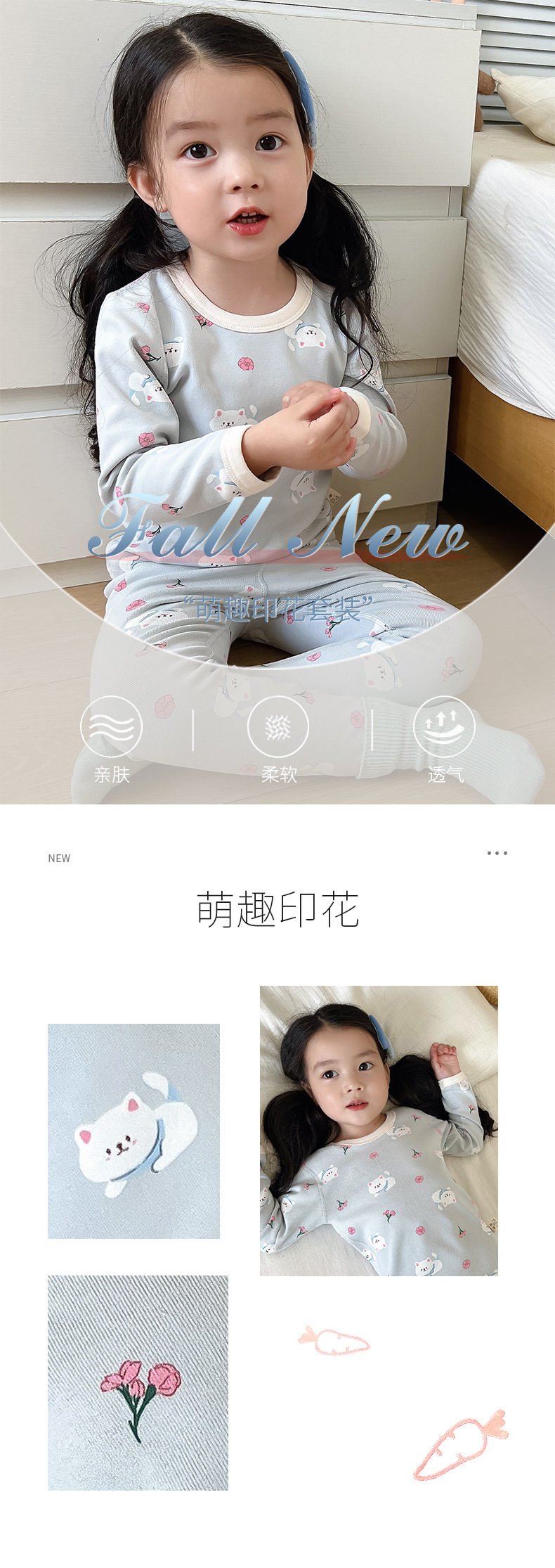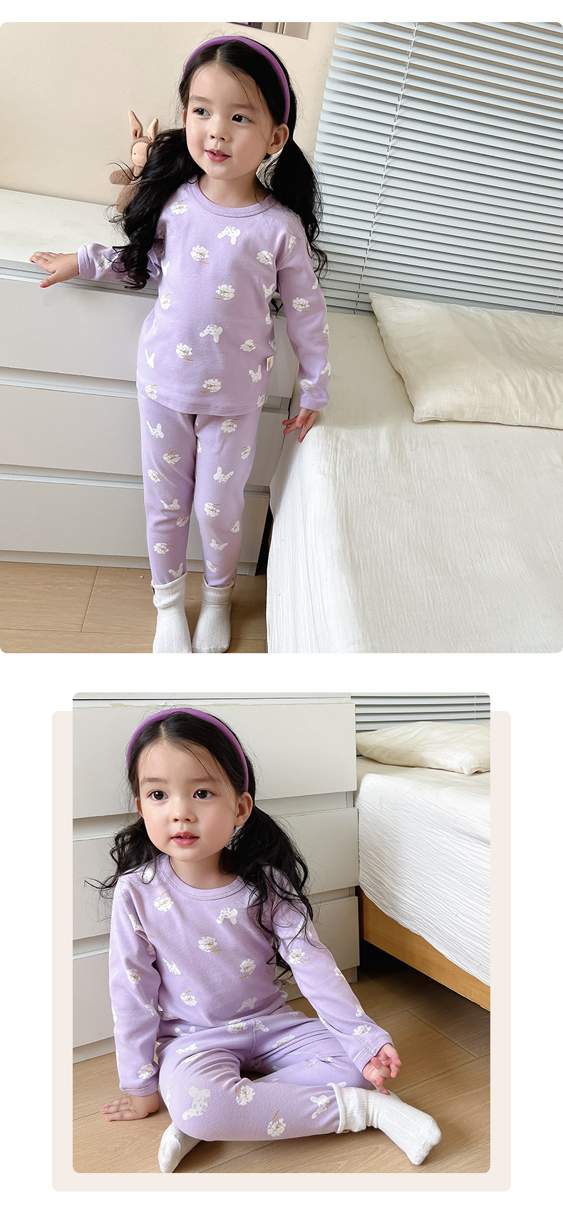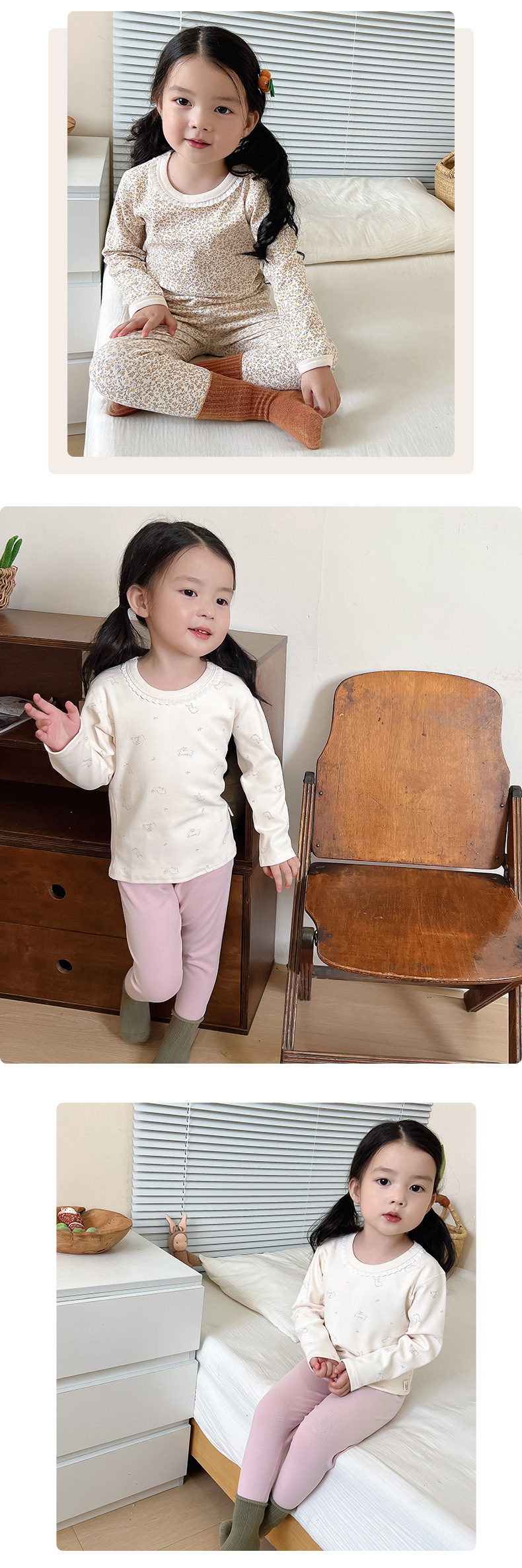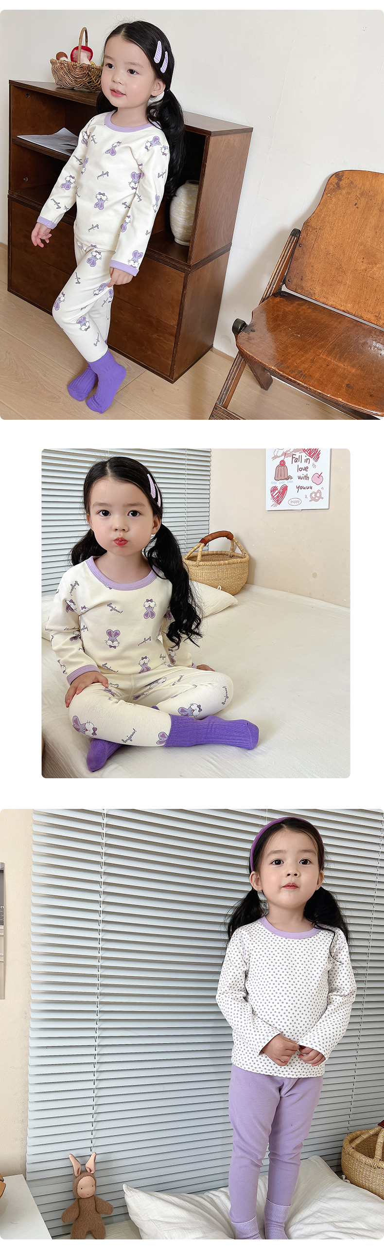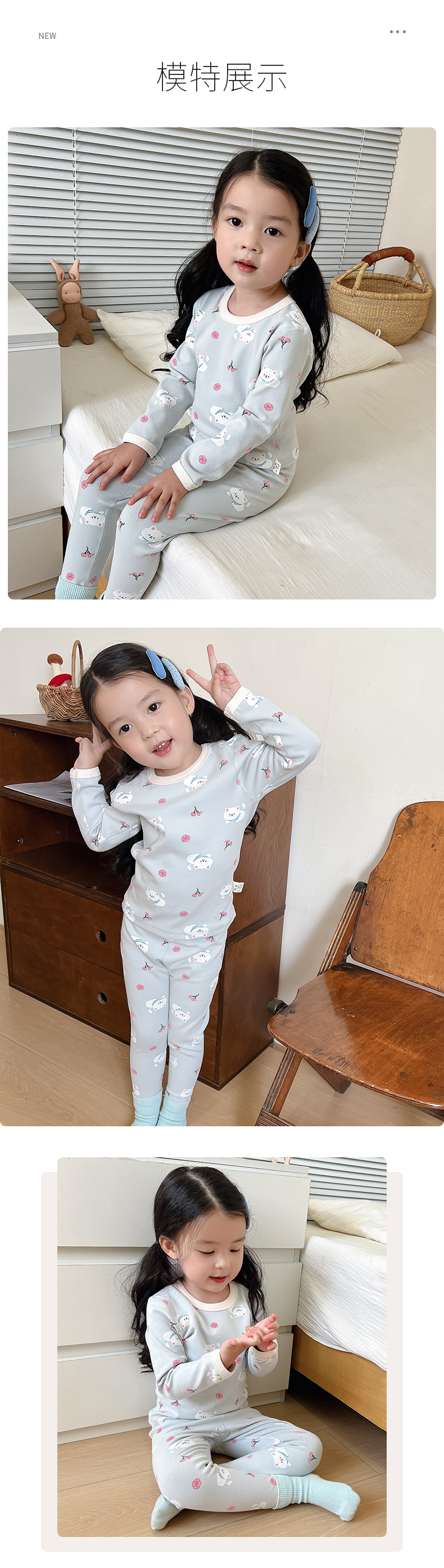 2024 가을과 겨울 아기 뼈없는 가을 옷 아기면 따뜻한 배꼽 바지 어린이 속옷 세트 소년 소녀스토어 가기