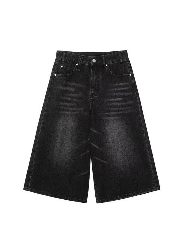 미국 블랙 데님 카프리 바지 여자 여름 레트로 바지 느슨한 바지 스트레이트 바지 플러스 사이즈 반바지 튀김