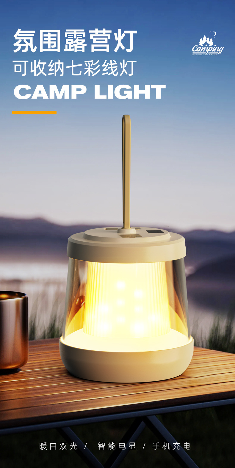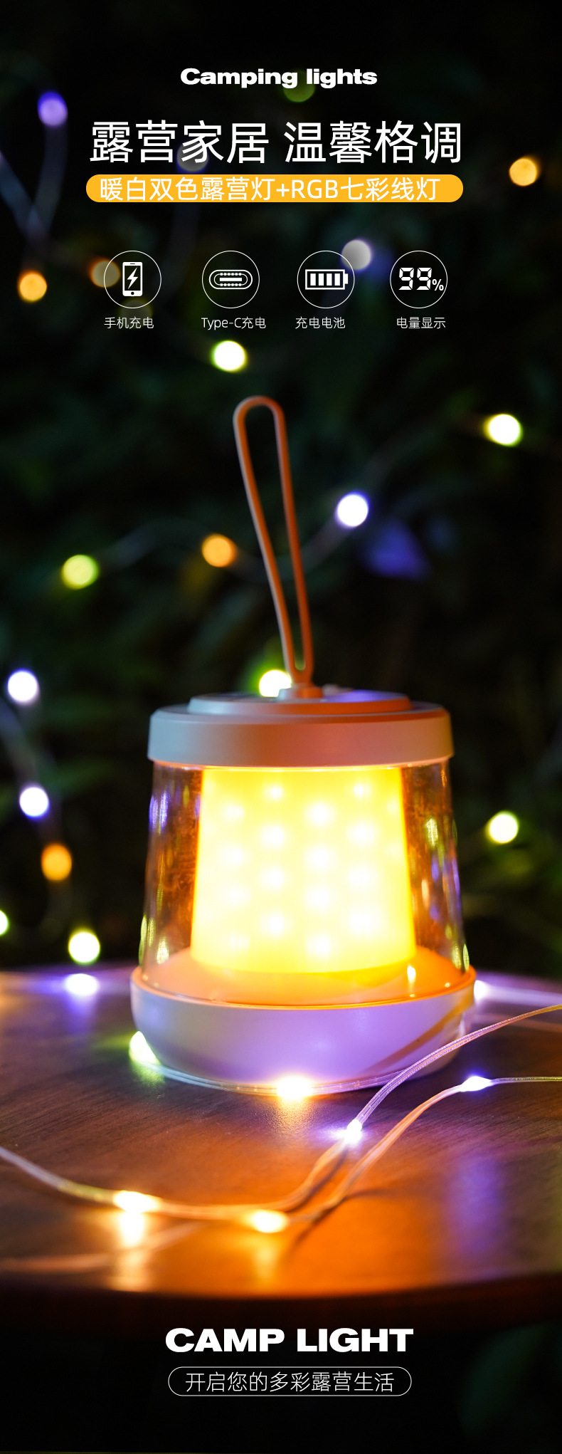 • OS99-따뜻한 흰색 캠핑 조명 + 10m 컬러 조명 스트립
