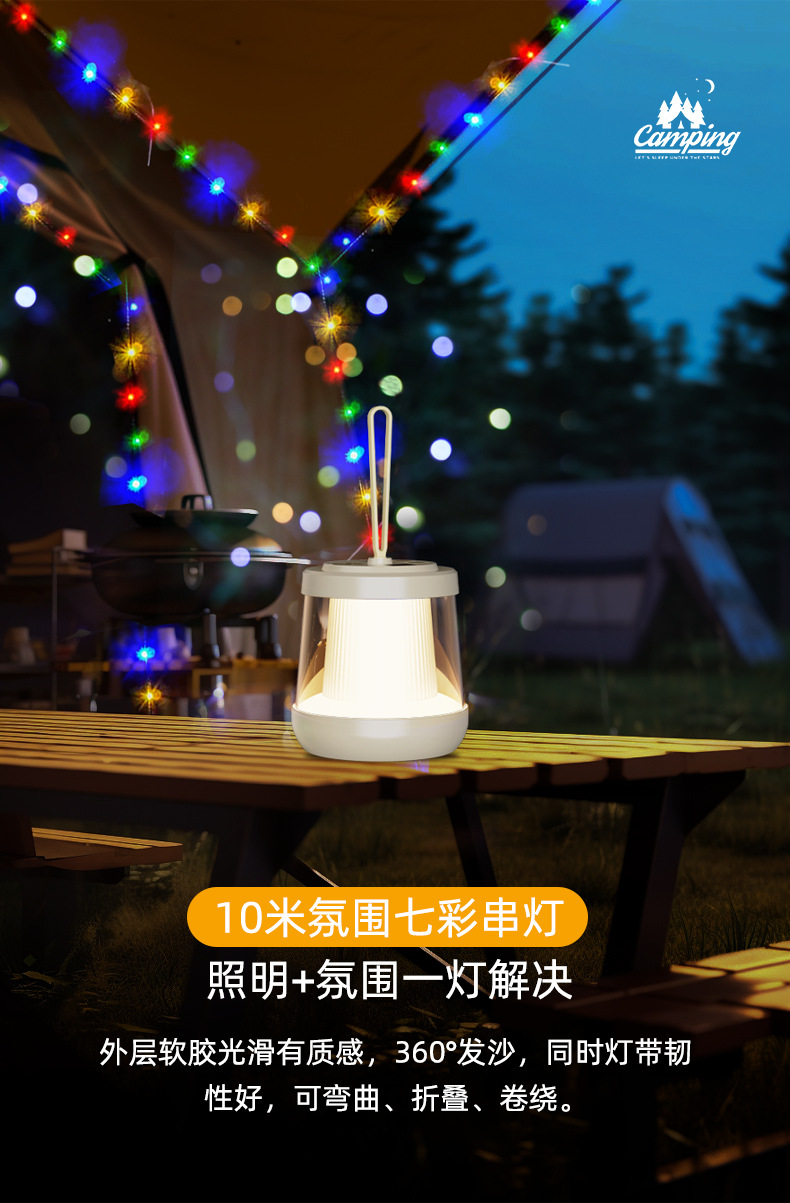 캠핑 10 m 다채로운 현악 조명 야외 조명 슈퍼 긴 내구성 충전 캠핑 빛 분위기 빛 야외 텐트 라이트