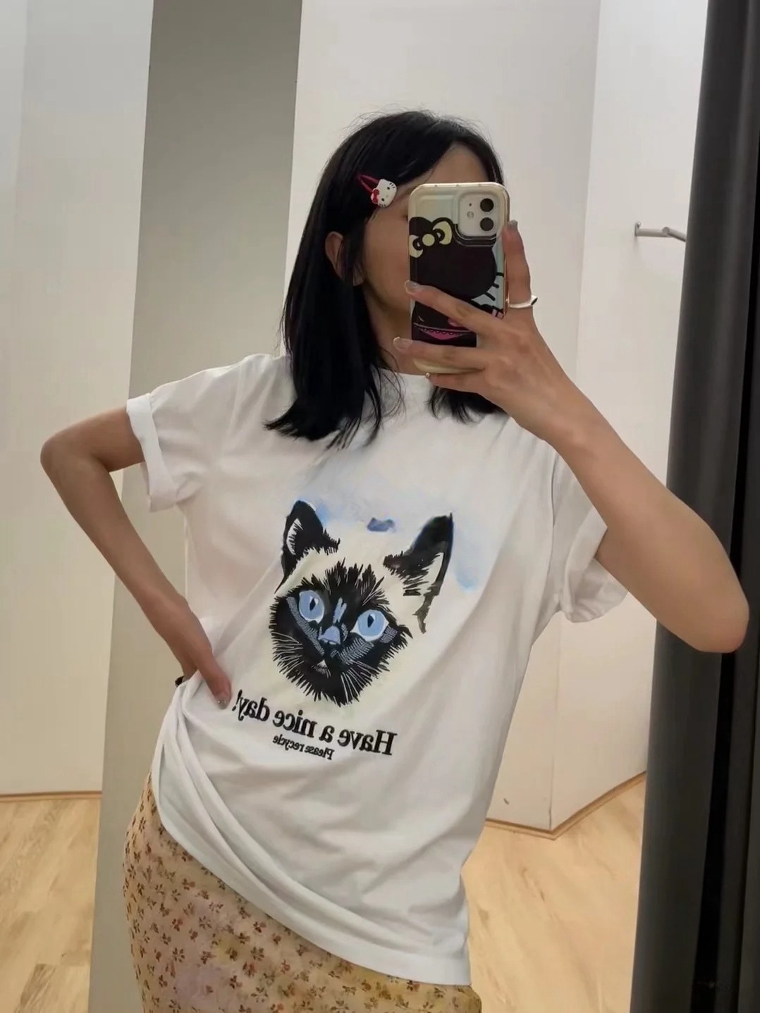 • 화이트【파란눈고양이-자수! ]