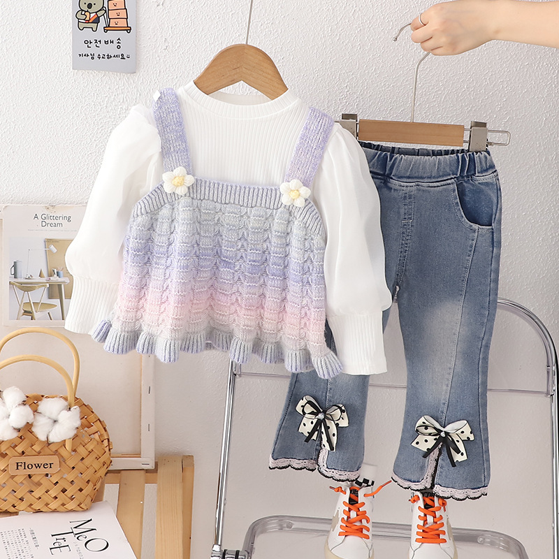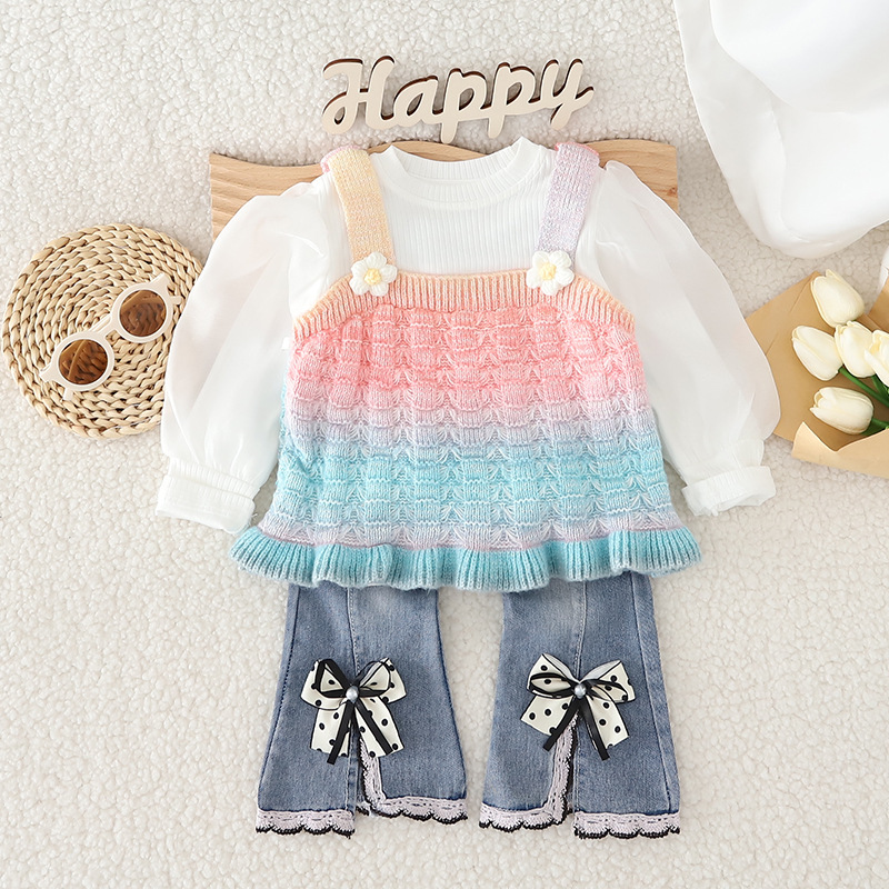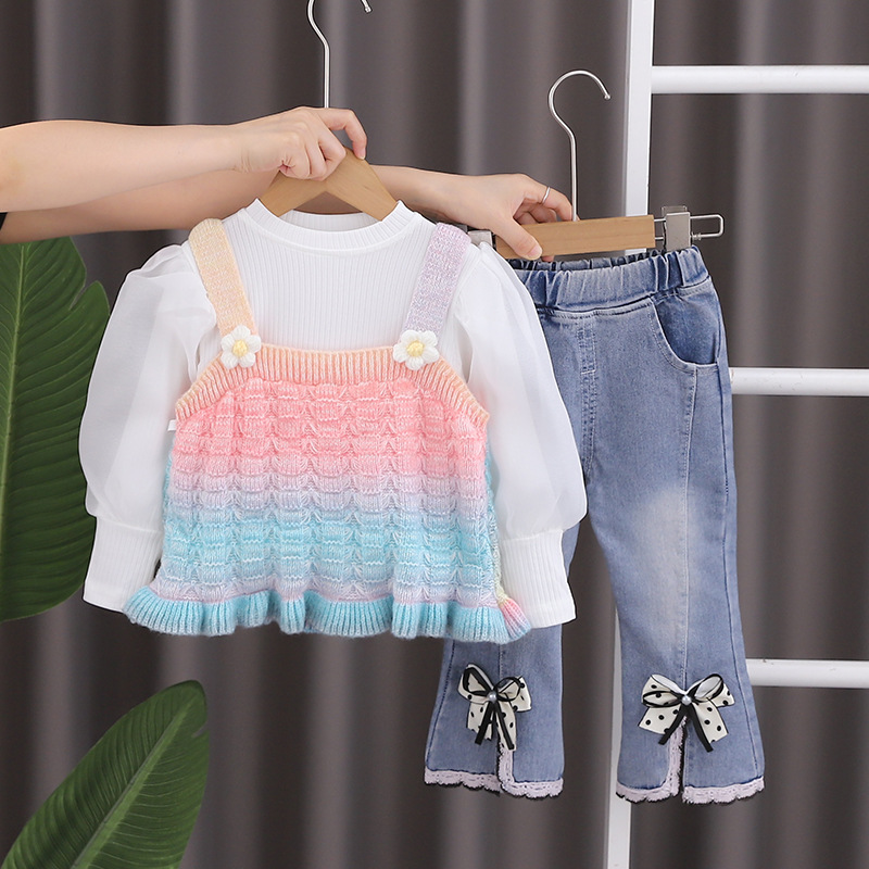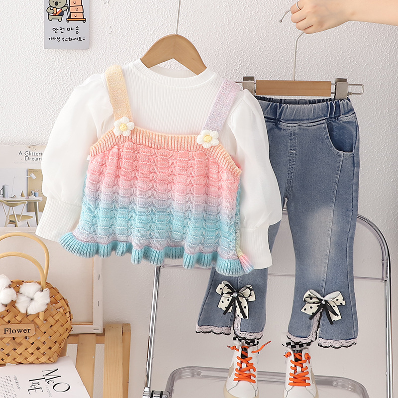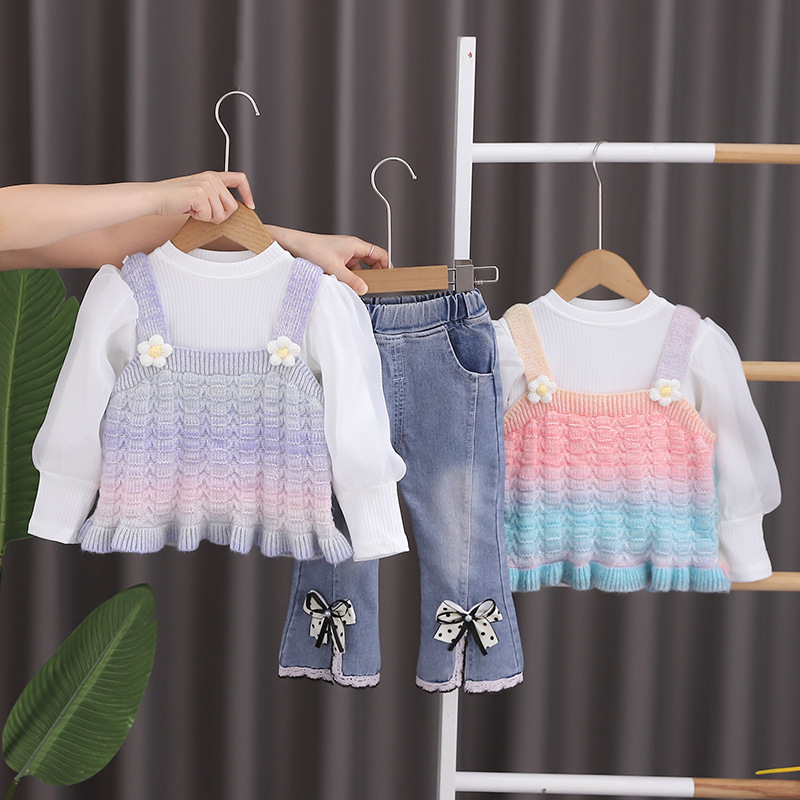소녀의 가을 옷 세트 서양식 아기 소녀의 무지개 스웨터 조끼 3 종 세트 봄과 가을 아기 소녀의 옷