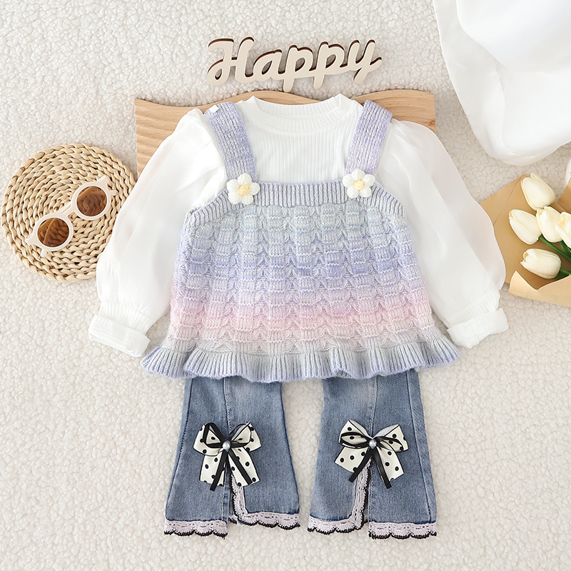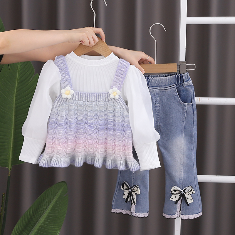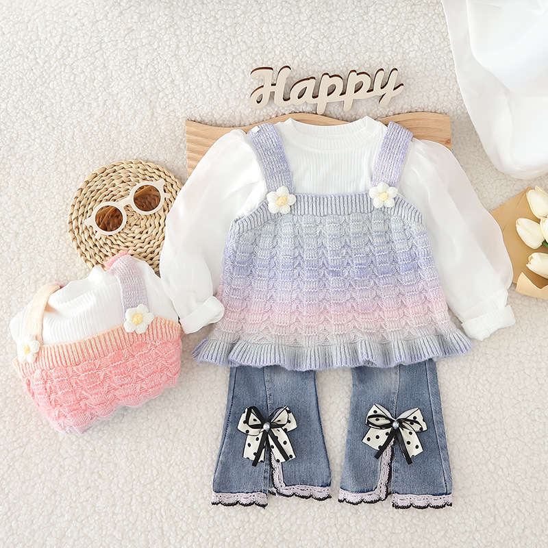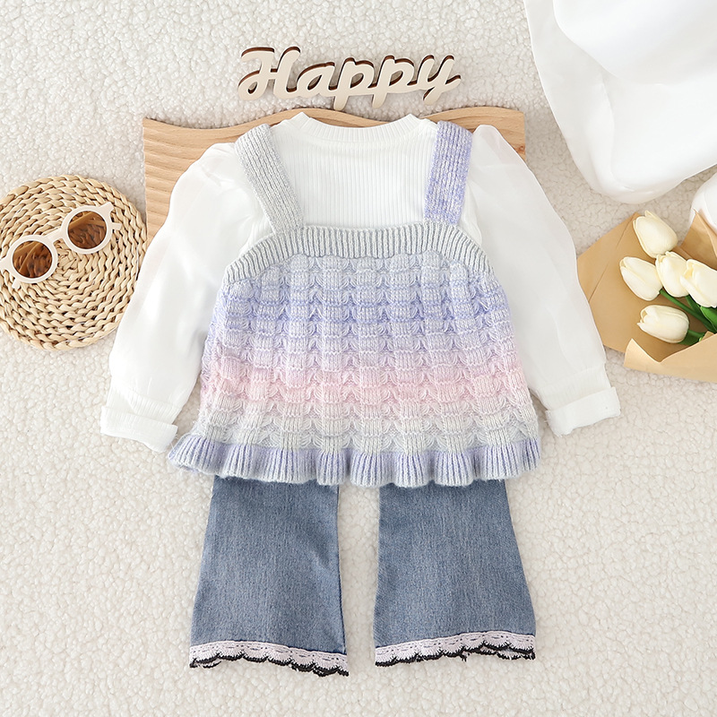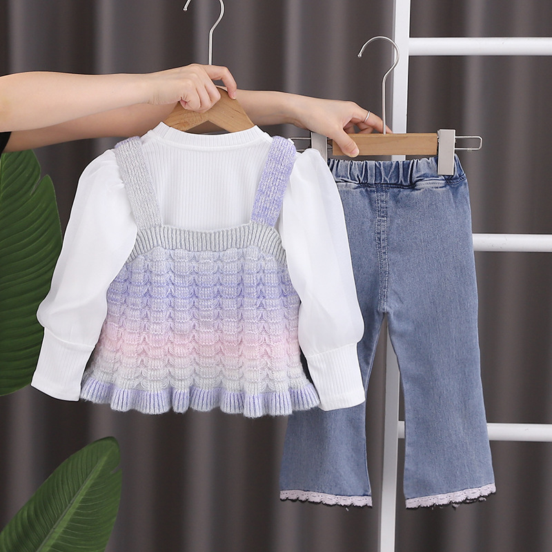 소녀의 가을 옷 세트 서양식 아기 소녀의 무지개 스웨터 조끼 3 종 세트 봄과 가을 아기 소녀의 옷