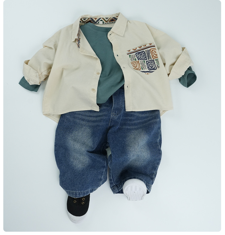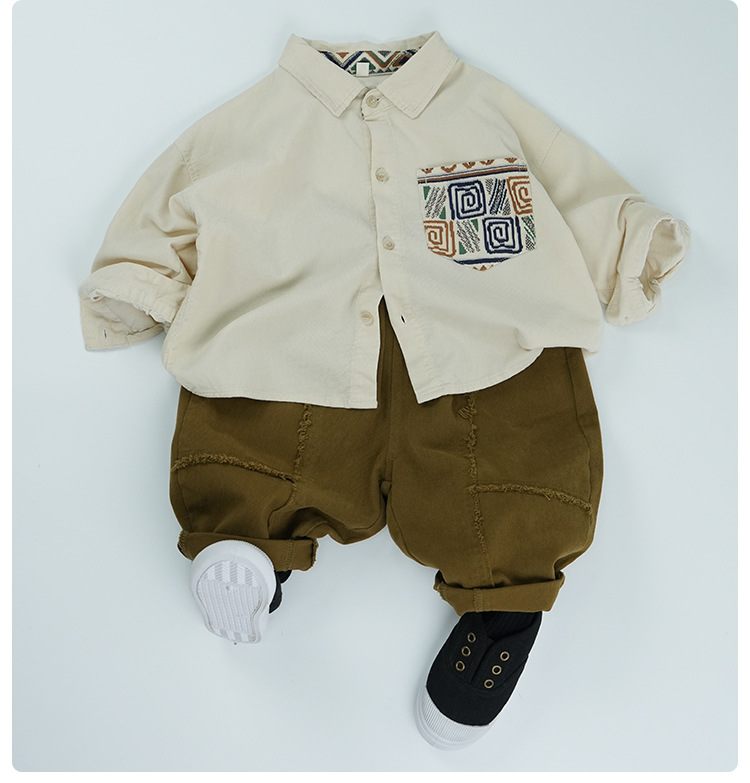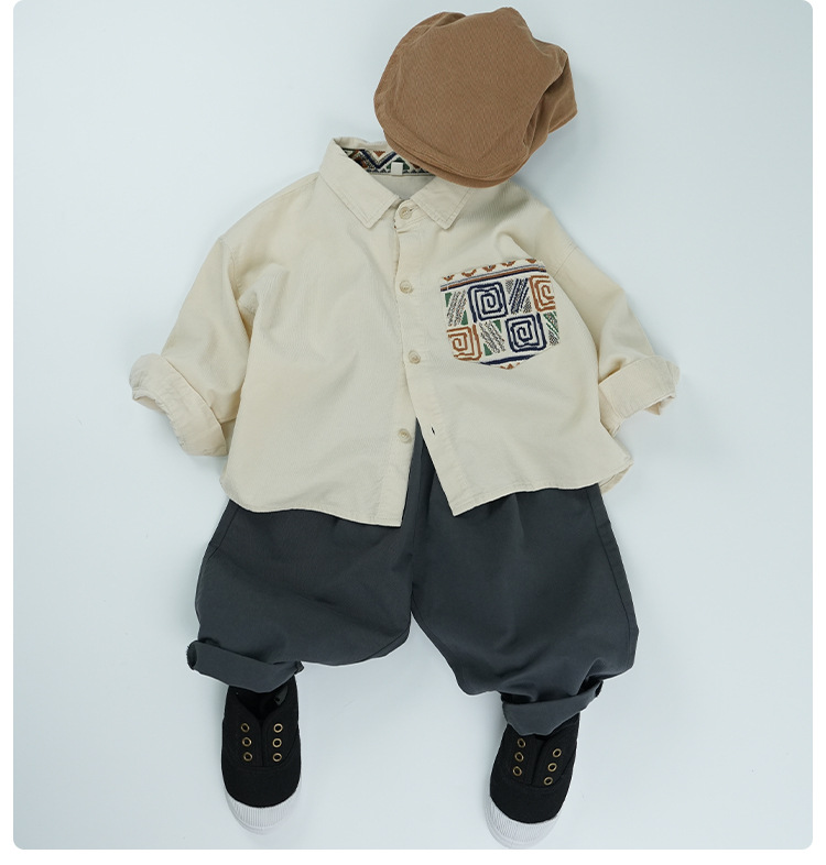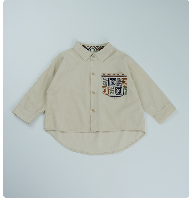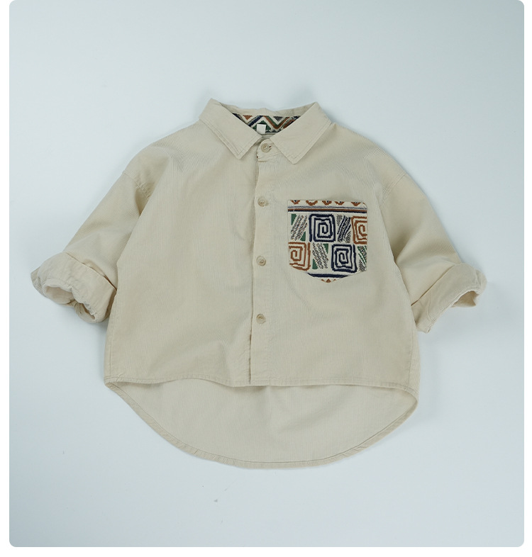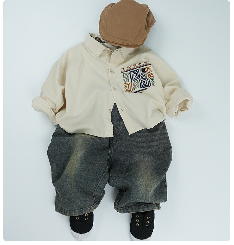 일본 복고풍 아동복 소년 쌀 살구 셔츠 재킷 2025 가을 한국 스타일 아동용 긴팔 카디건 탑 포레스트 스타일스토어 가기