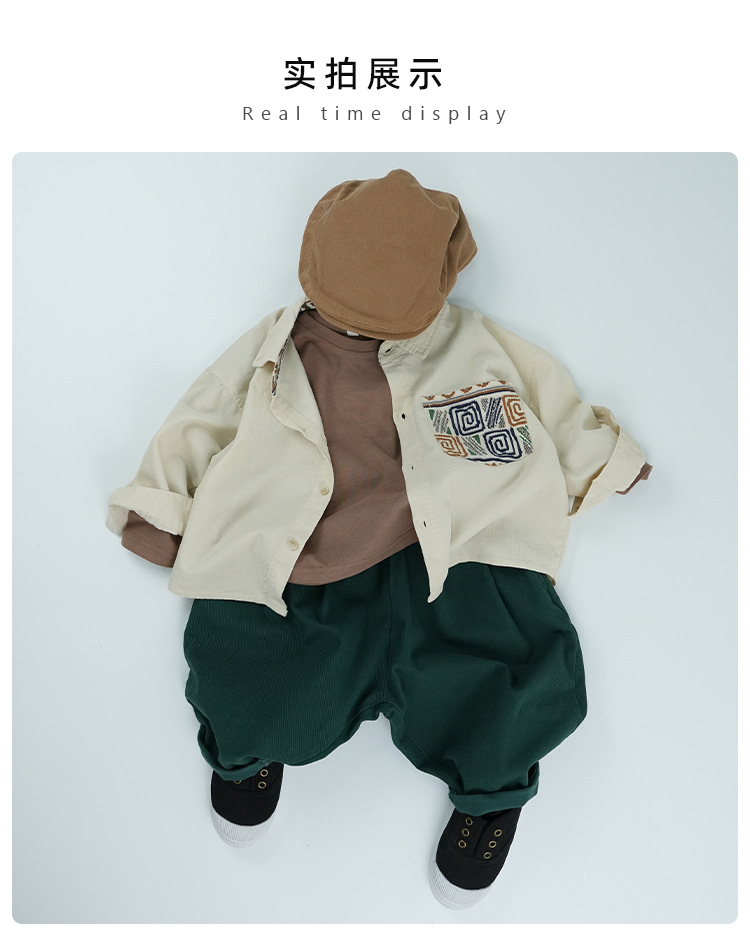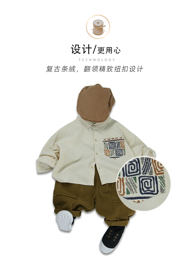 일본 복고풍 아동복 소년 쌀 살구 셔츠 재킷 2025 가을 한국 스타일 아동용 긴팔 카디건 탑 포레스트 스타일