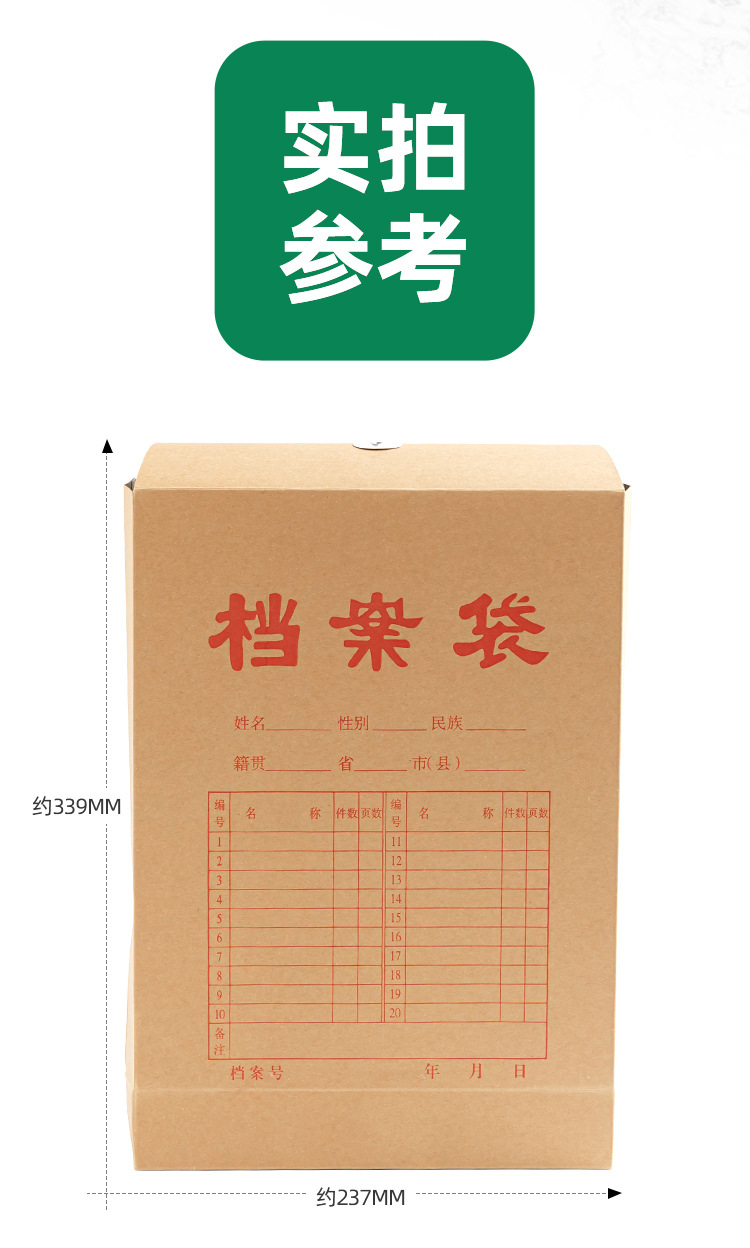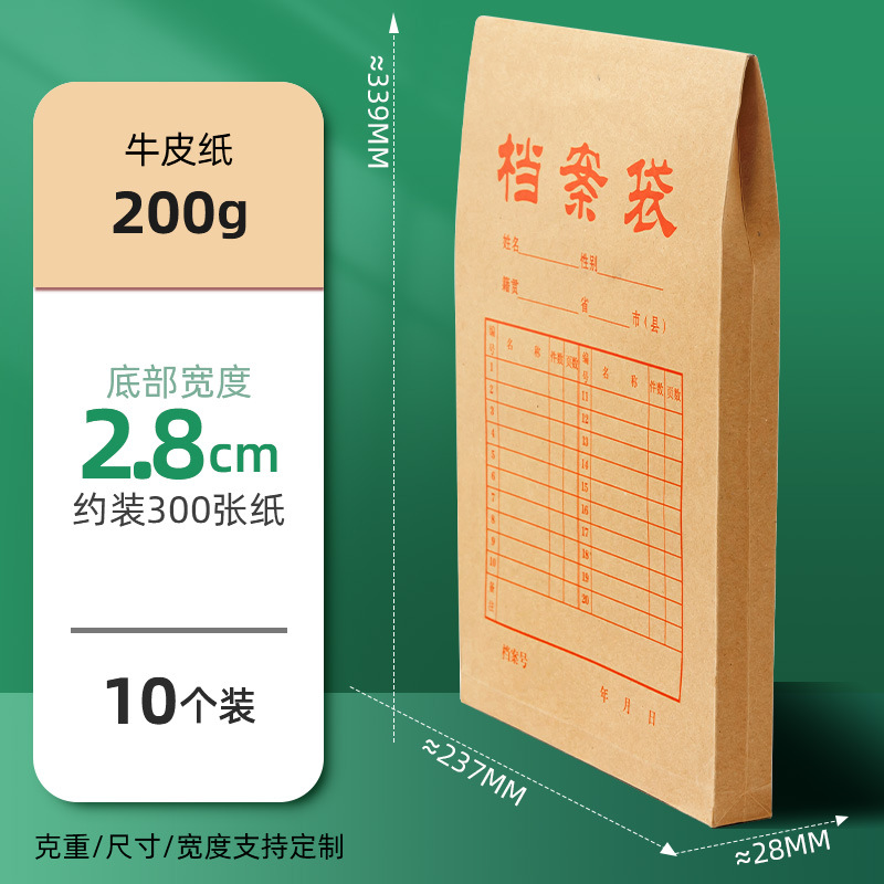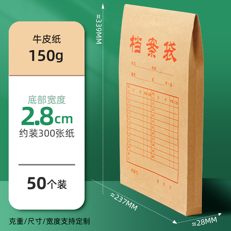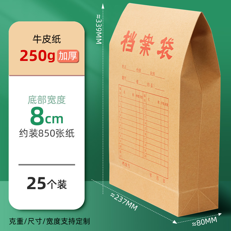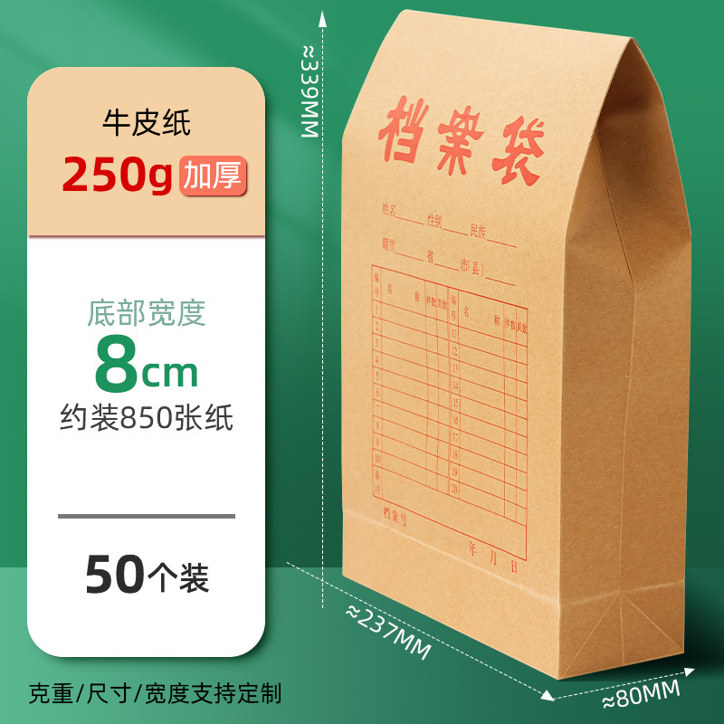 두껍고 깨지기 쉽지 않은 A4 크래프트 종이 파일 가방 폭 8cm 대용량 파일 가방 180g 정보 가방 저장 가방 측정