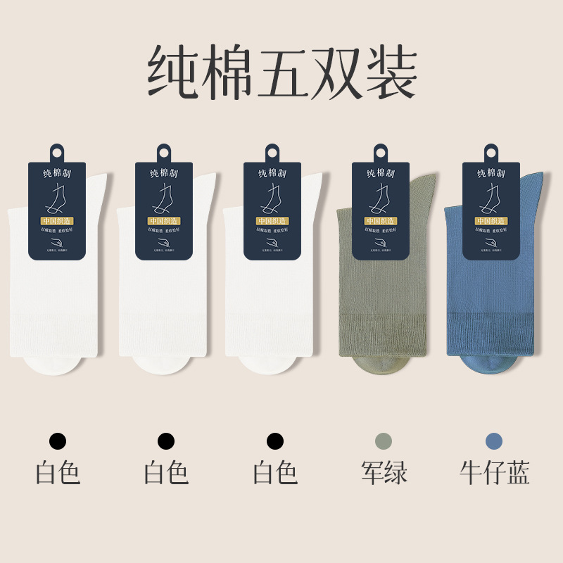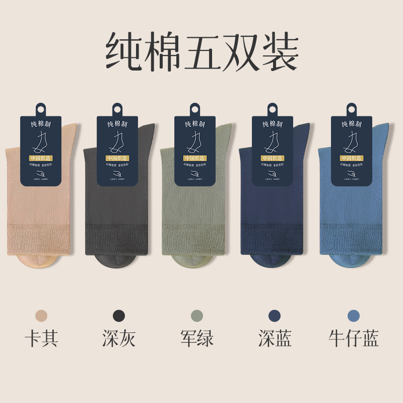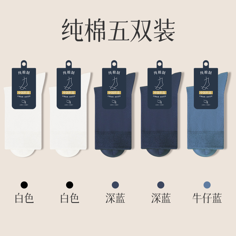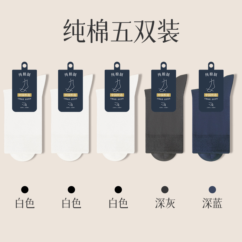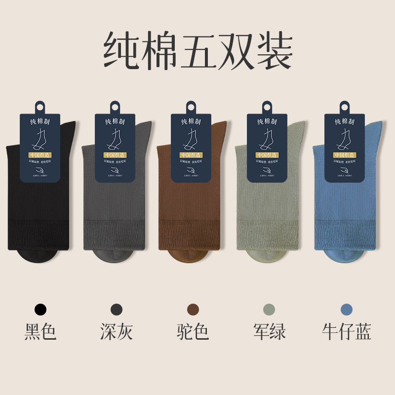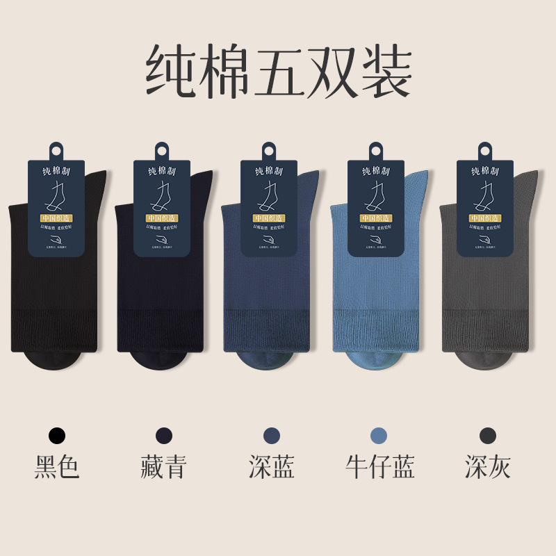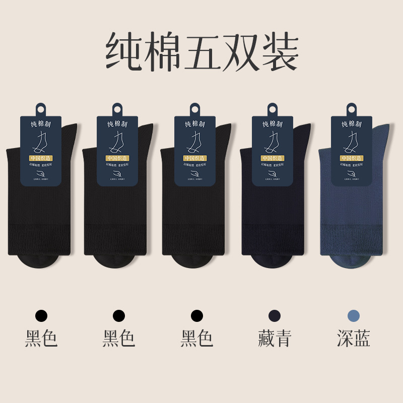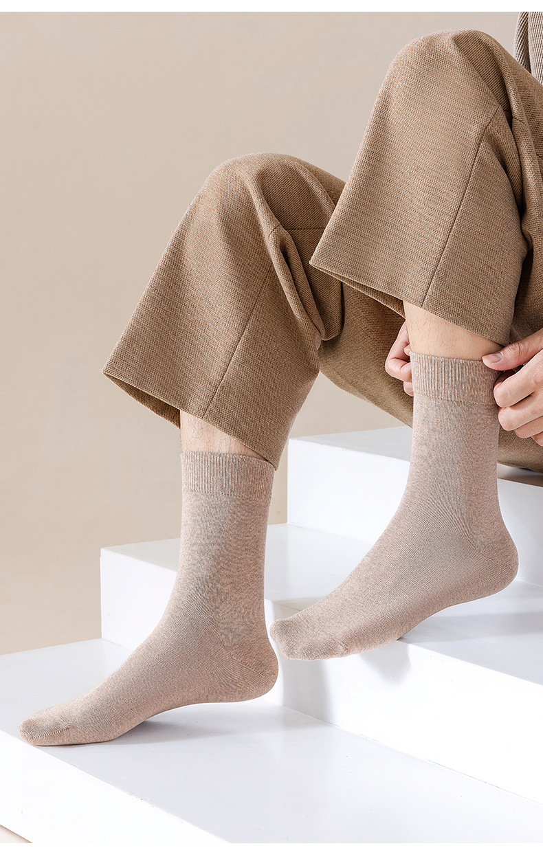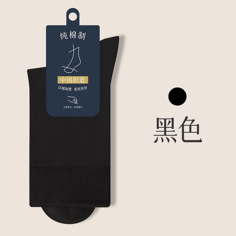양말 남자의 순면 중간 길이 양말 뼈없는 가을과 겨울 블랙 비즈니스 간단한 남자 사계절 스타킹 단색