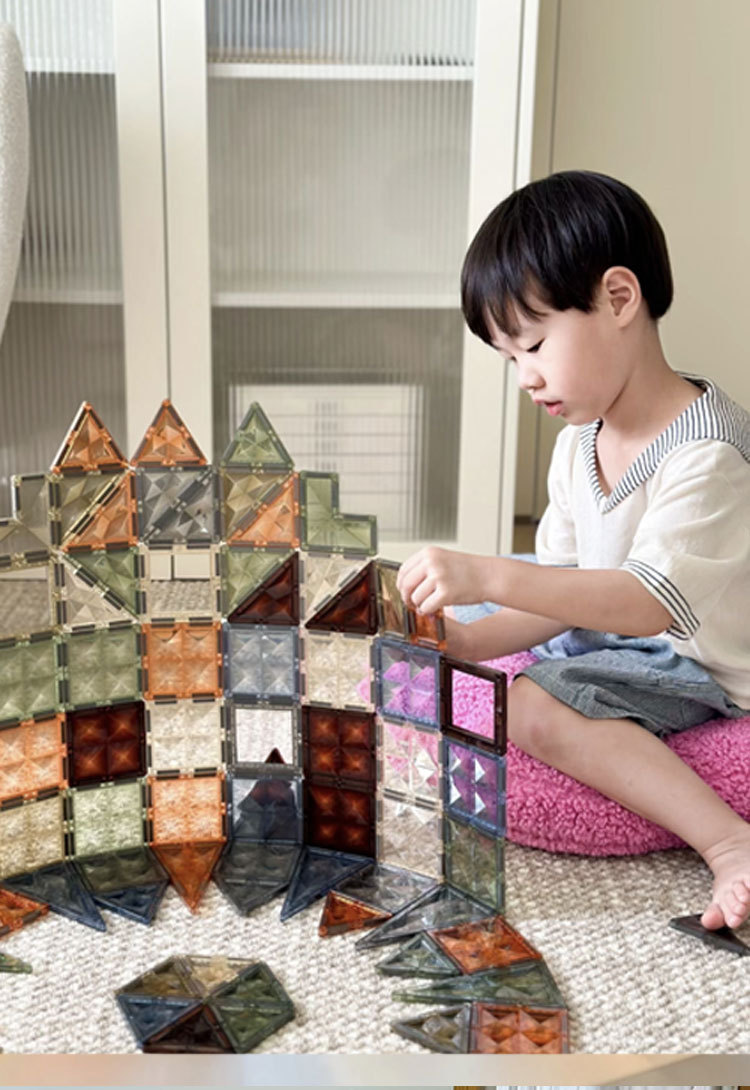 어린이용 대형 자석 장난감 100개 자연색 조립 자석 블록 다용도 자석 교육용 블록스토어 가기