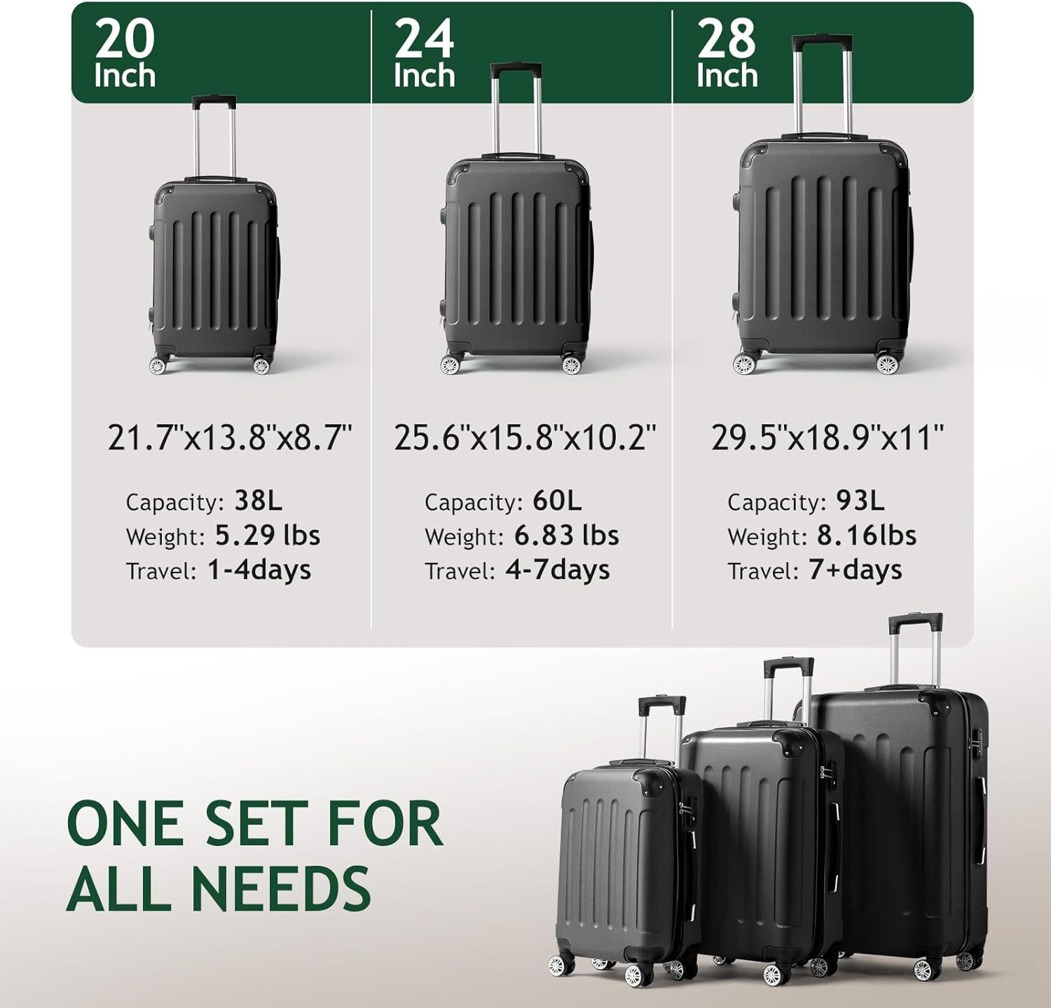 三件套尺寸:49*29*77CM,重量10.5k'g