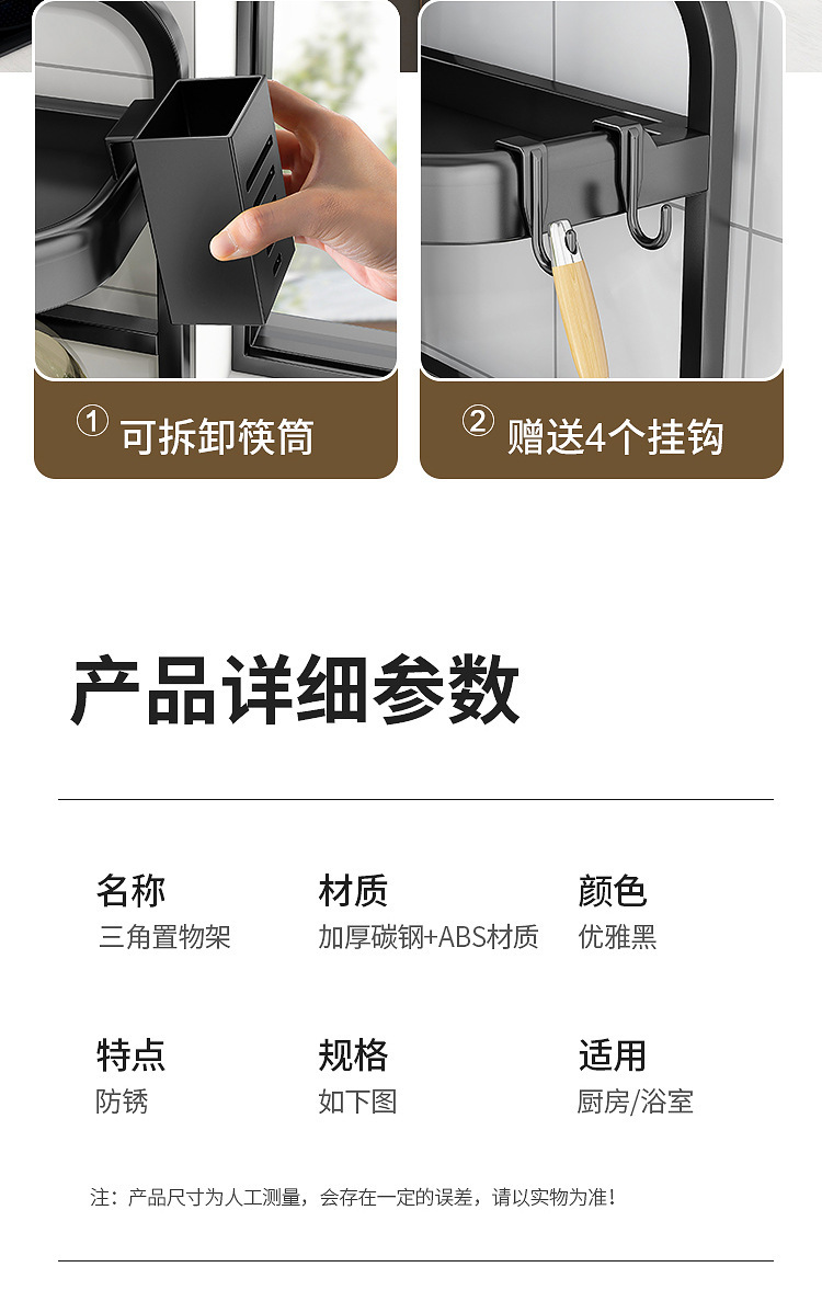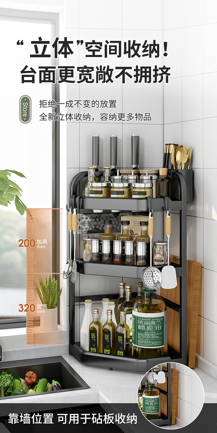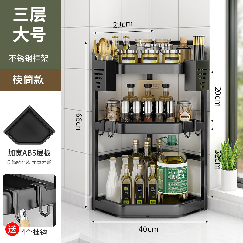 양념을위한 주방 선반 비 펀치 테이블 탑 코너 나이프 젓가락 조미료 항아리 선반 다기능 삼각형 저장 랙스토어 가기