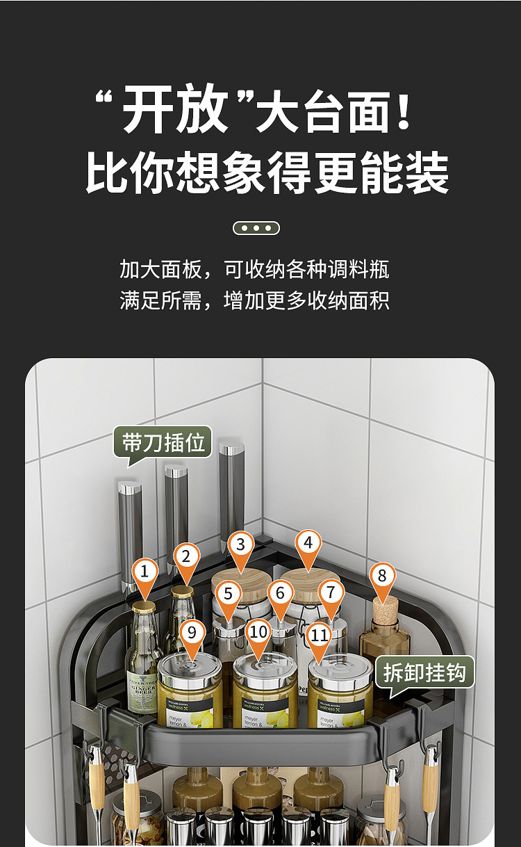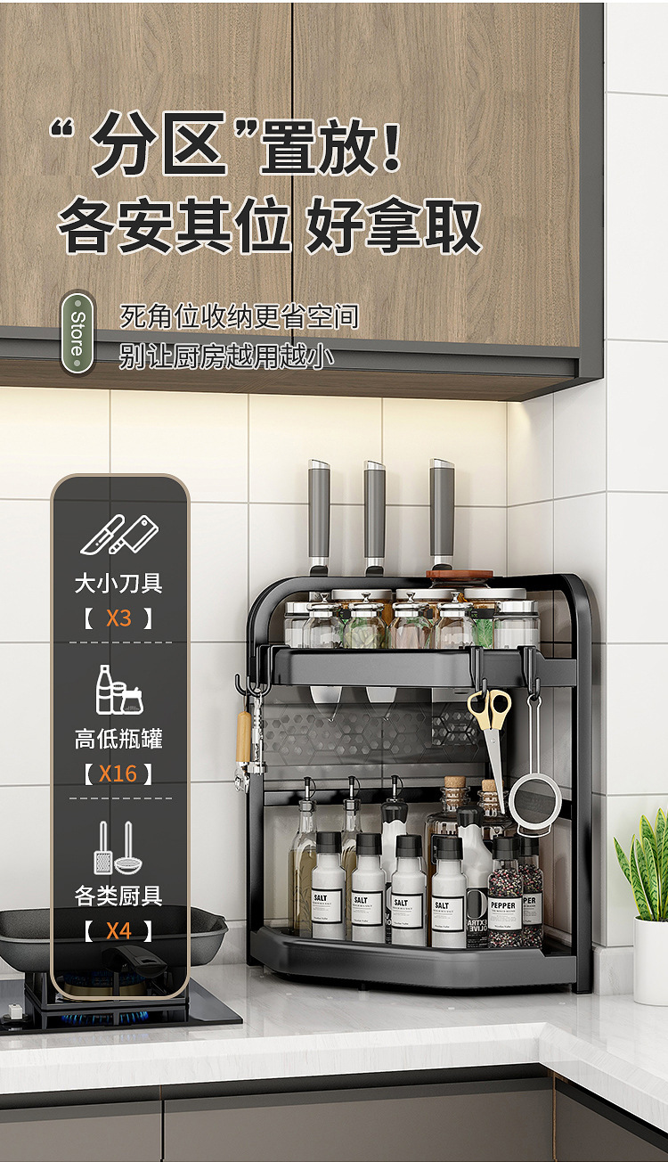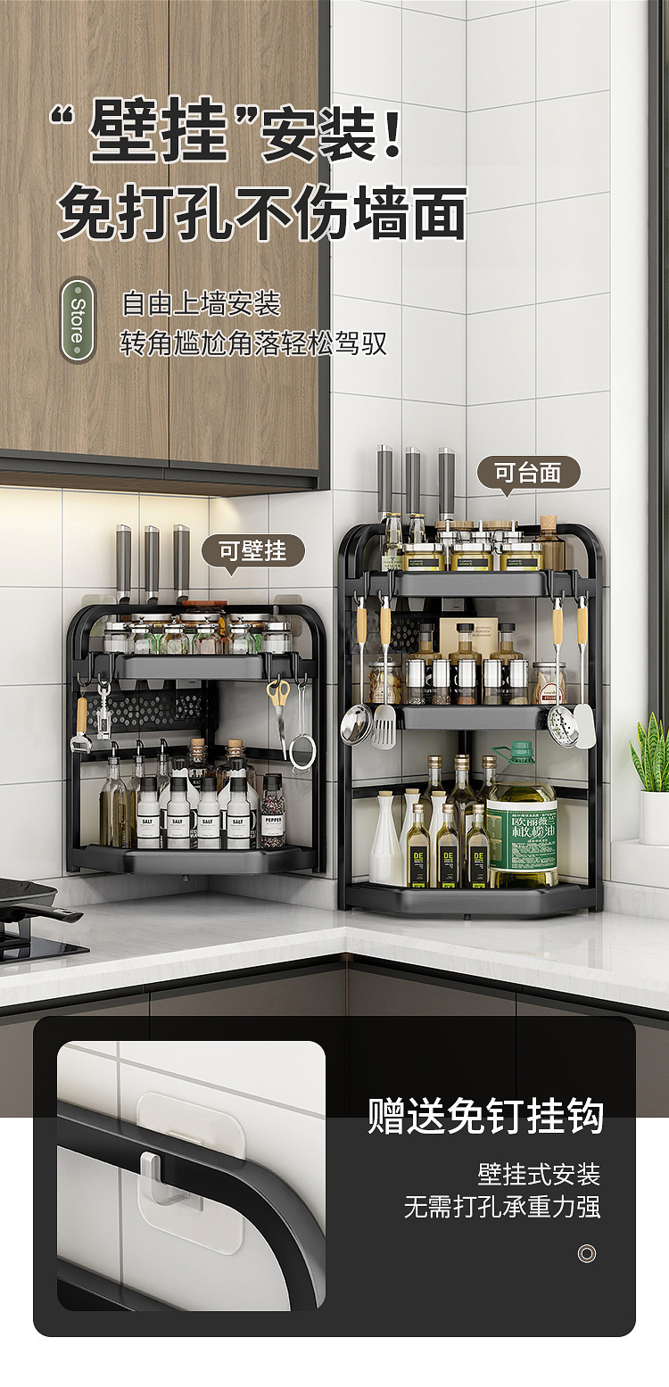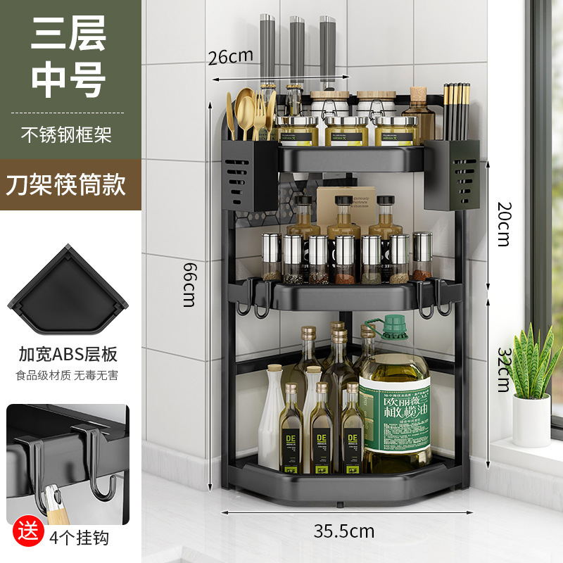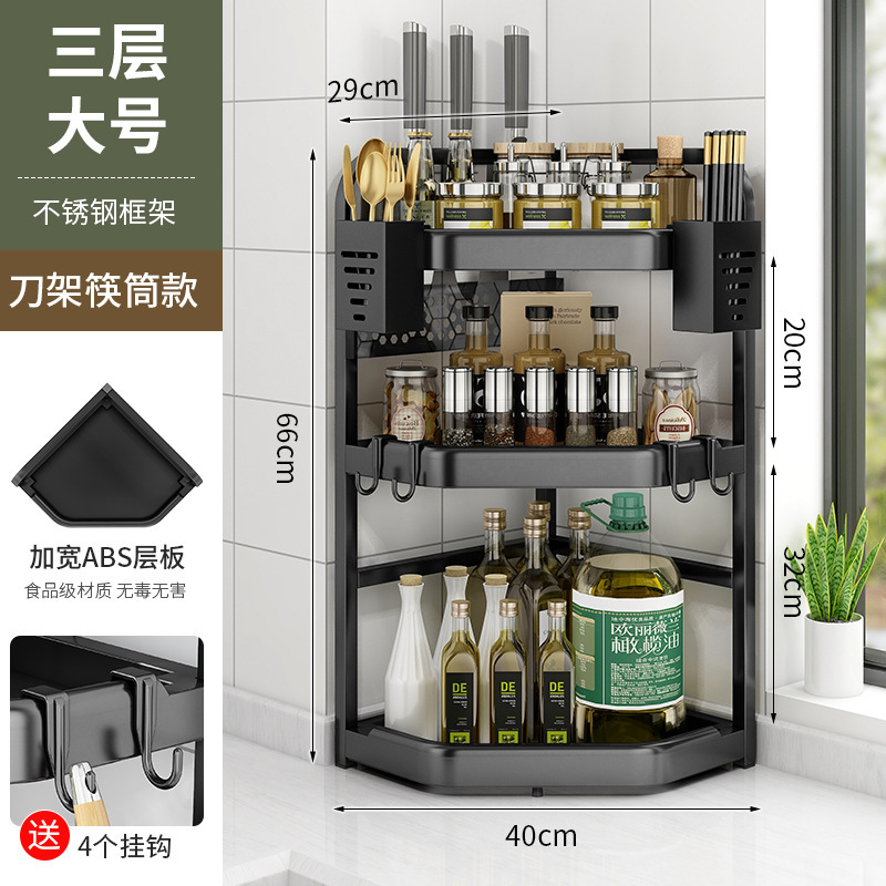 양념을위한 주방 선반 비 펀치 테이블 탑 코너 나이프 젓가락 조미료 항아리 선반 다기능 삼각형 저장 랙