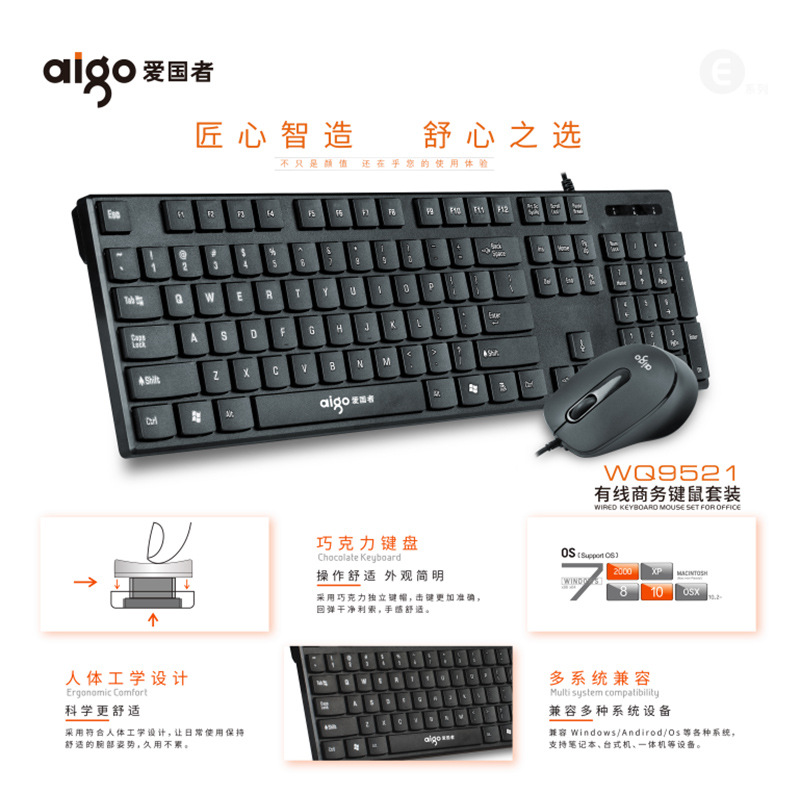 도매 사랑 guo WQ9521 유선 키보드 마우스 세트 usb 사무실 비즈니스 초콜릿 키 캡
