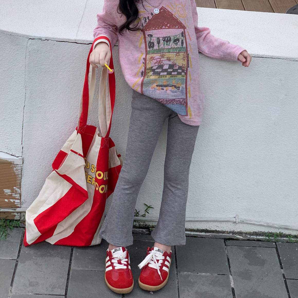 소녀 레깅스 2024 가을 새 어린이 2-7 세 기본 슬림 핏 벨 바지 어린이 외부 착용 바지스토어 가기
