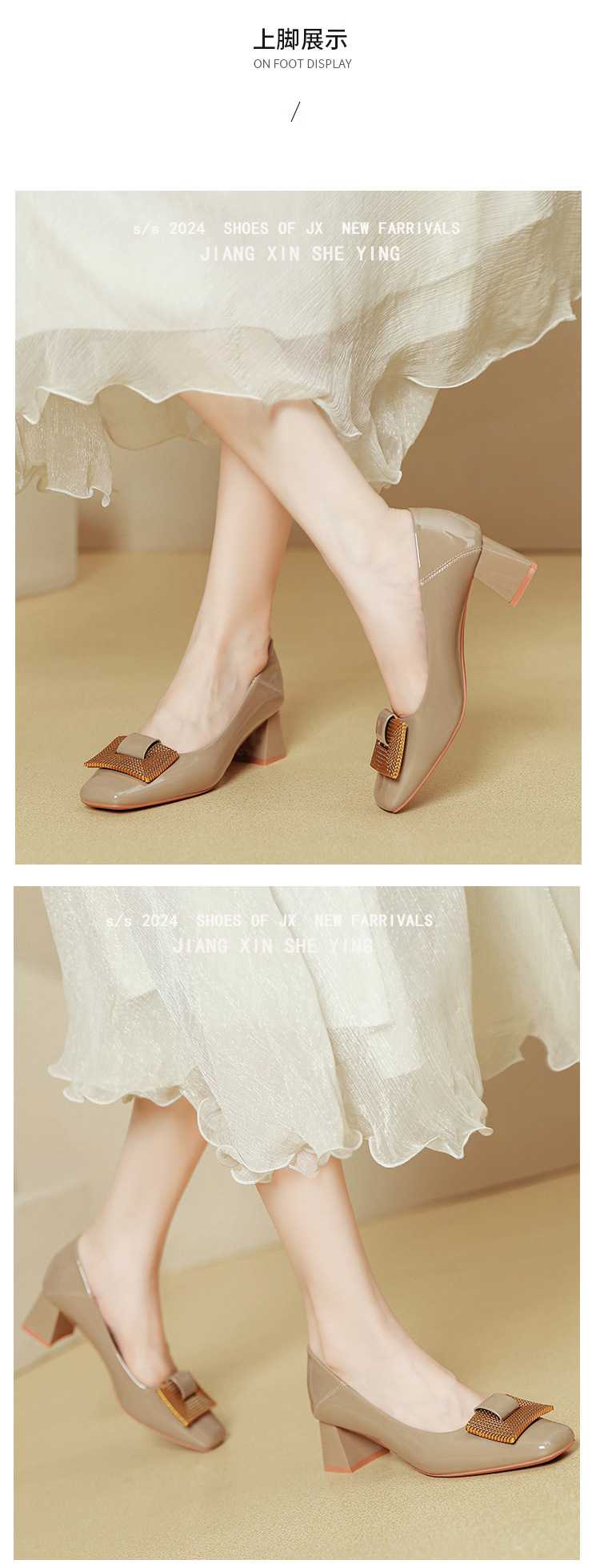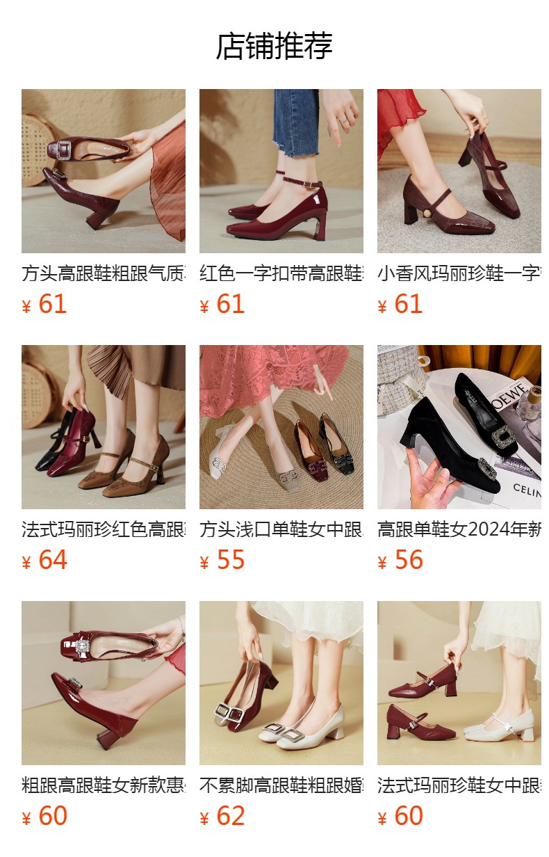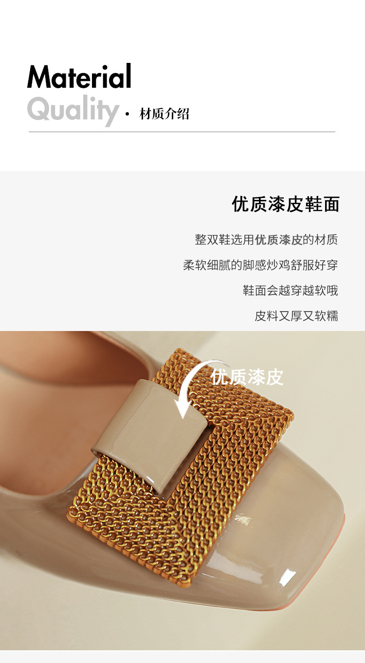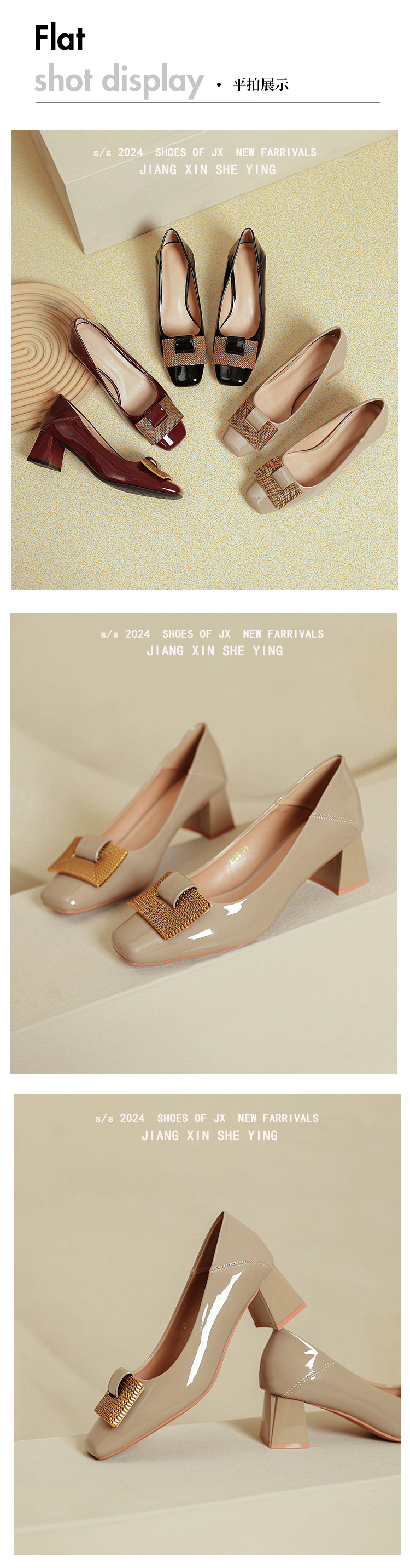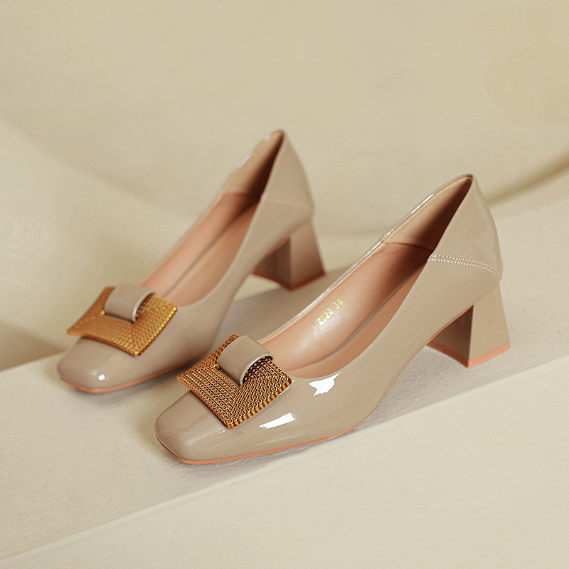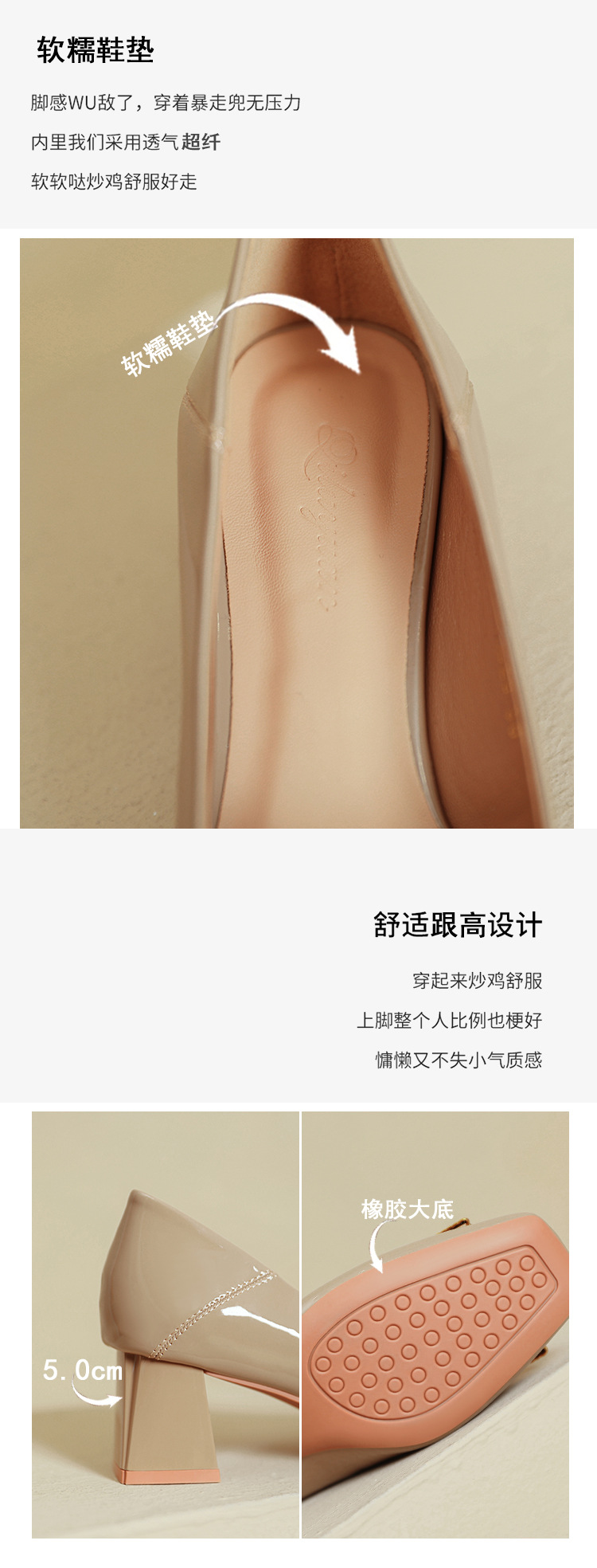 굽이 두꺼운 하이힐로 발이 피곤하지 않음 2025 신상 레드 웨딩 슈즈 미들힐 봄 가을 여성화 페이턴트 가죽 스퀘어토 얕은 굽 신발스토어 가기