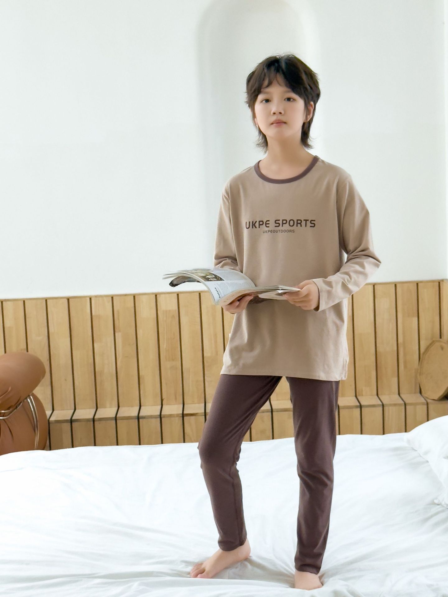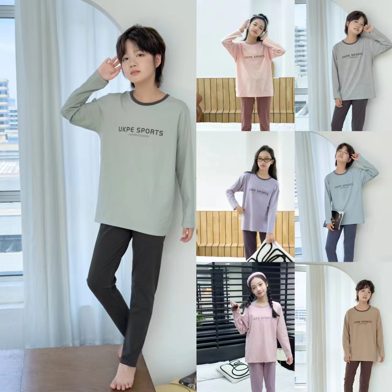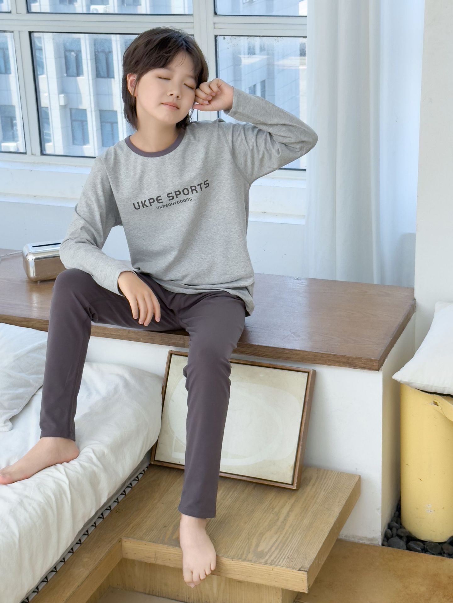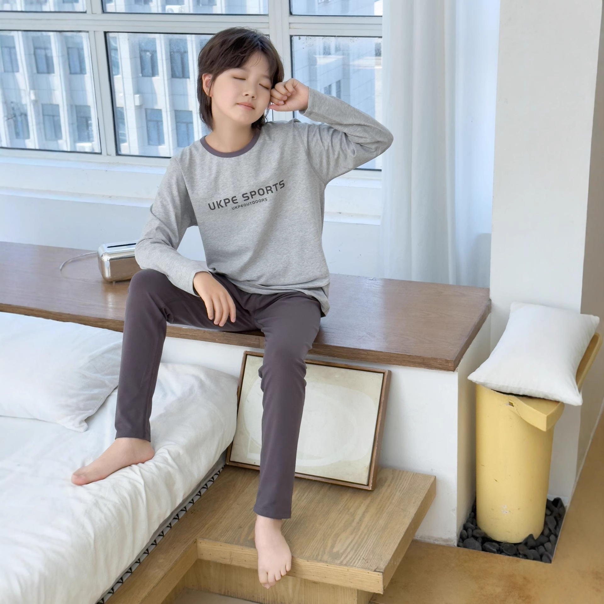 Minxuaner의 새로운 가을 단색 라이크라 면 중대형 아동 속옷 세트, 청소년용 코마 면 가을 옷 도매