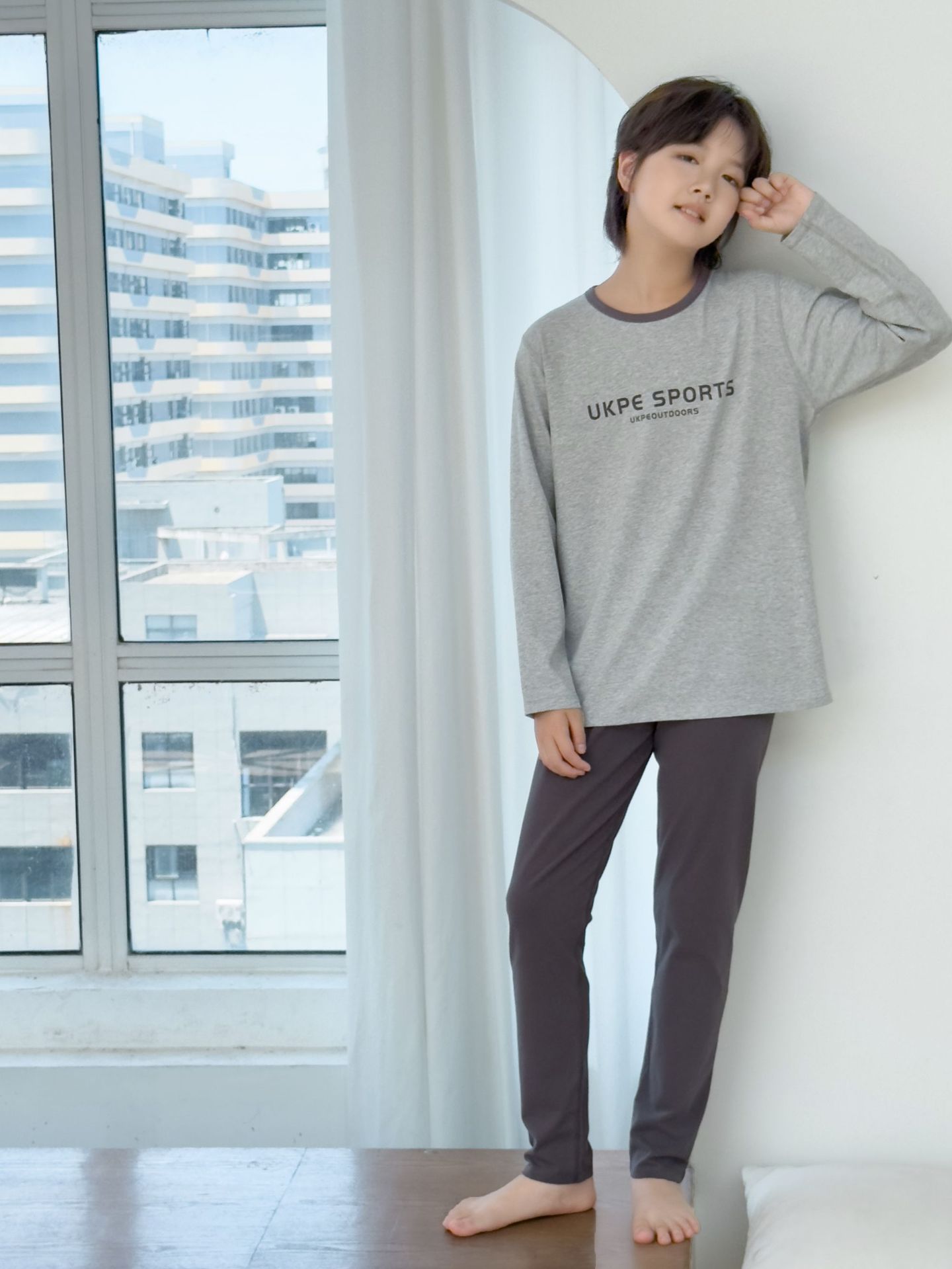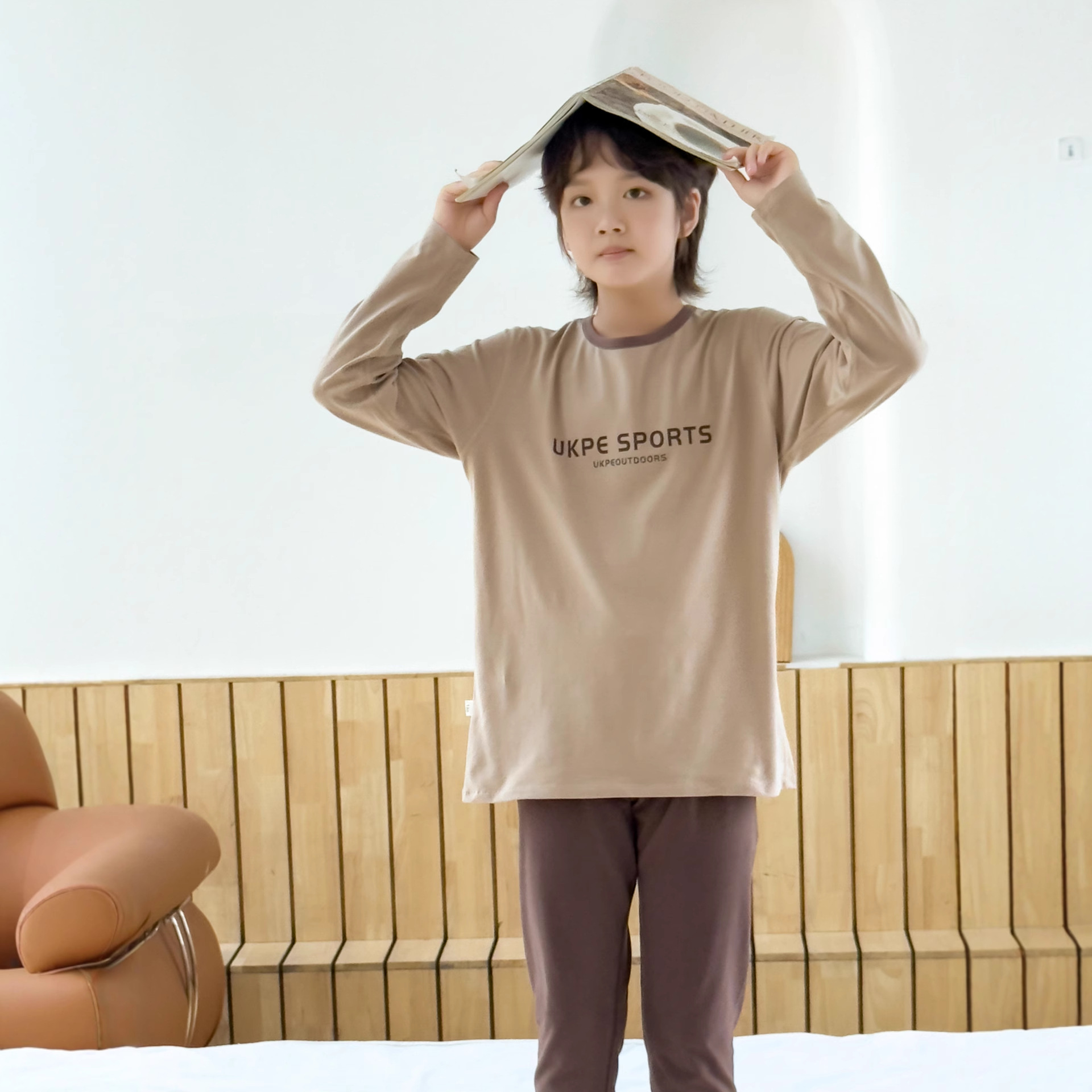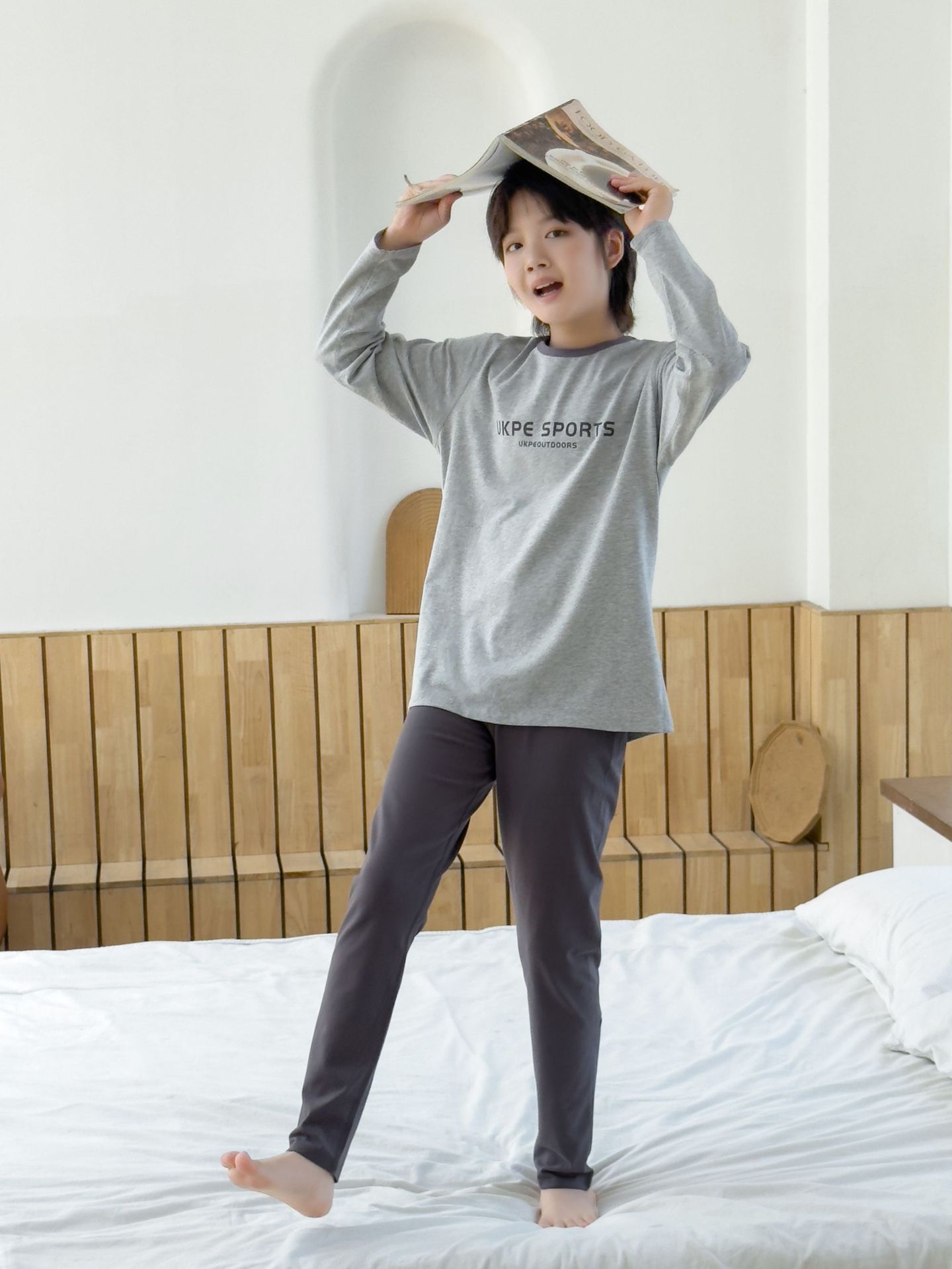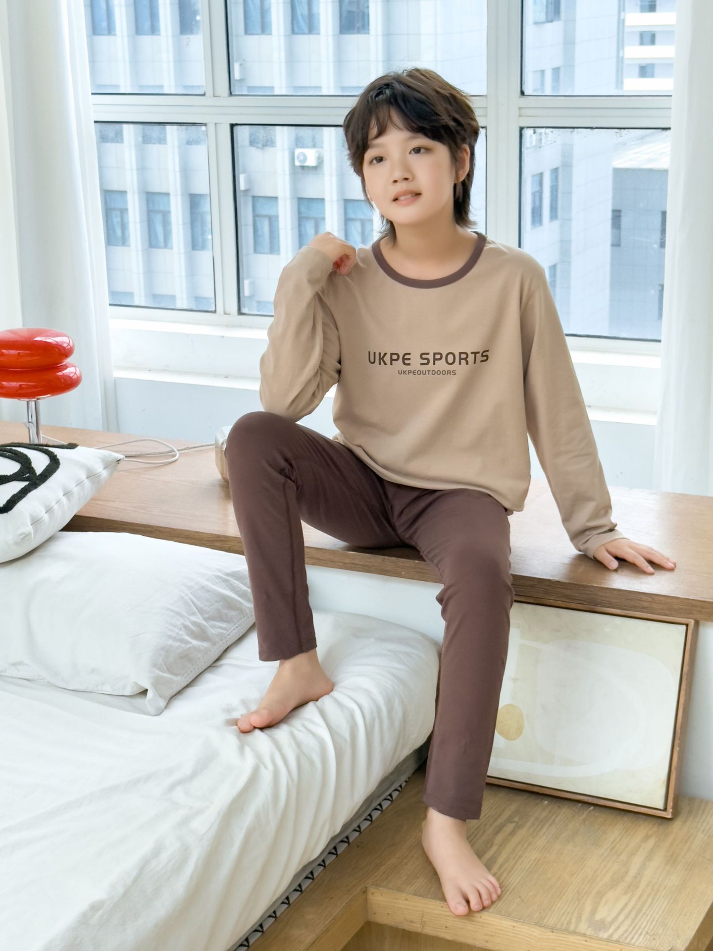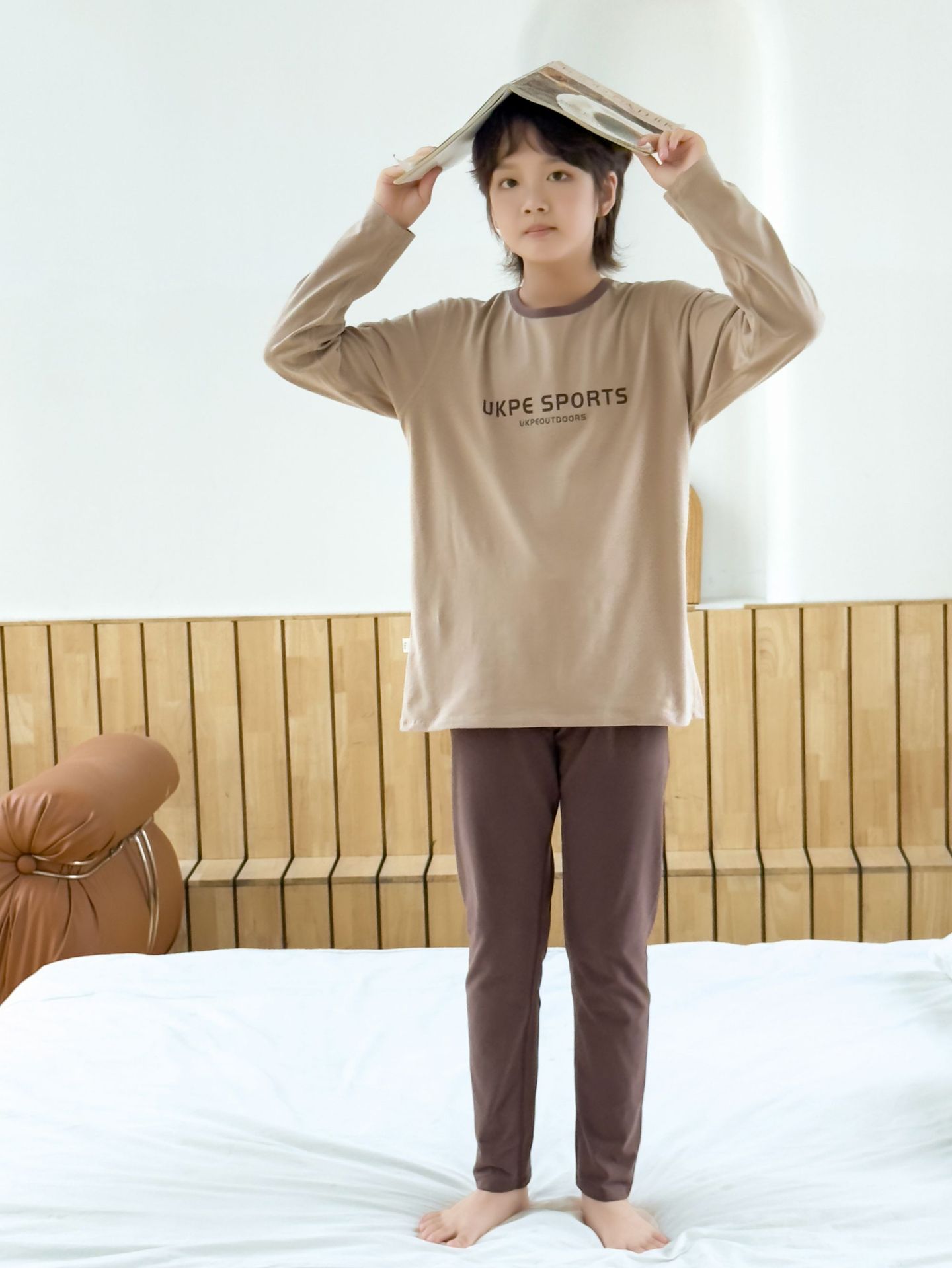 Minxuaner의 새로운 가을 단색 라이크라 면 중대형 아동 속옷 세트, 청소년용 코마 면 가을 옷 도매