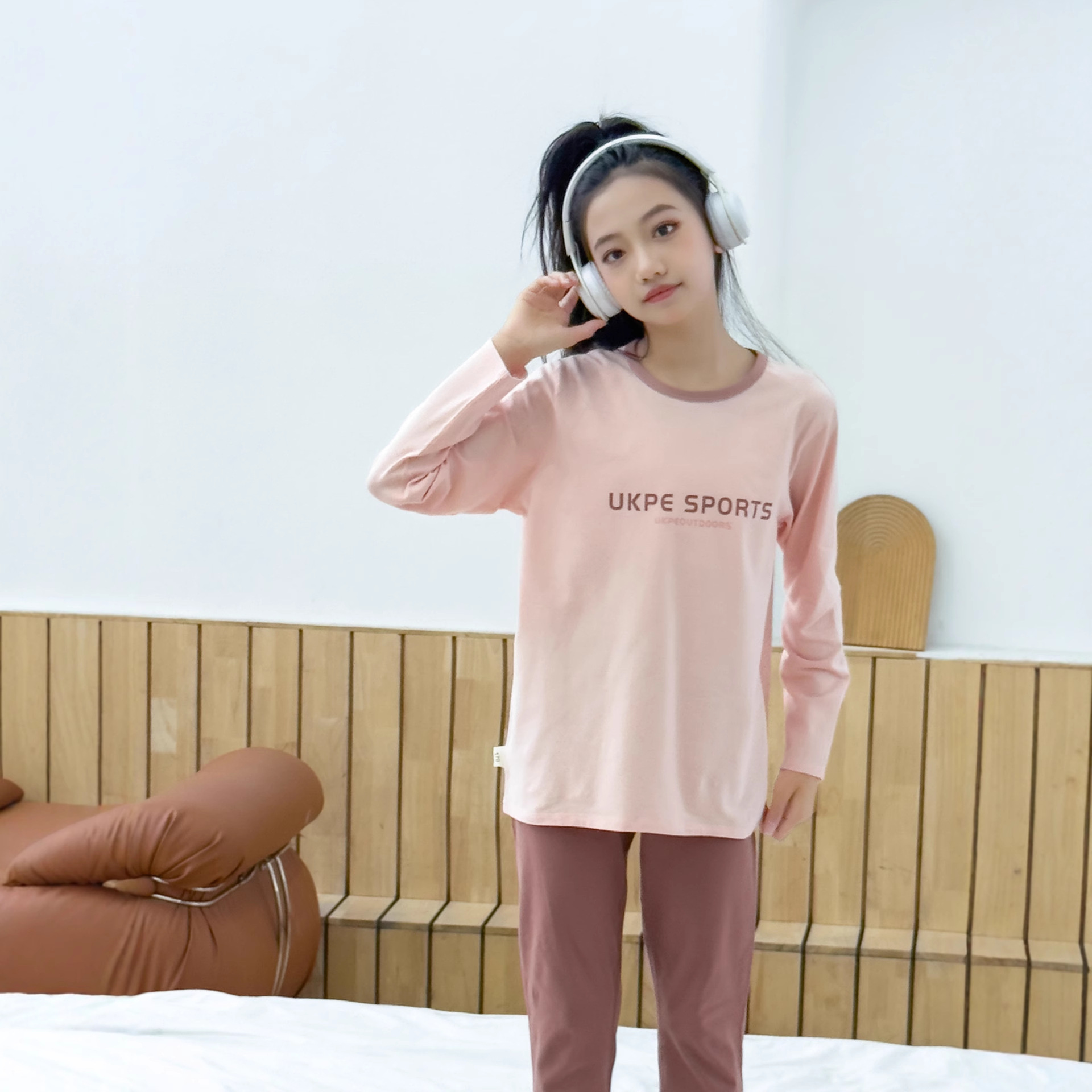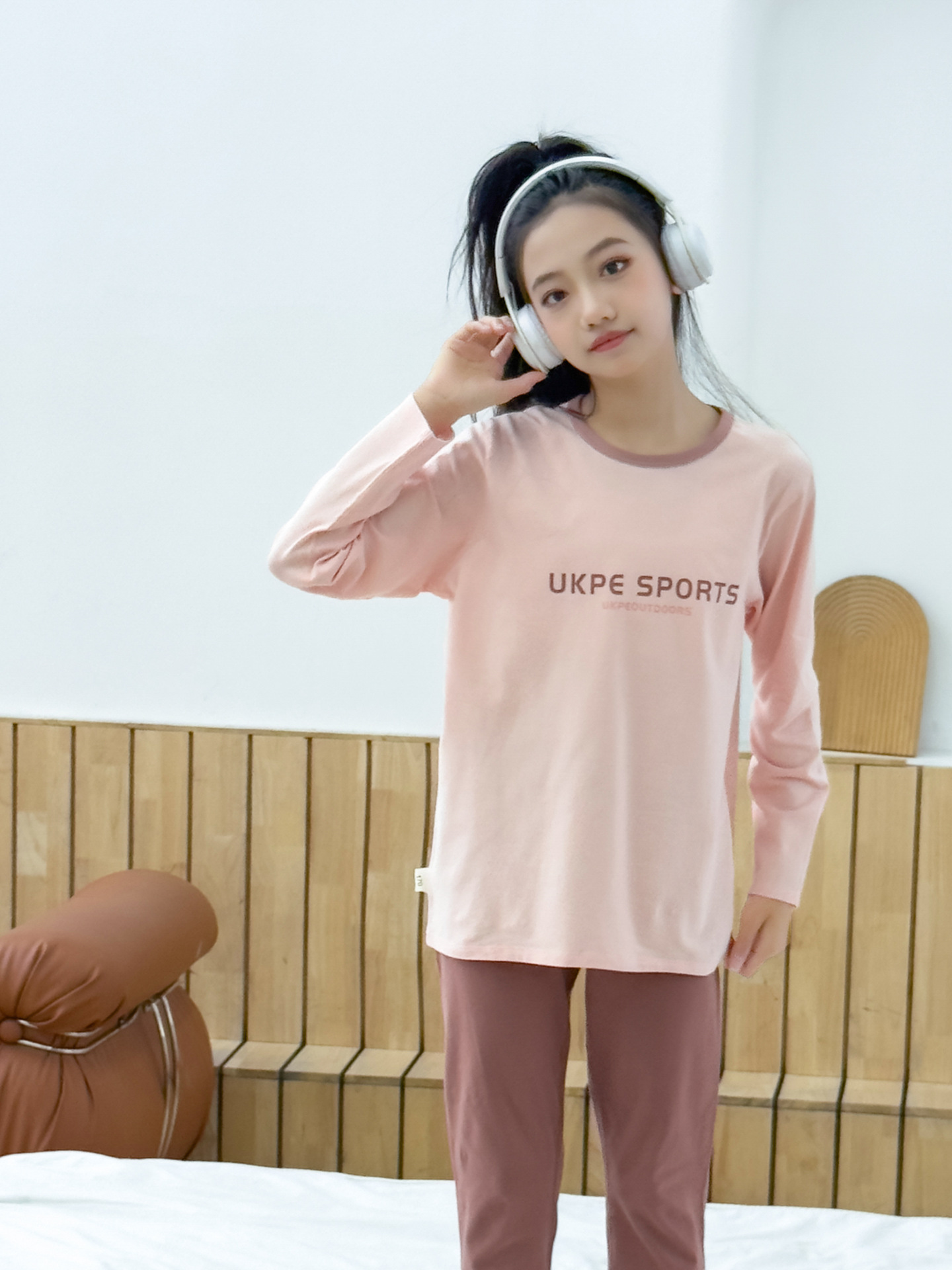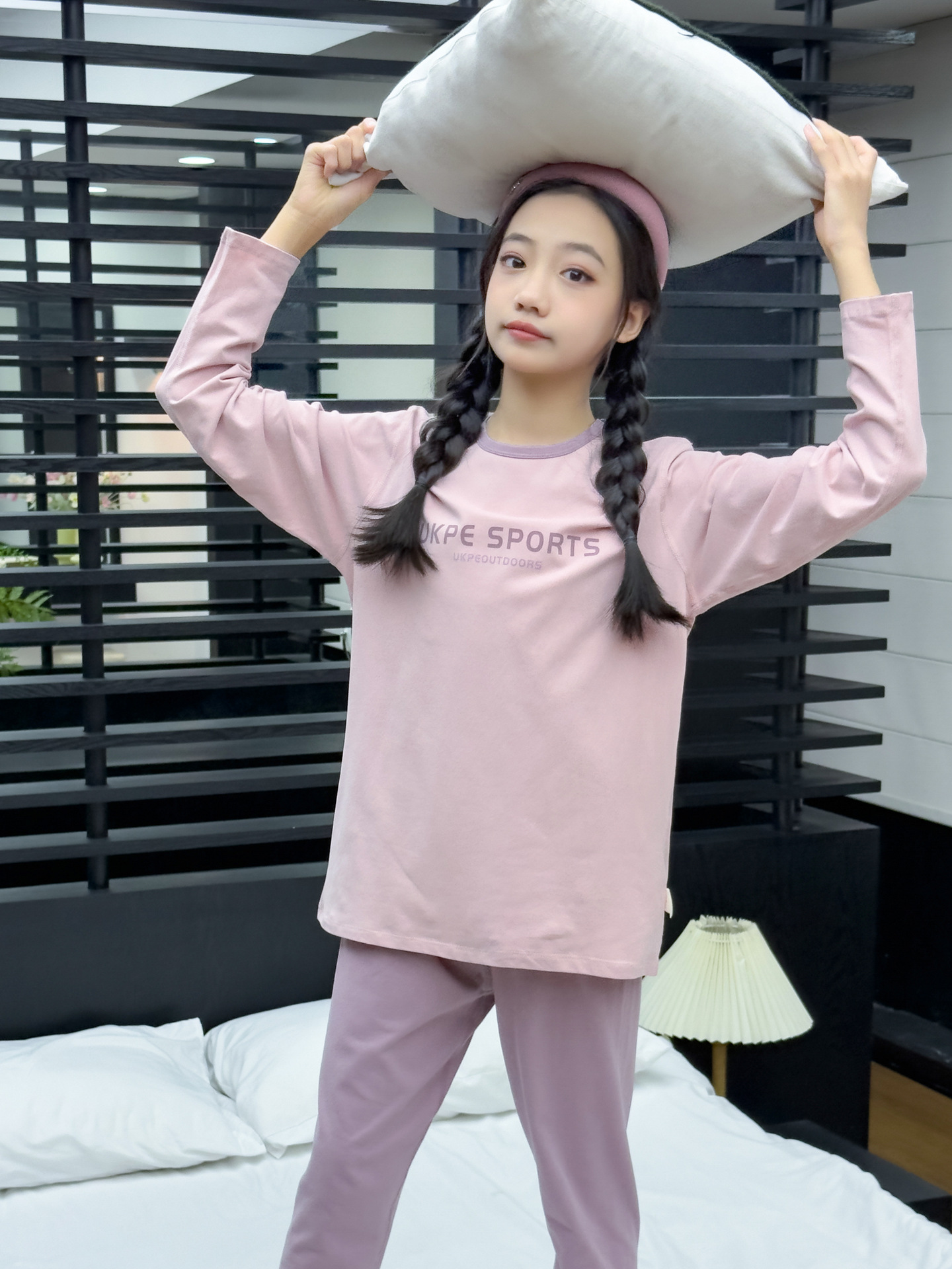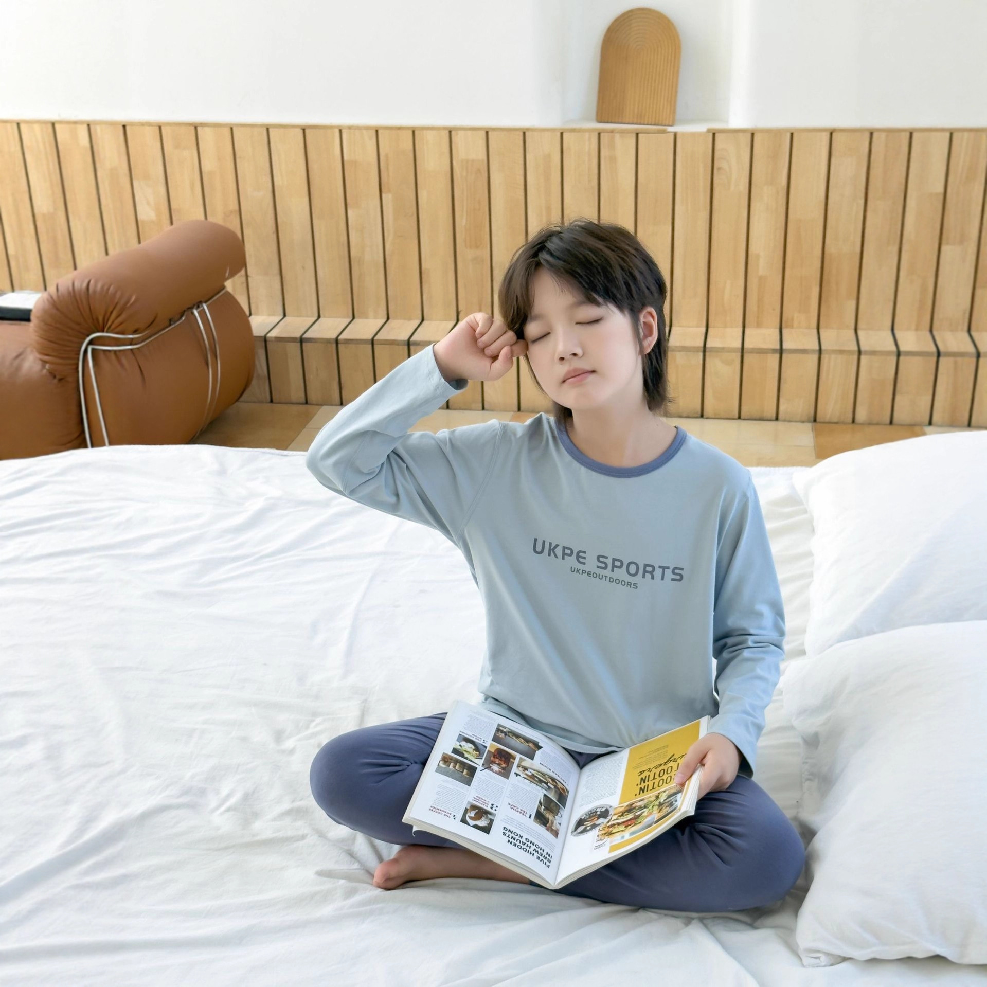Minxuaner의 새로운 가을 단색 라이크라 면 중대형 아동 속옷 세트, 청소년용 코마 면 가을 옷 도매