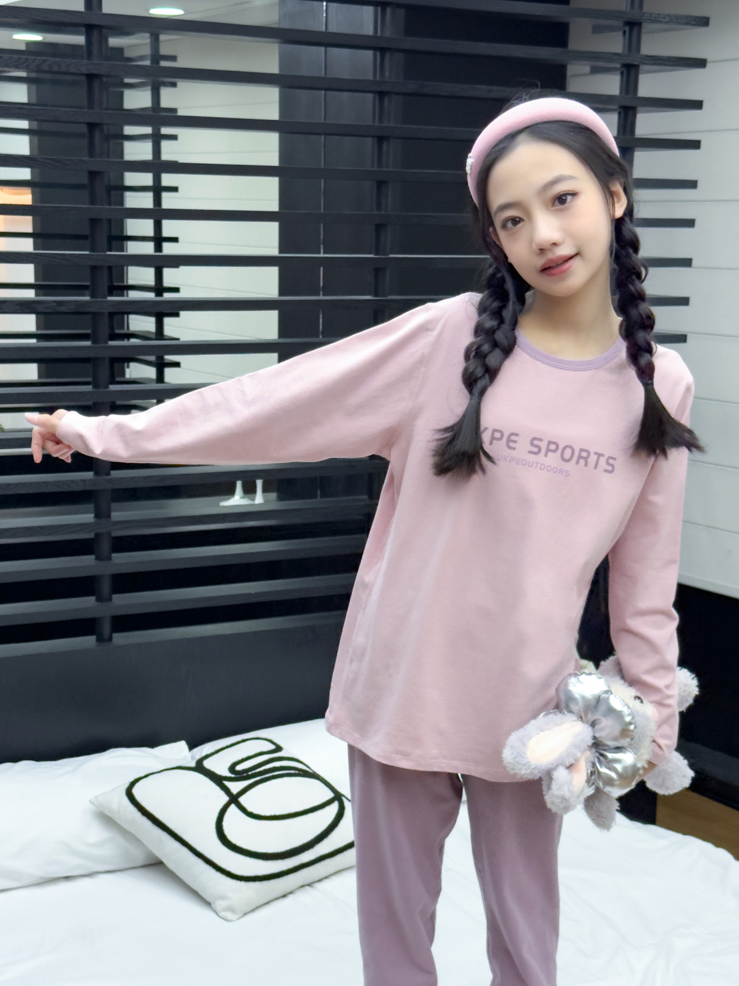 Minxuaner의 새로운 가을 단색 라이크라 면 중대형 아동 속옷 세트, 청소년용 코마 면 가을 옷 도매스토어 가기