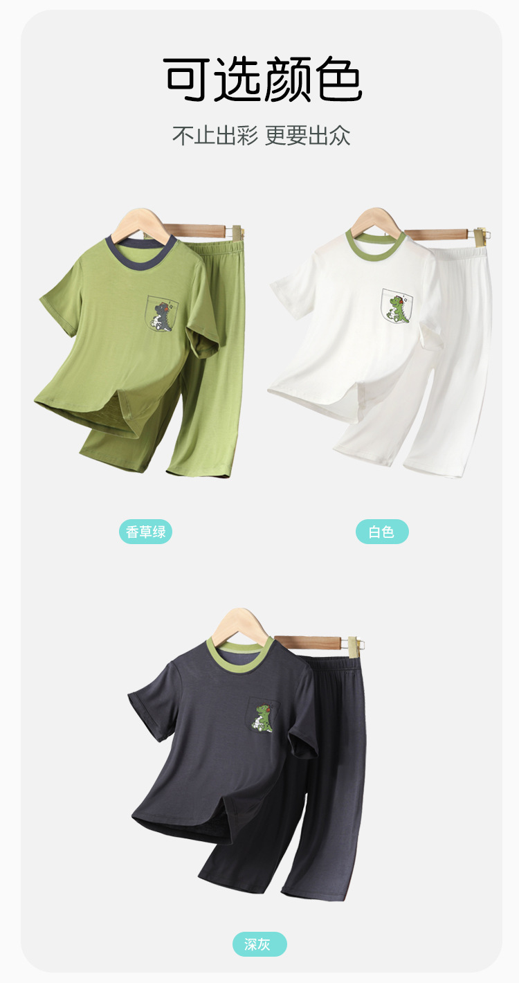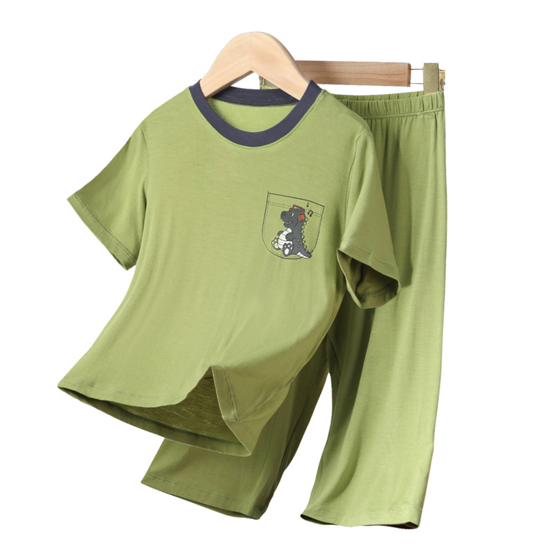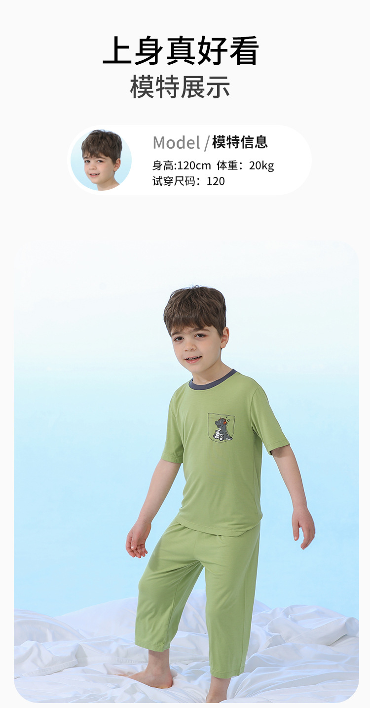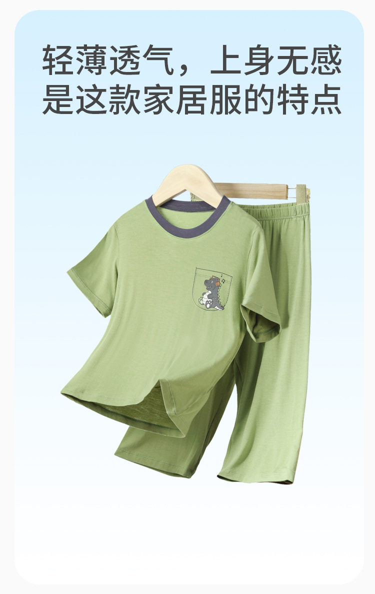 2024 새로운 여름 소년 잠옷 클래스 얇은 공룡 짧은 소매 반바지 모달 홈 의류 세트 공장