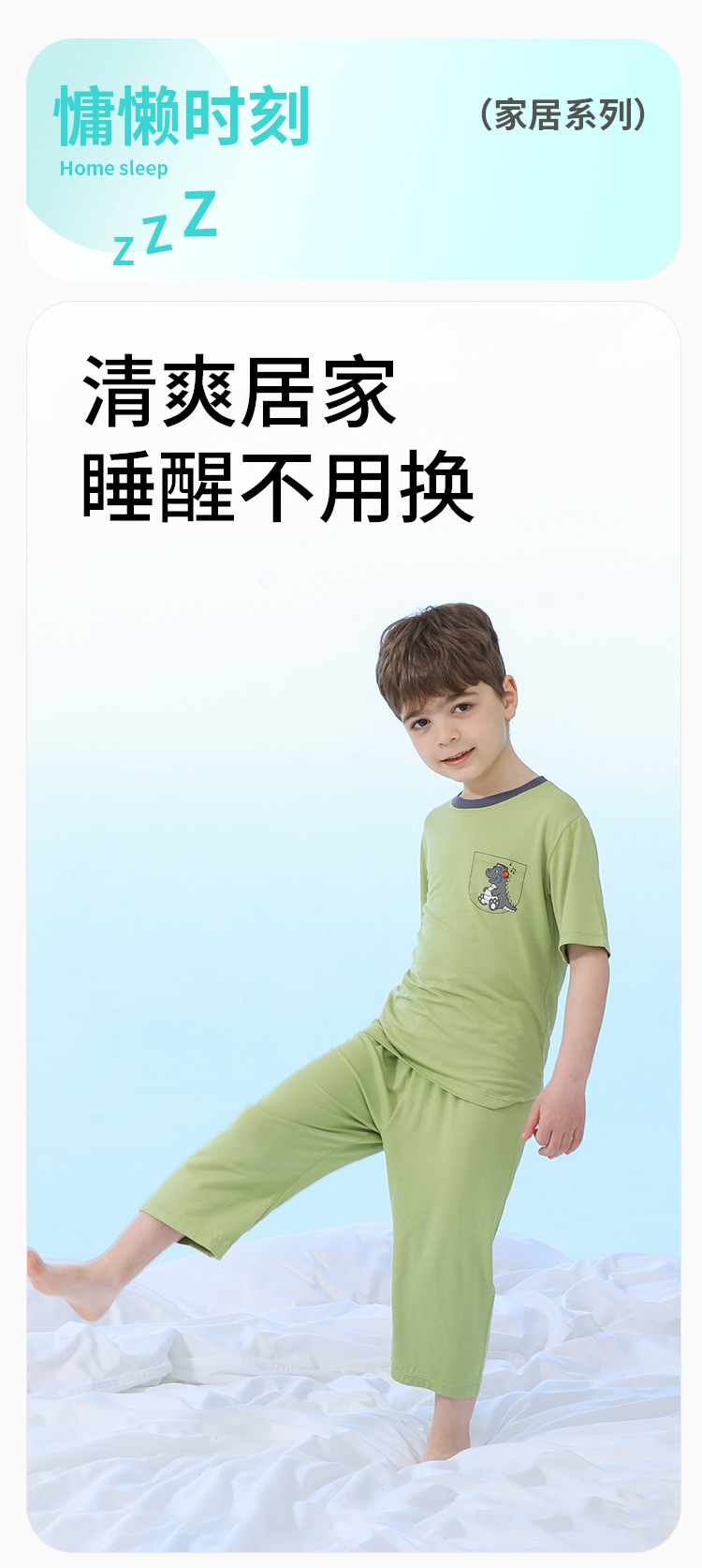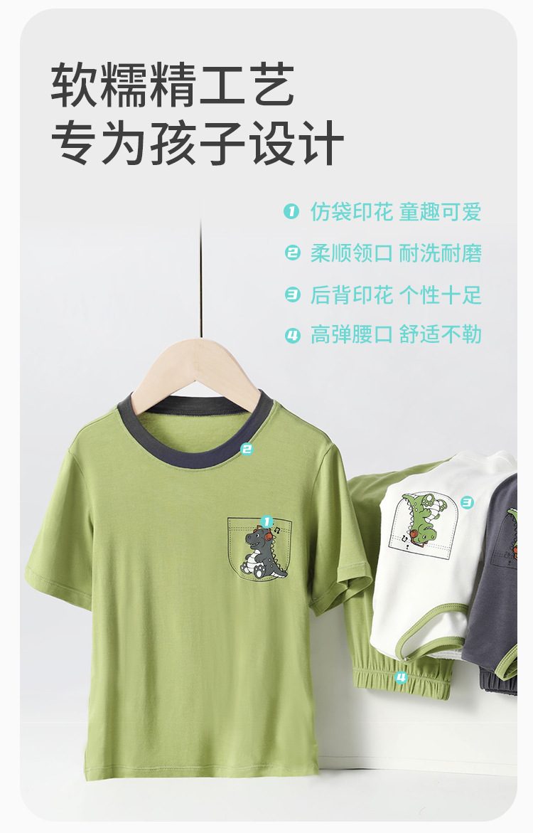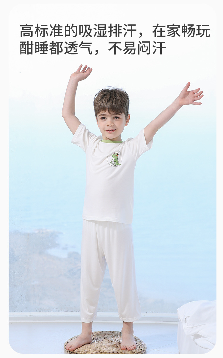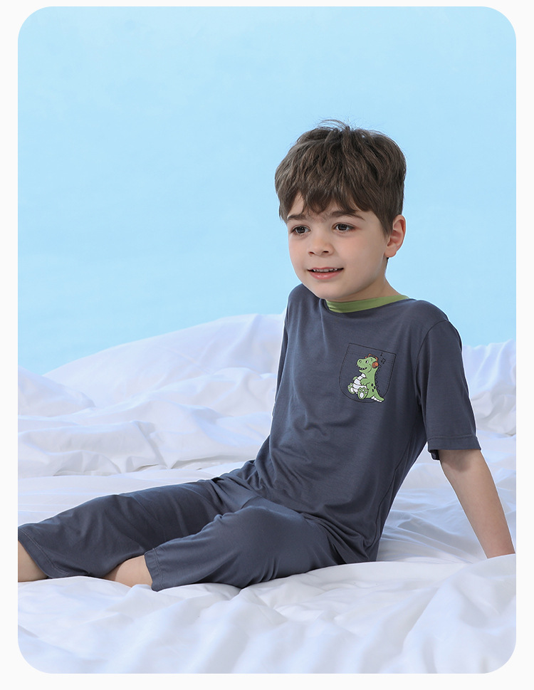 2024 새로운 여름 소년 잠옷 클래스 얇은 공룡 짧은 소매 반바지 모달 홈 의류 세트 공장