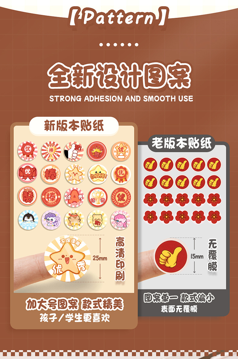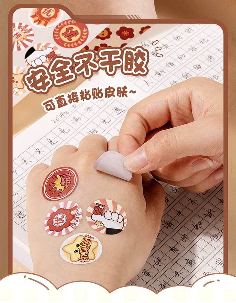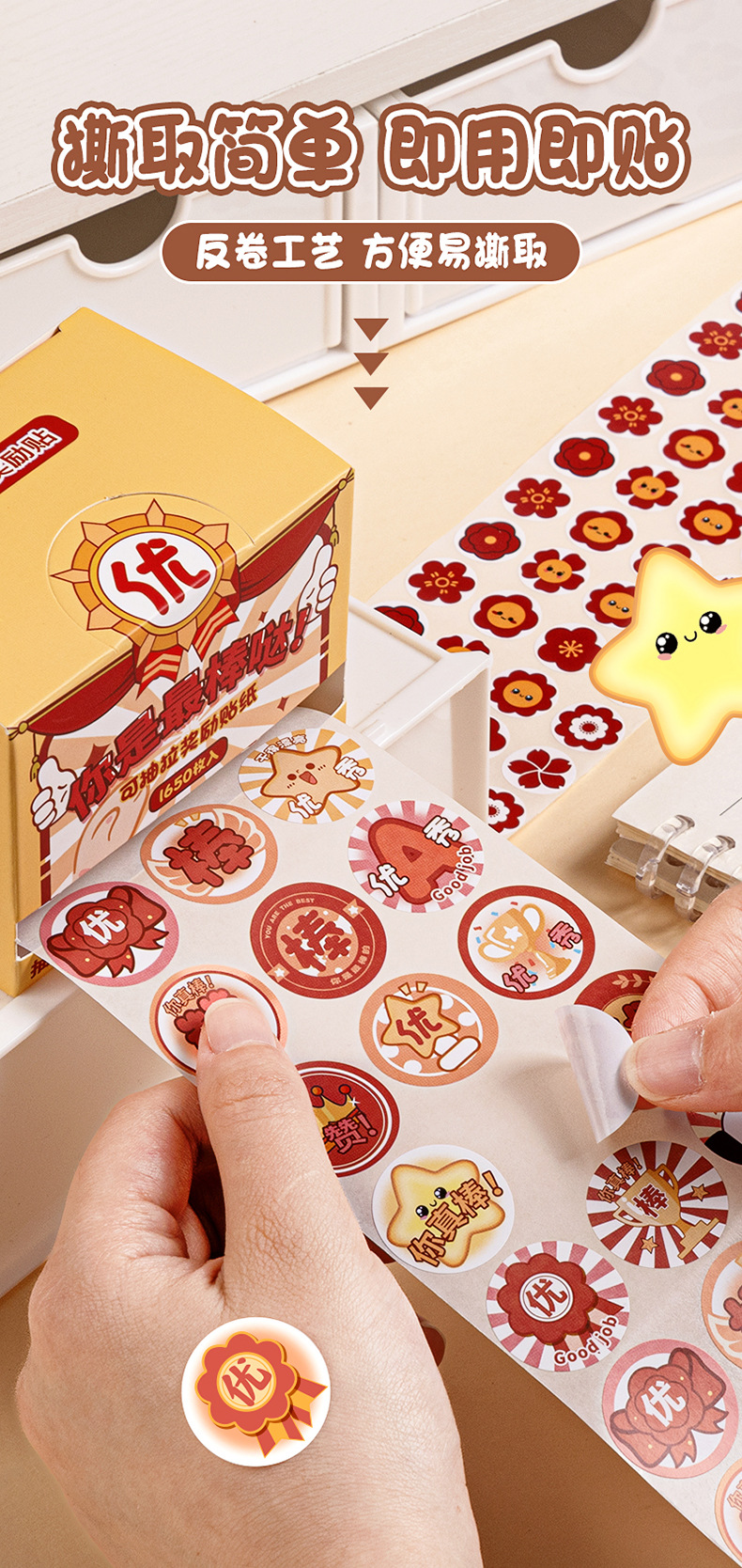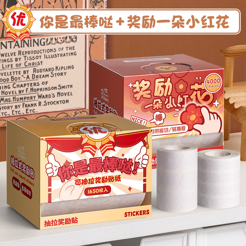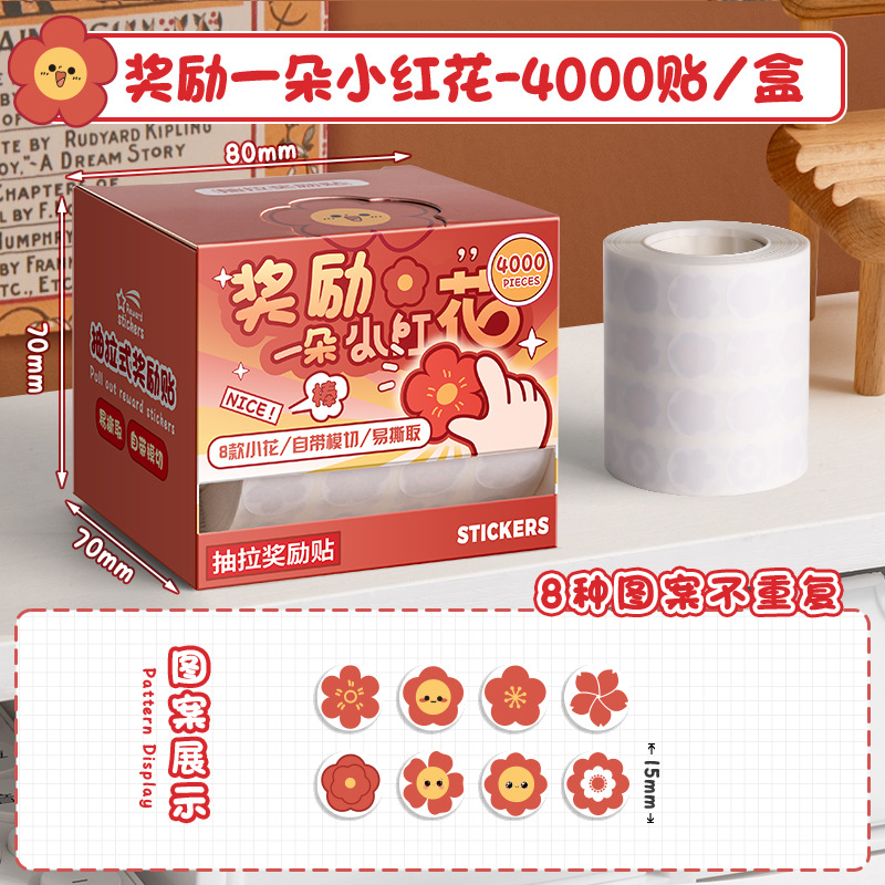 카바베어 보상 스티커, 당겨서 꺼내는 어린이 칭찬 스티커, 작은 빨간 꽃 유치원 만화 스티커, 장식용 작은 패턴