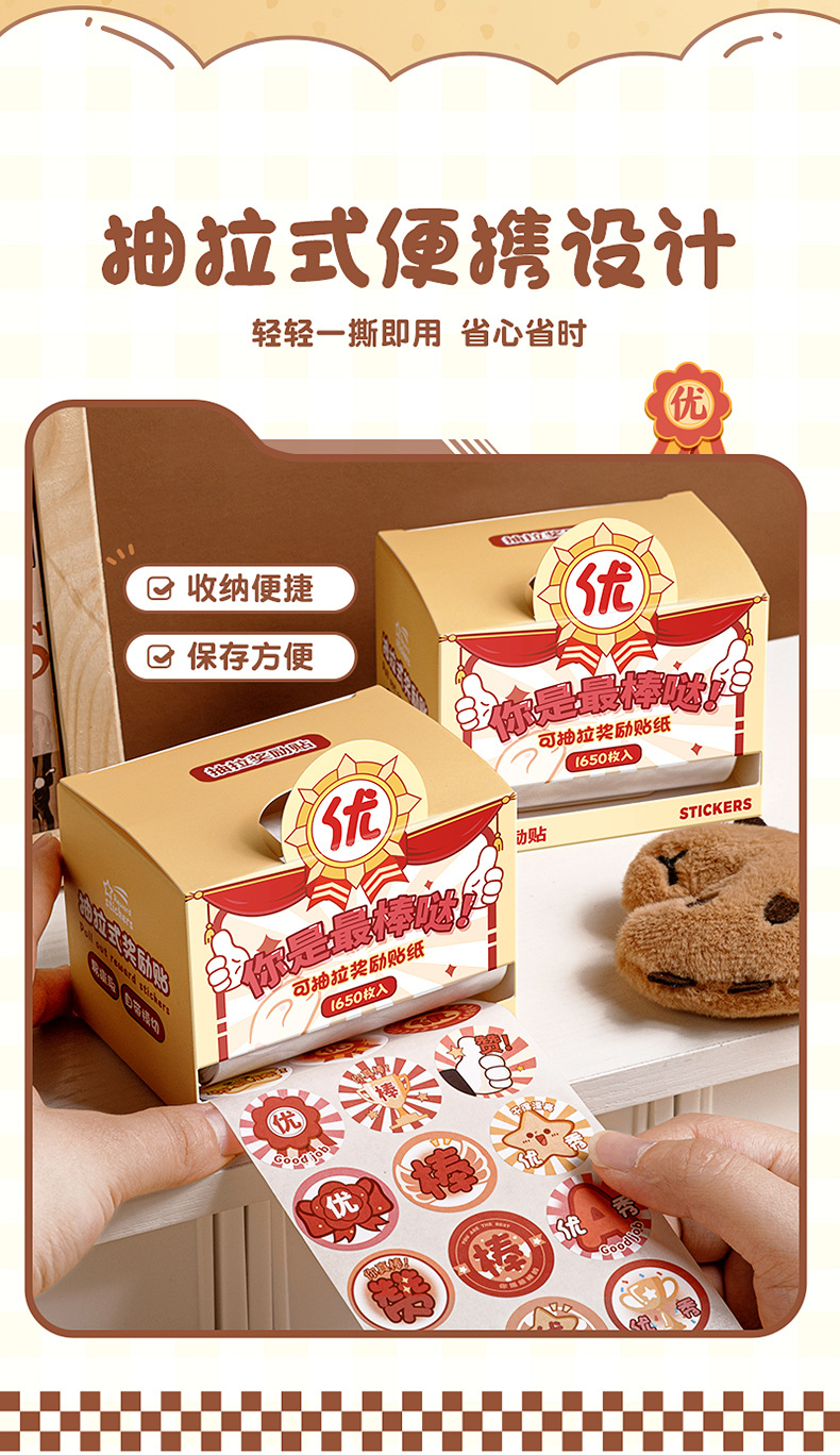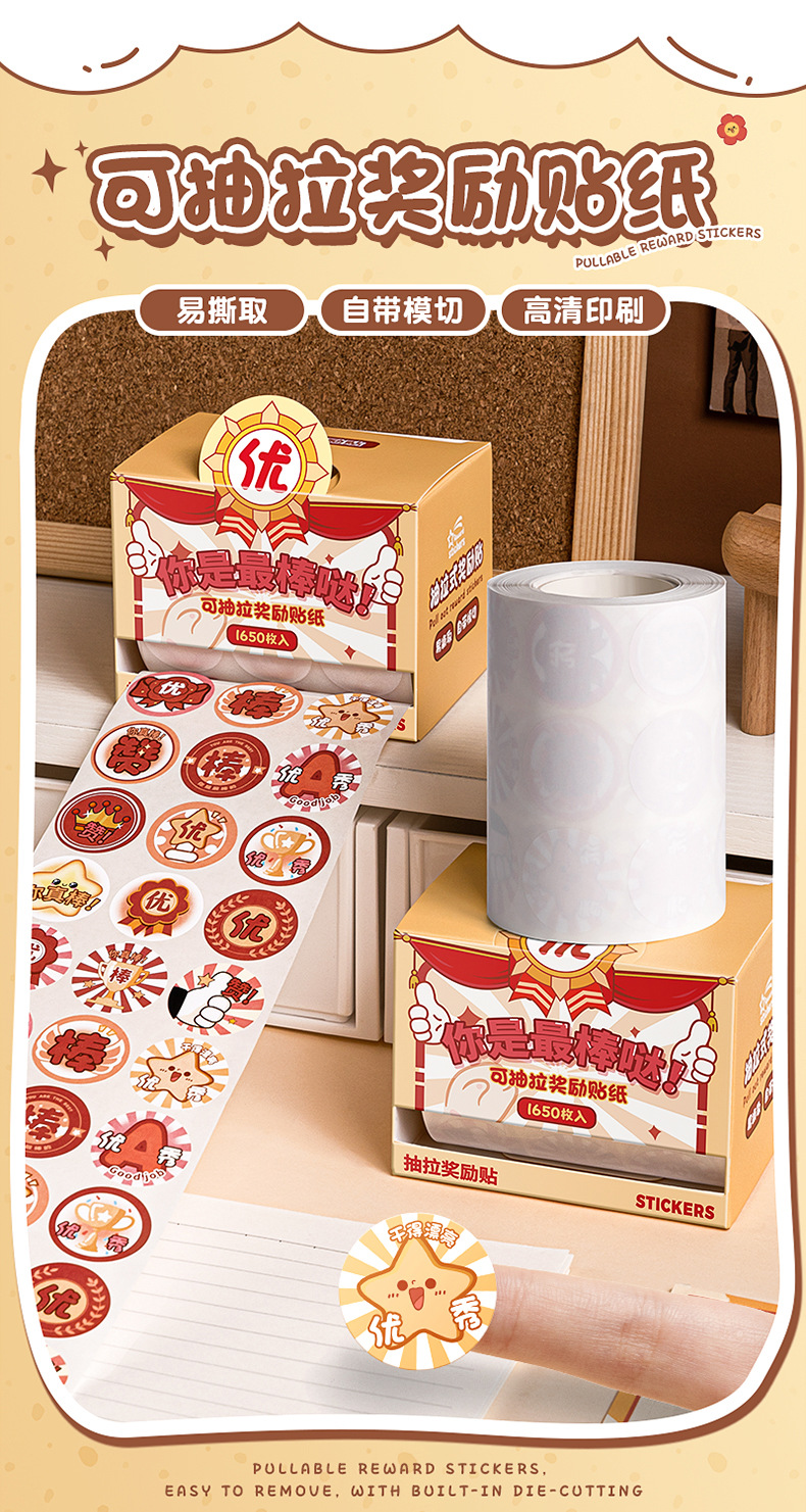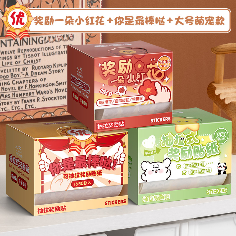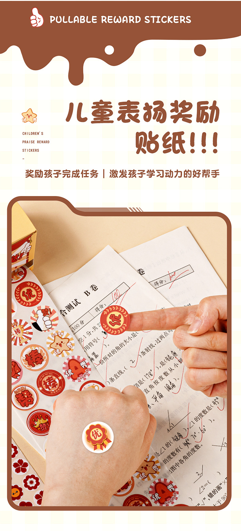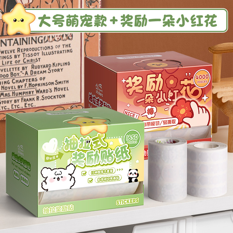 카바베어 보상 스티커, 당겨서 꺼내는 어린이 칭찬 스티커, 작은 빨간 꽃 유치원 만화 스티커, 장식용 작은 패턴스토어 가기