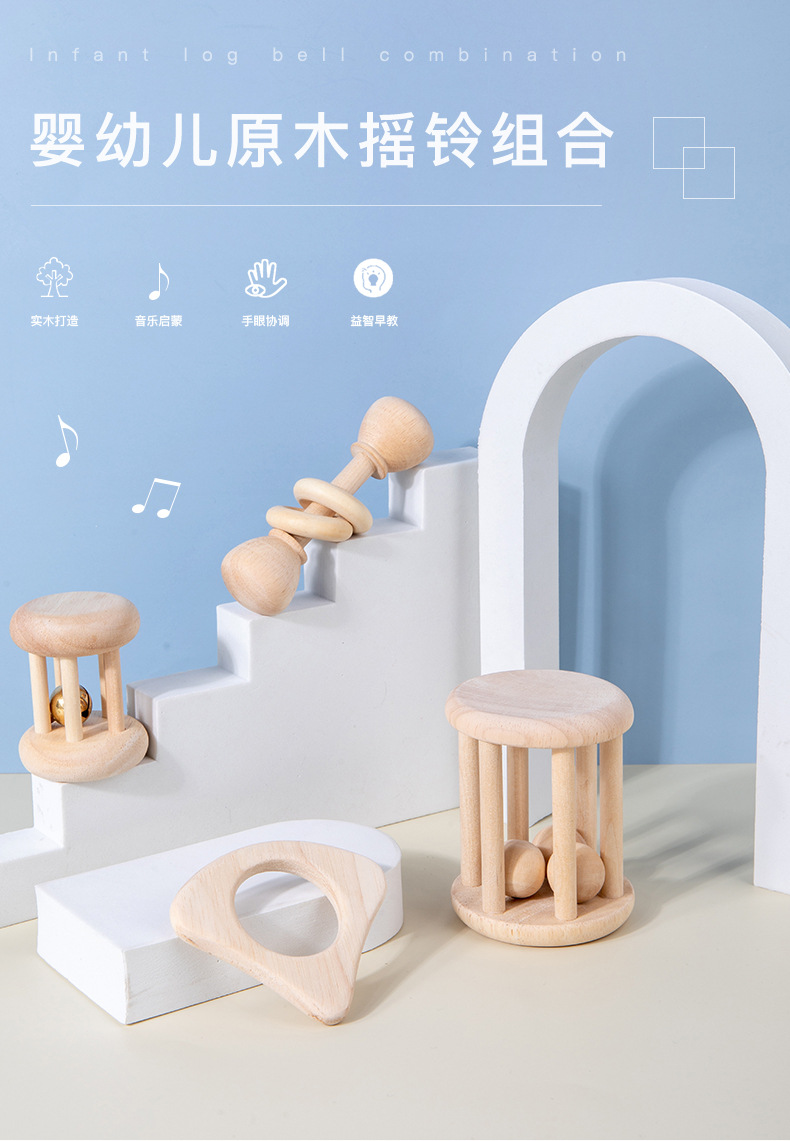 CE 나무 아기 통나무 손 딸랑이 세트 조기 교육 오르프 악기 어금니 소리 진정 장난감스토어 가기