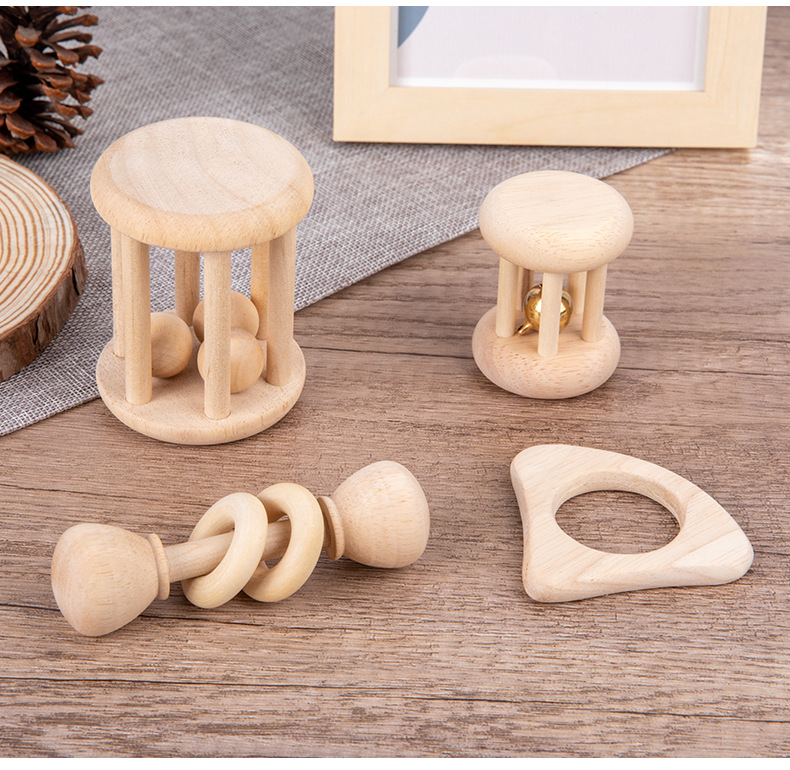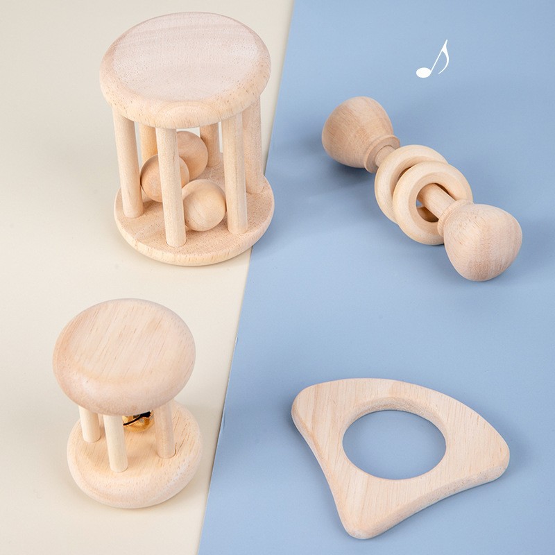 CE 나무 아기 통나무 손 딸랑이 세트 조기 교육 오르프 악기 어금니 소리 진정 장난감