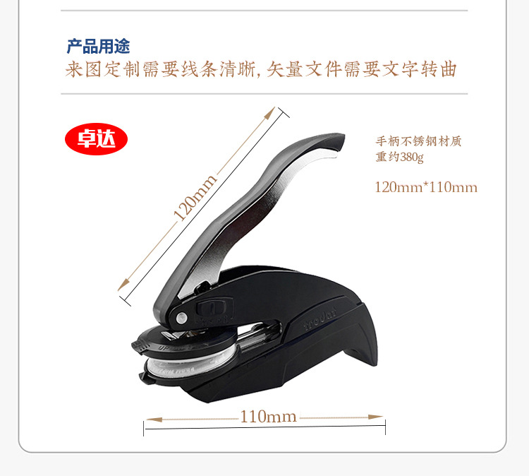 Zhuoda 핸드 펜치 씰 스틸 스탬프 휴대용 데스크탑 그림 DIY 엠보싱 휴대용 스틸 스탬프 새로운 씰 소재 도매스토어 가기