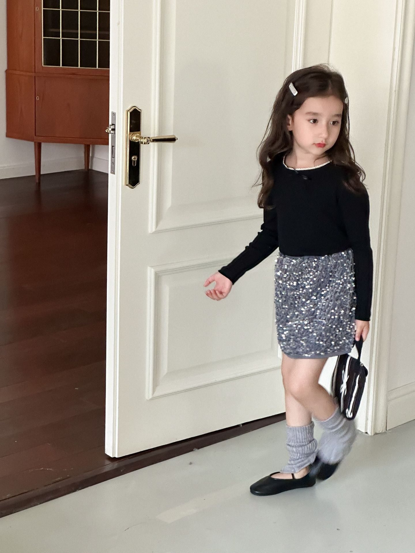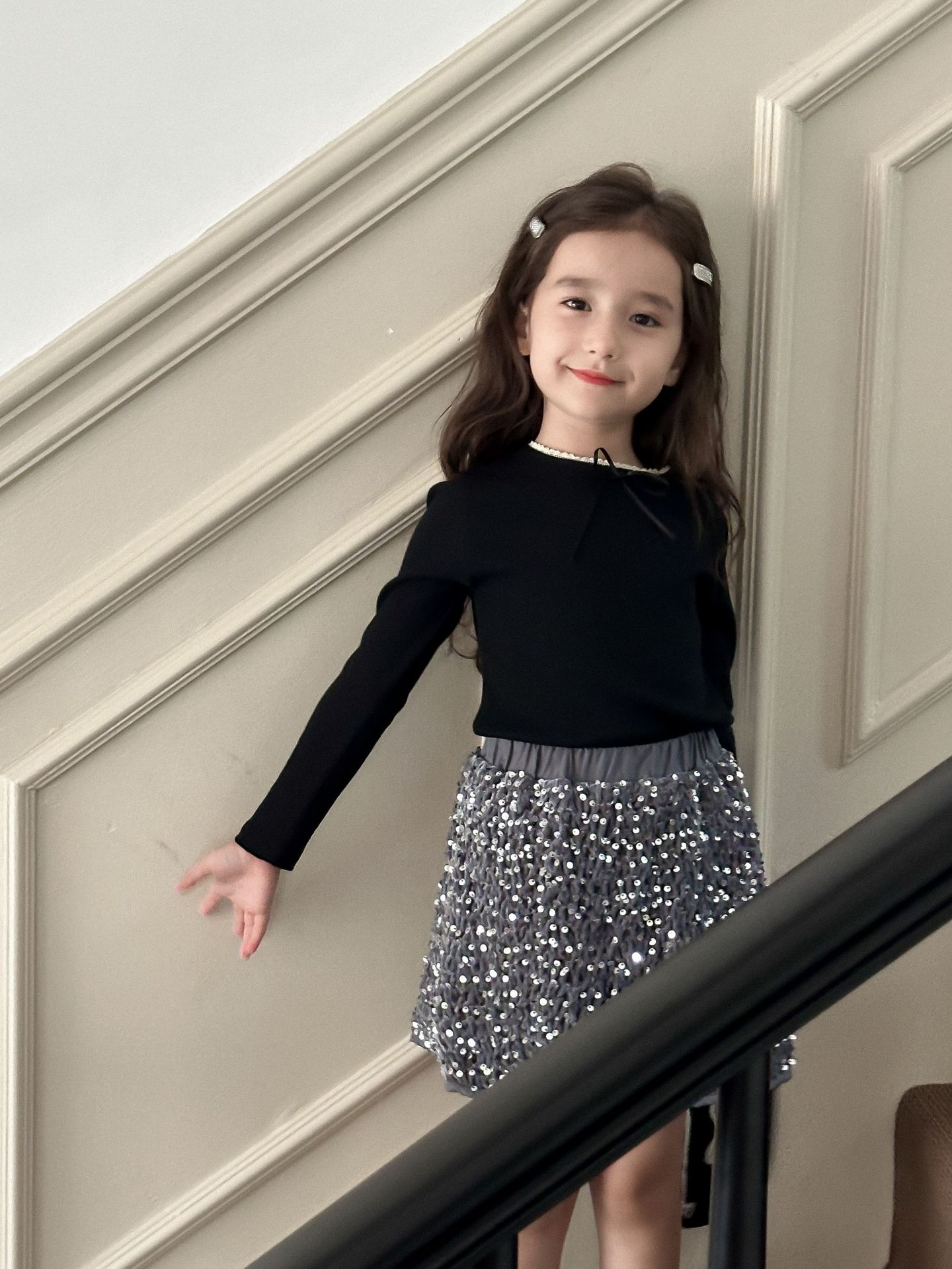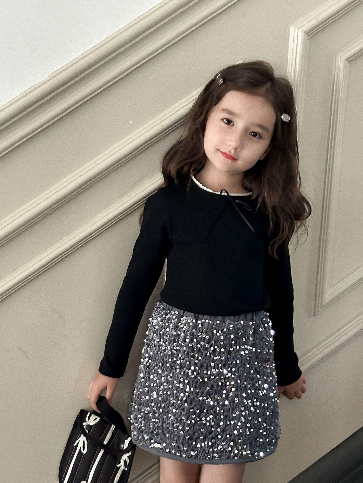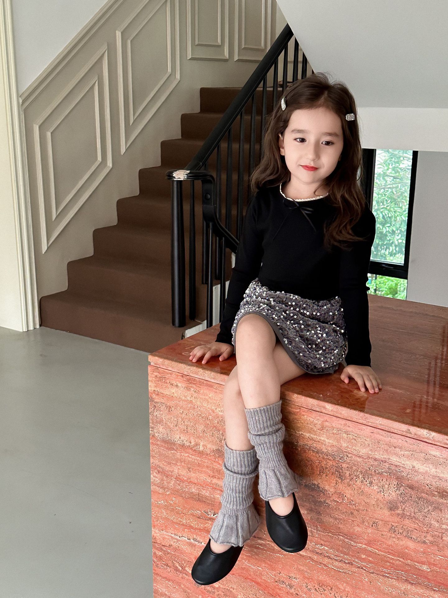 여아 레이스 칼라 밑단 셔츠 2025 가을 신상 한국 스타일 고탄성 긴팔 T 아동용 리본 탑