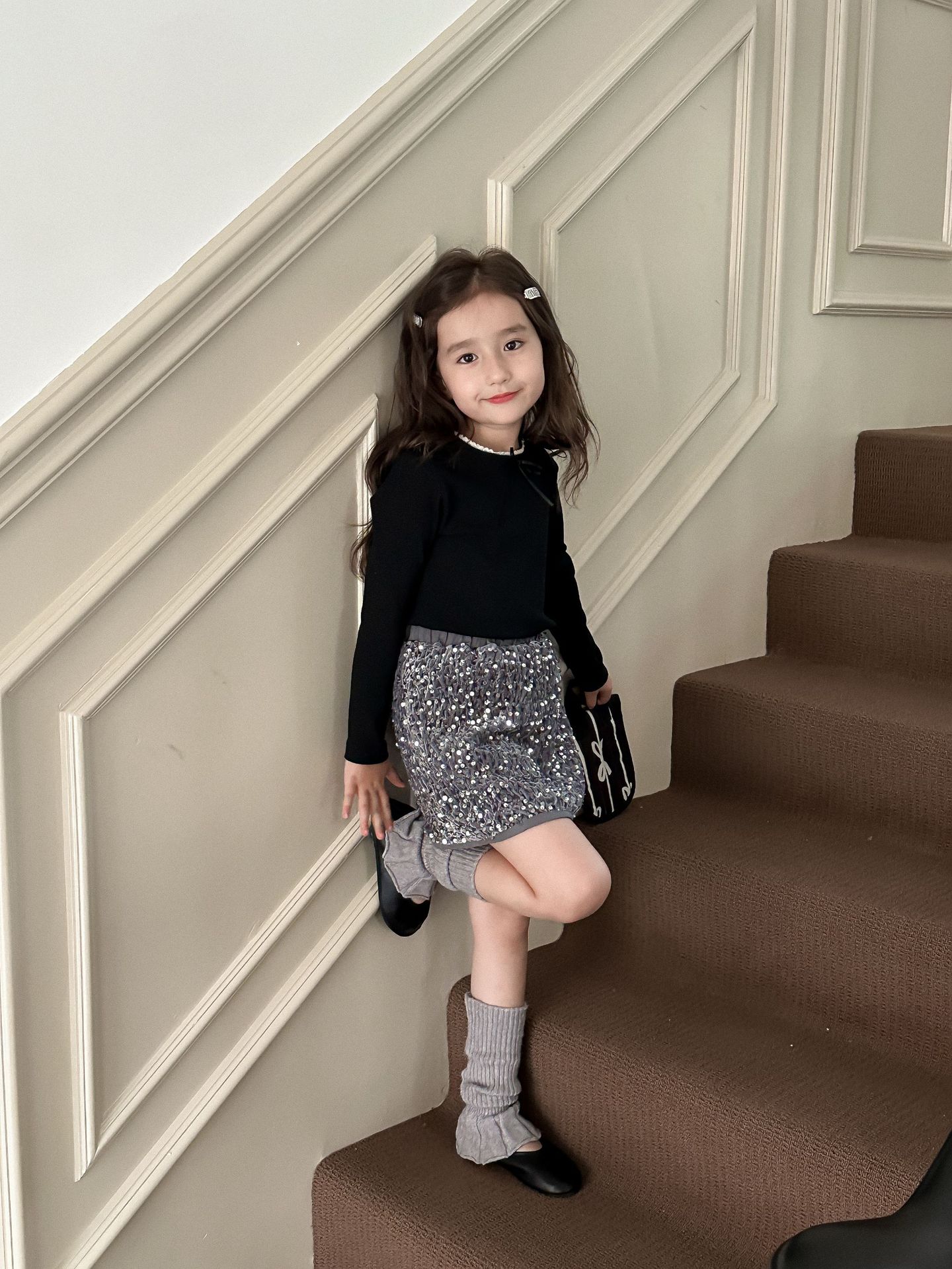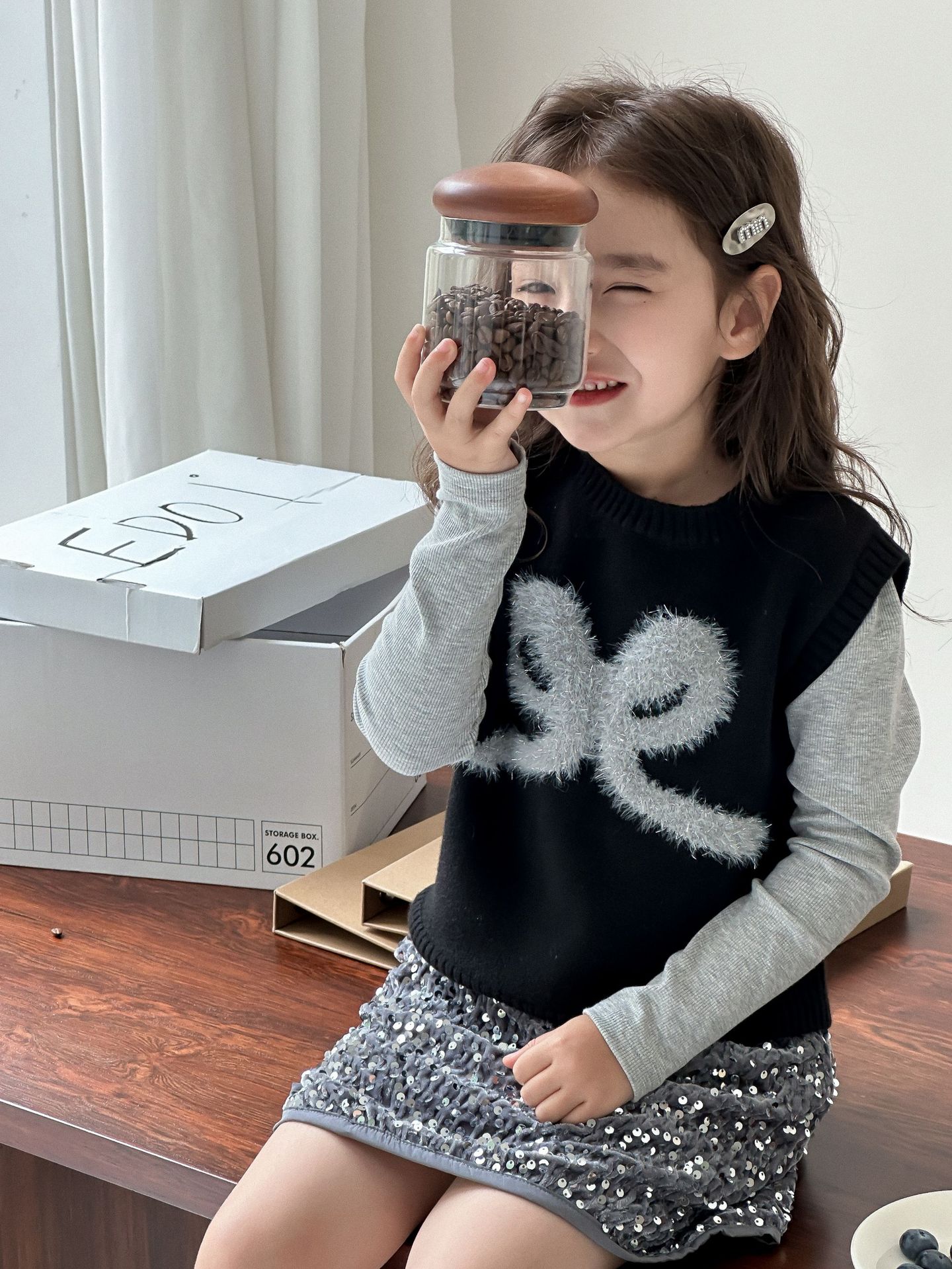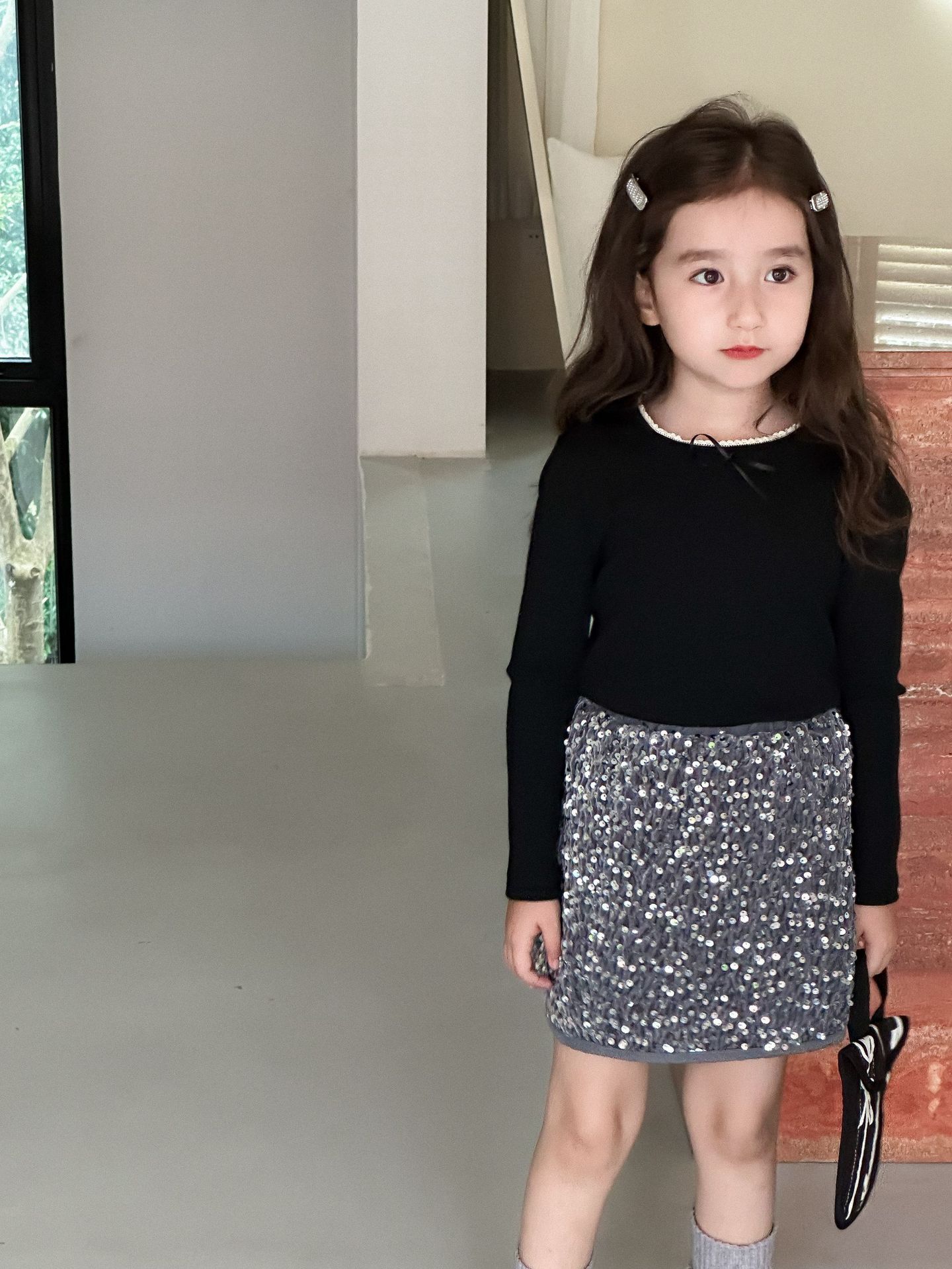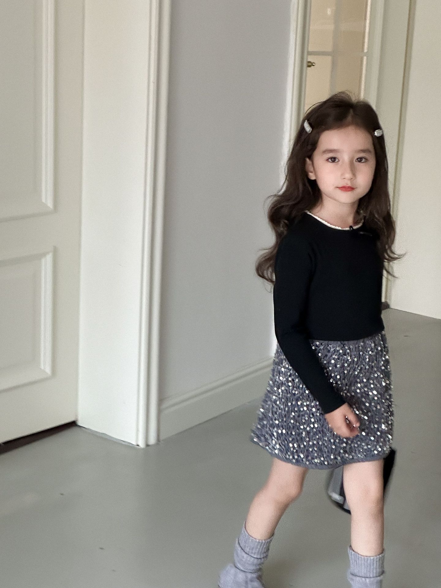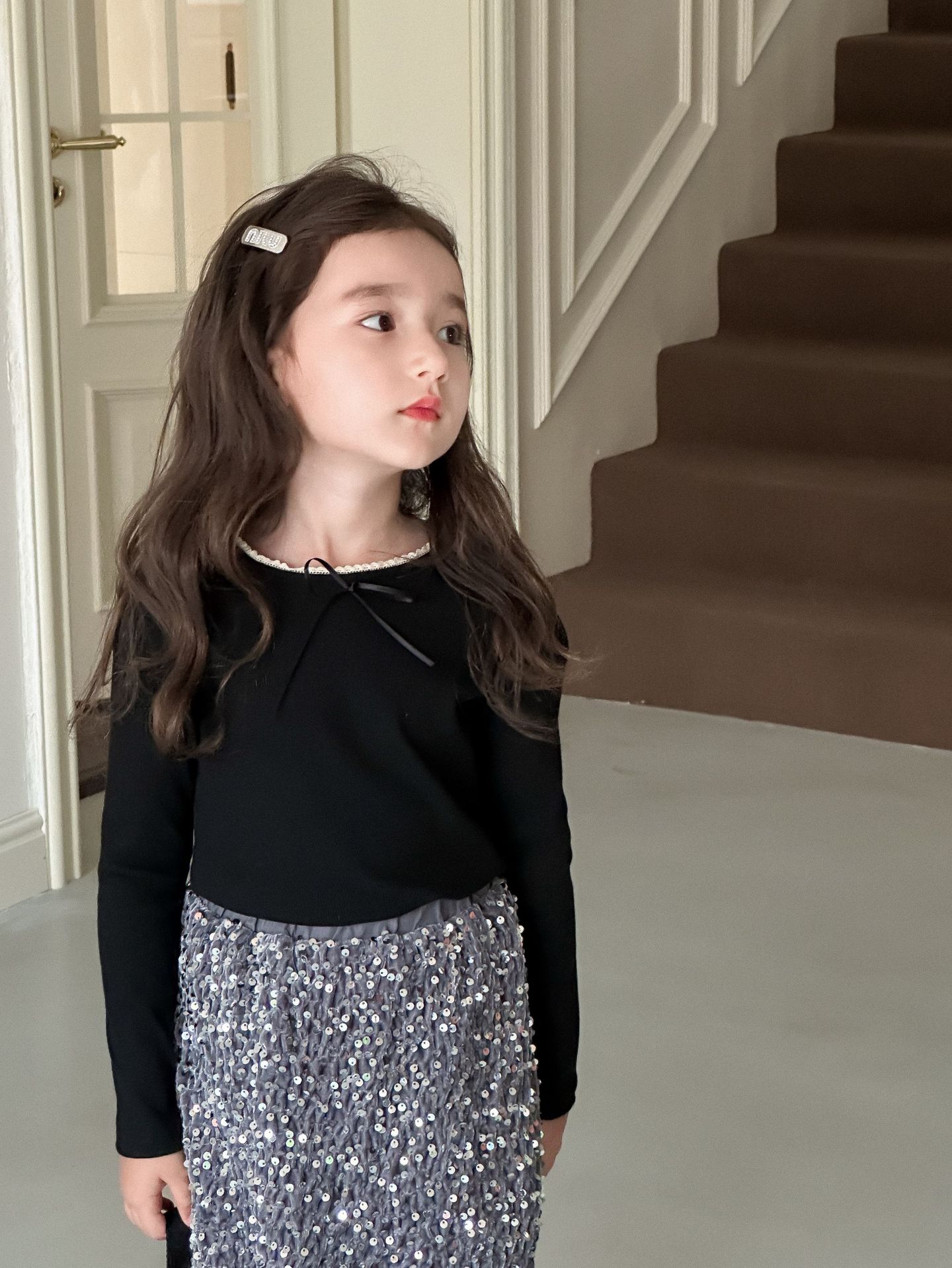 여아 레이스 칼라 밑단 셔츠 2025 가을 신상 한국 스타일 고탄성 긴팔 T 아동용 리본 탑