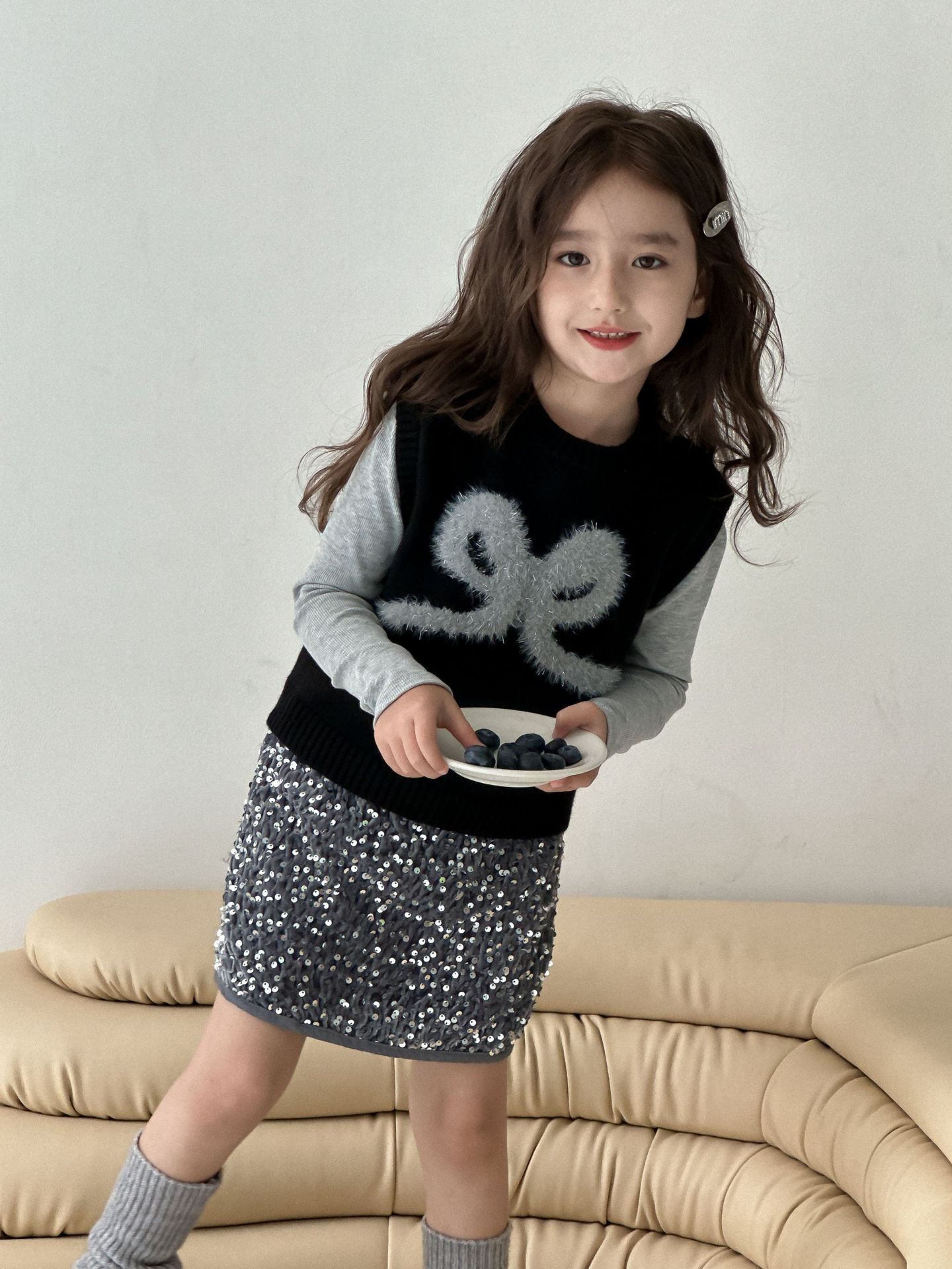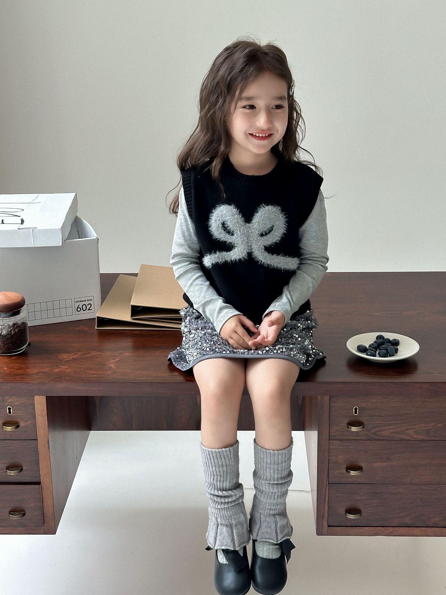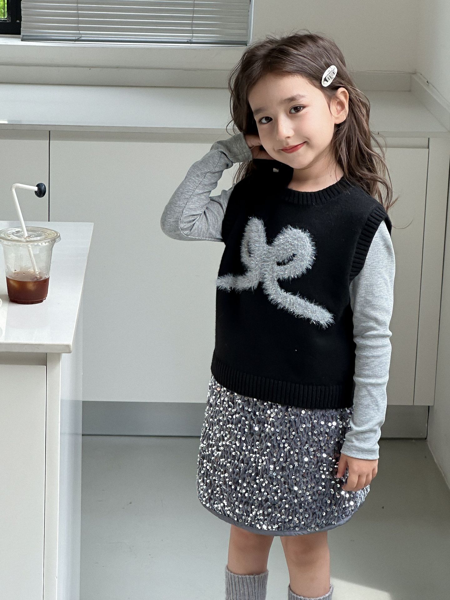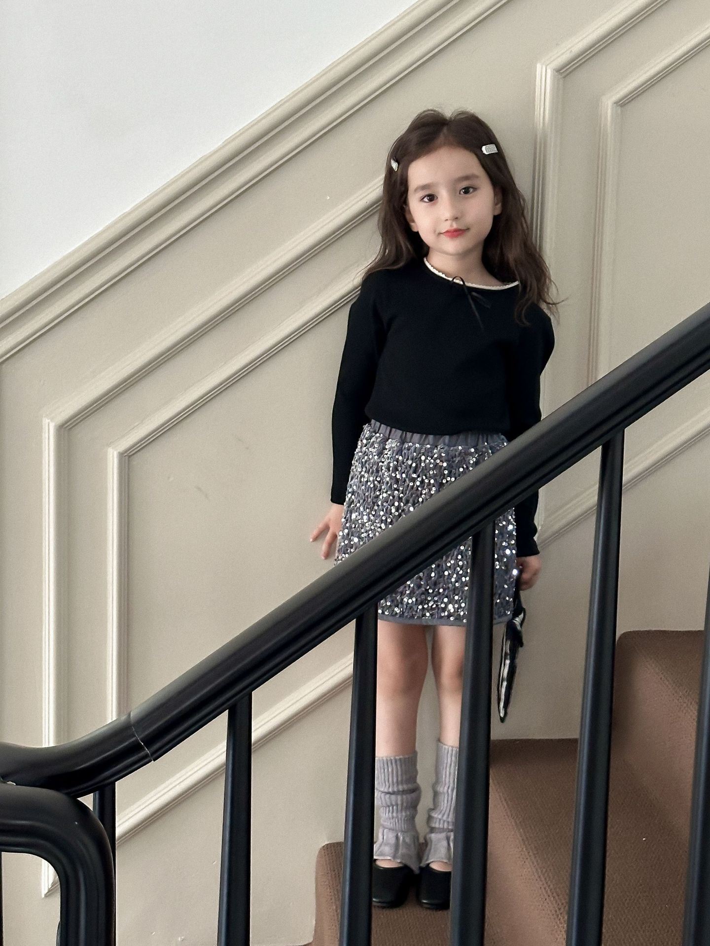 여아 레이스 칼라 밑단 셔츠 2025 가을 신상 한국 스타일 고탄성 긴팔 T 아동용 리본 탑