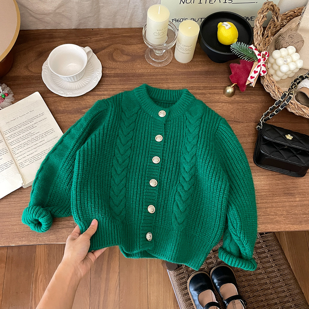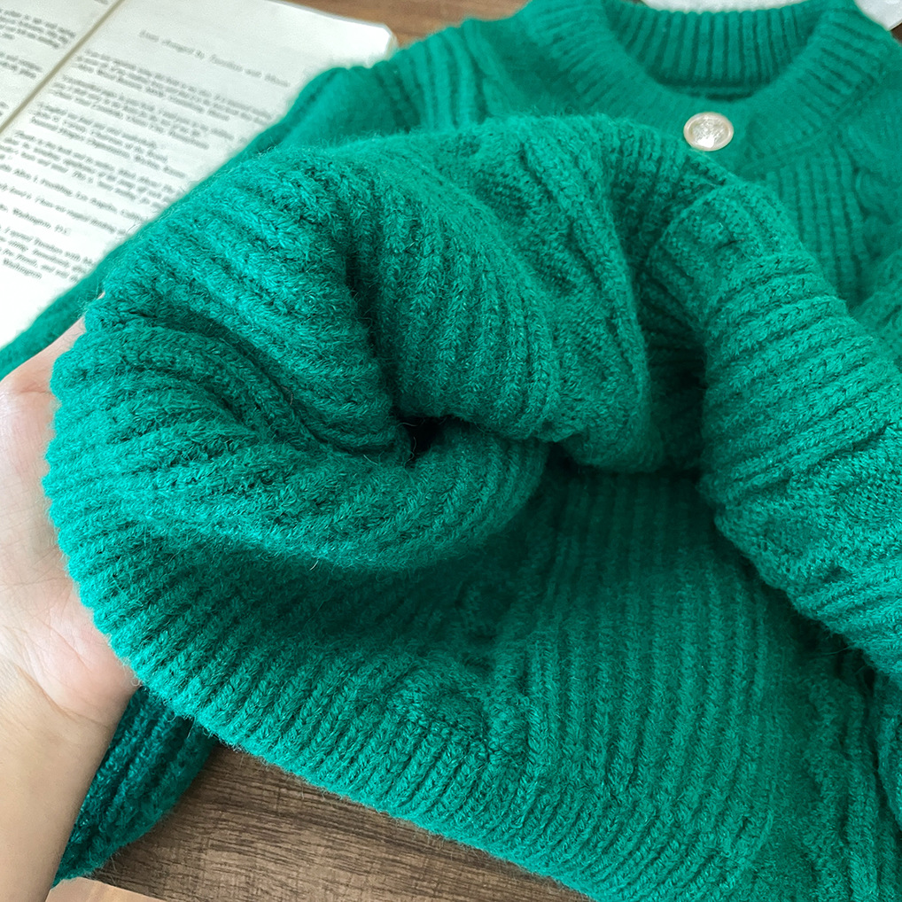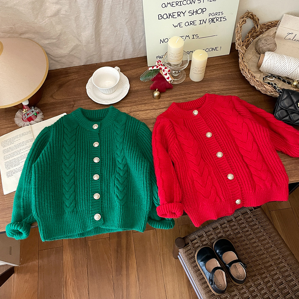 2026년 신상 아기 가을 겨울 의류 여아용 빨간색 녹색 가디건 두꺼운 니트 스웨터 코트 트렌디한 가을 겨울