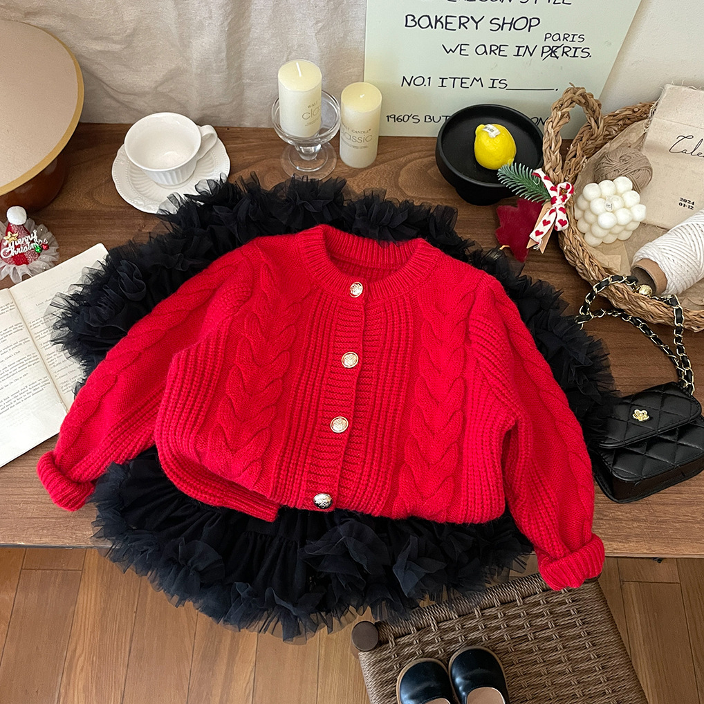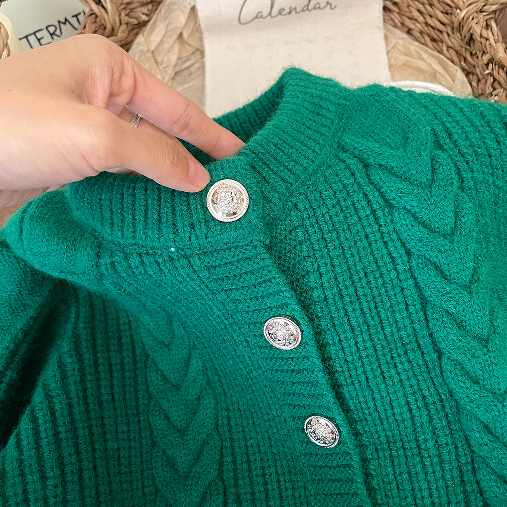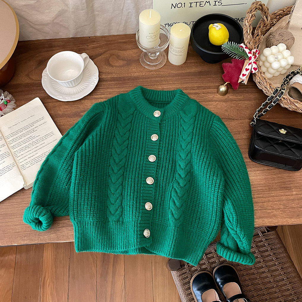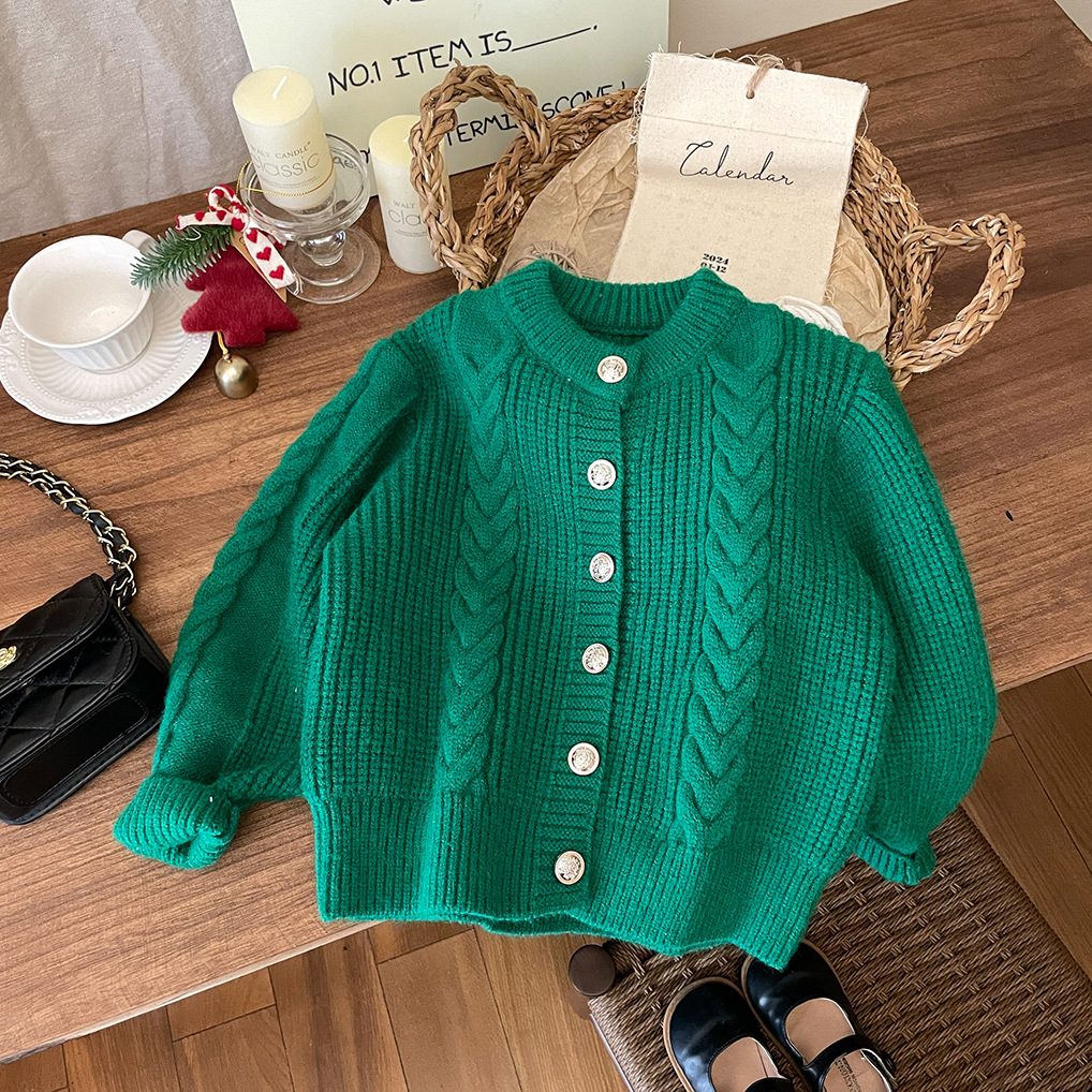 2026년 신상 아기 가을 겨울 의류 여아용 빨간색 녹색 가디건 두꺼운 니트 스웨터 코트 트렌디한 가을 겨울
