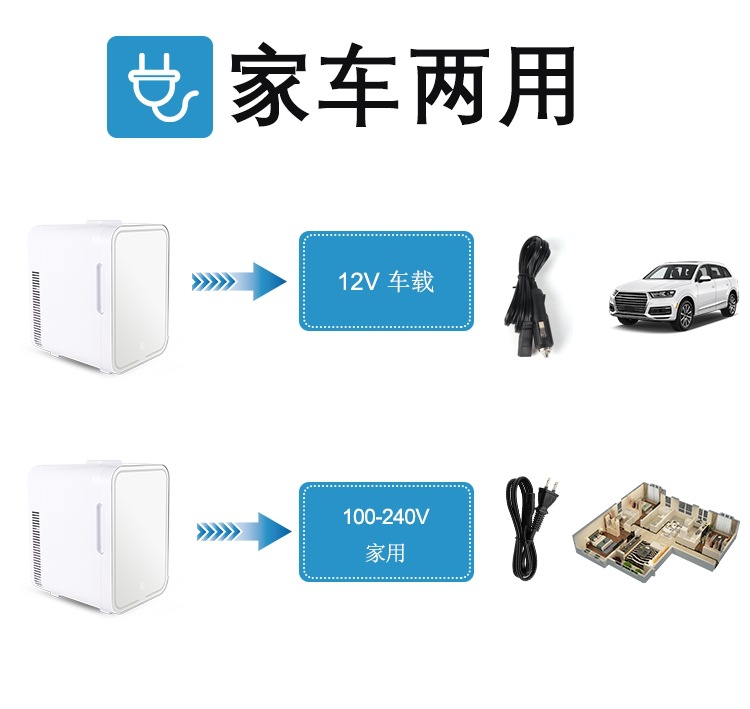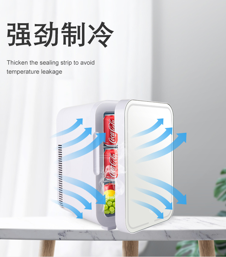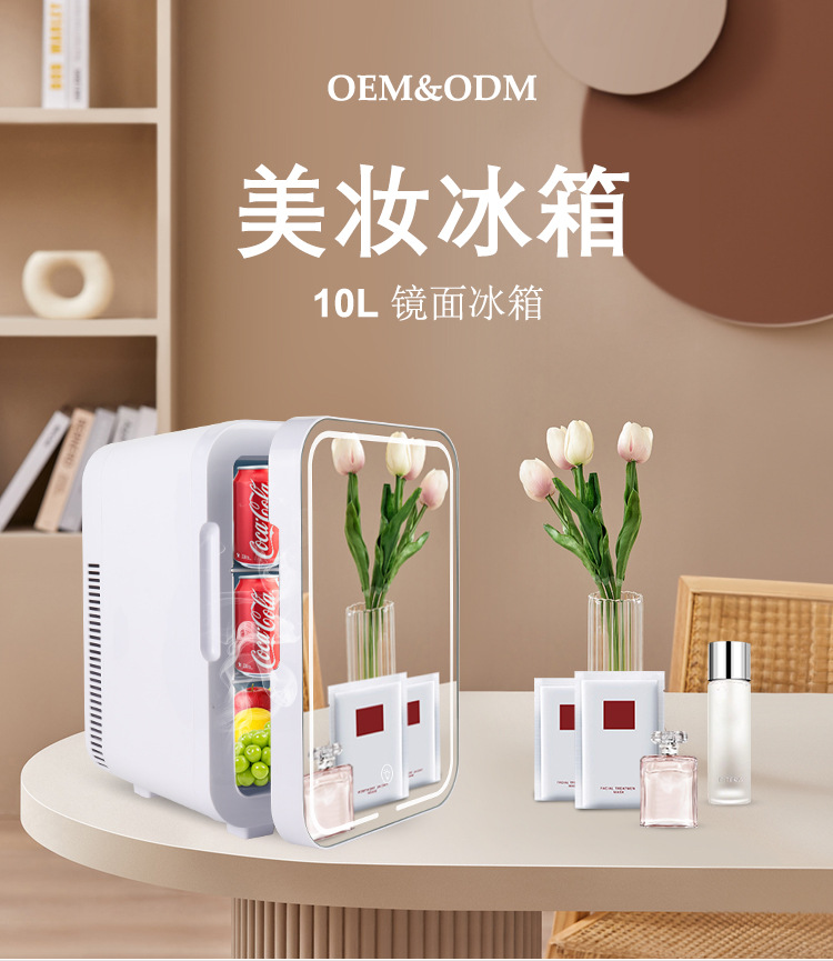 국경 간 수출 10L 뷰티 냉장고 스킨 케어 화장품 난방 및 냉각 홈 자동차 이중 목적 거울 LED 소형 냉장 냉장고