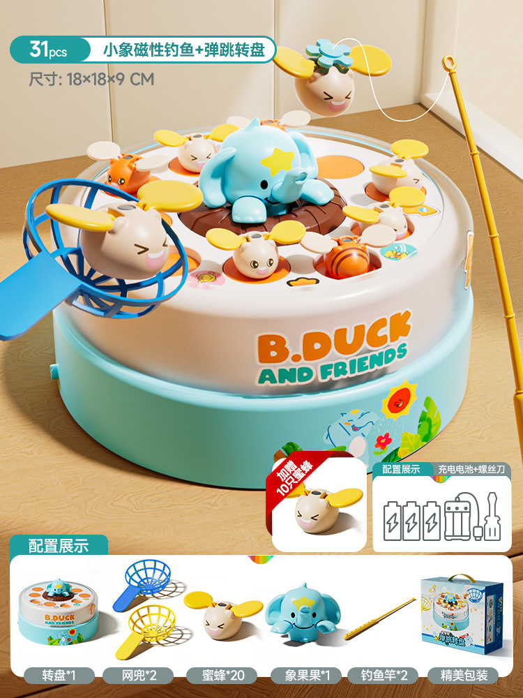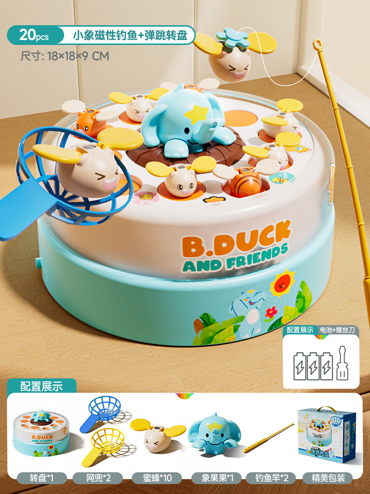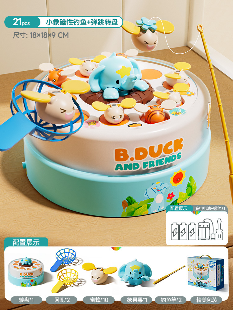 • [디럭스 에디션] 코끼리 과일 자석 낚시 + 바운스 투인원 턴테이블 + 무료 벌 10개 ★ 일반 배터리