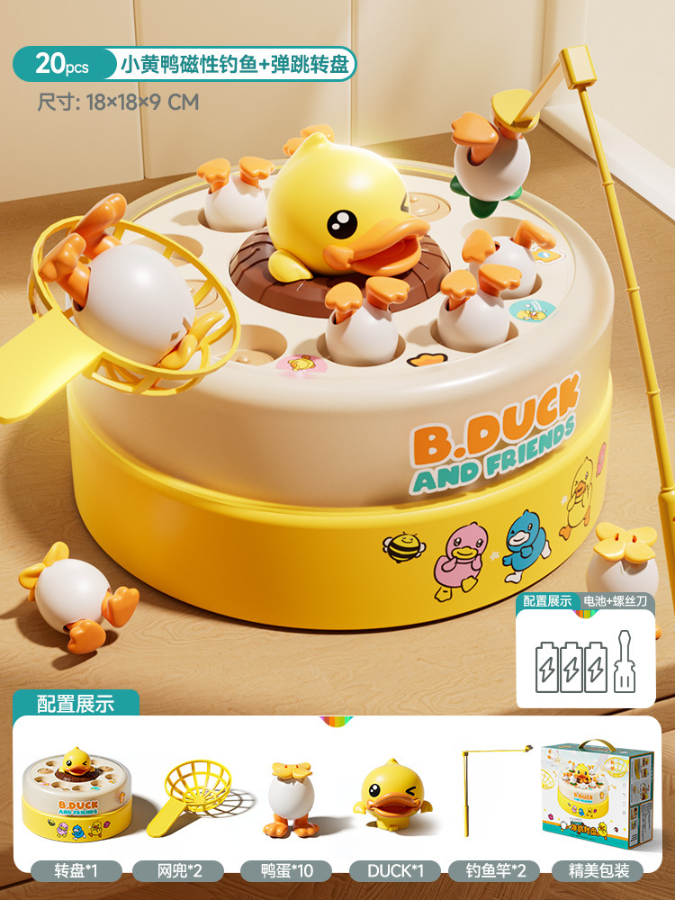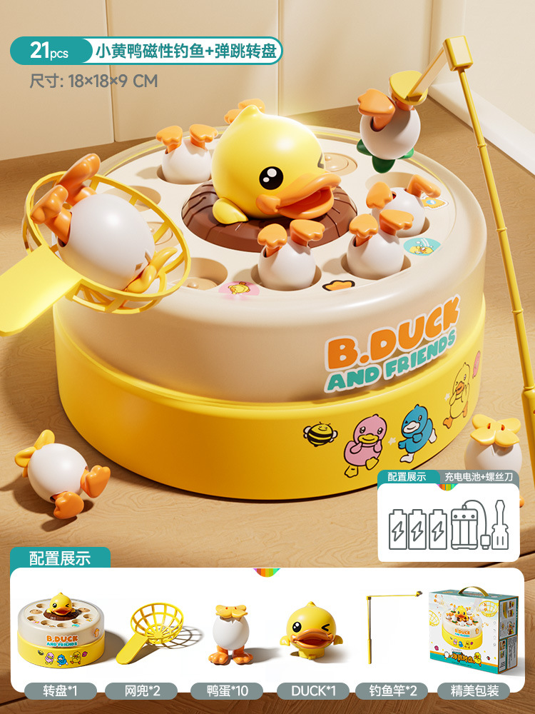 • [업그레이드 버전] 작은 노란 오리 자석 낚시 + 바운스 투인원 턴테이블★일반 배터리