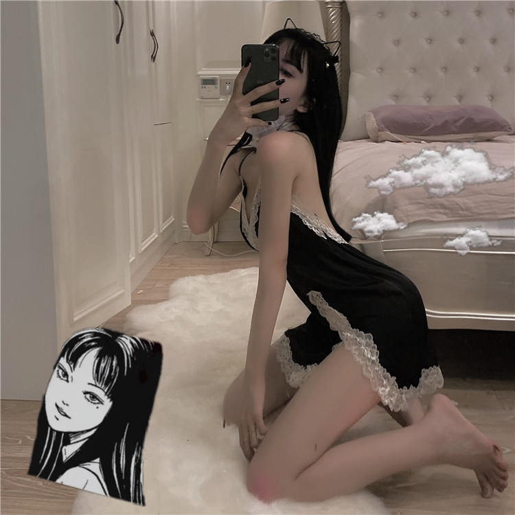 섹시한 슬링 나이트가운 여름 얇은 파자마 여성 나이트 샵 로우 컷 백리스 짧은 스커트 스플릿 타이트복 성인스토어 가기