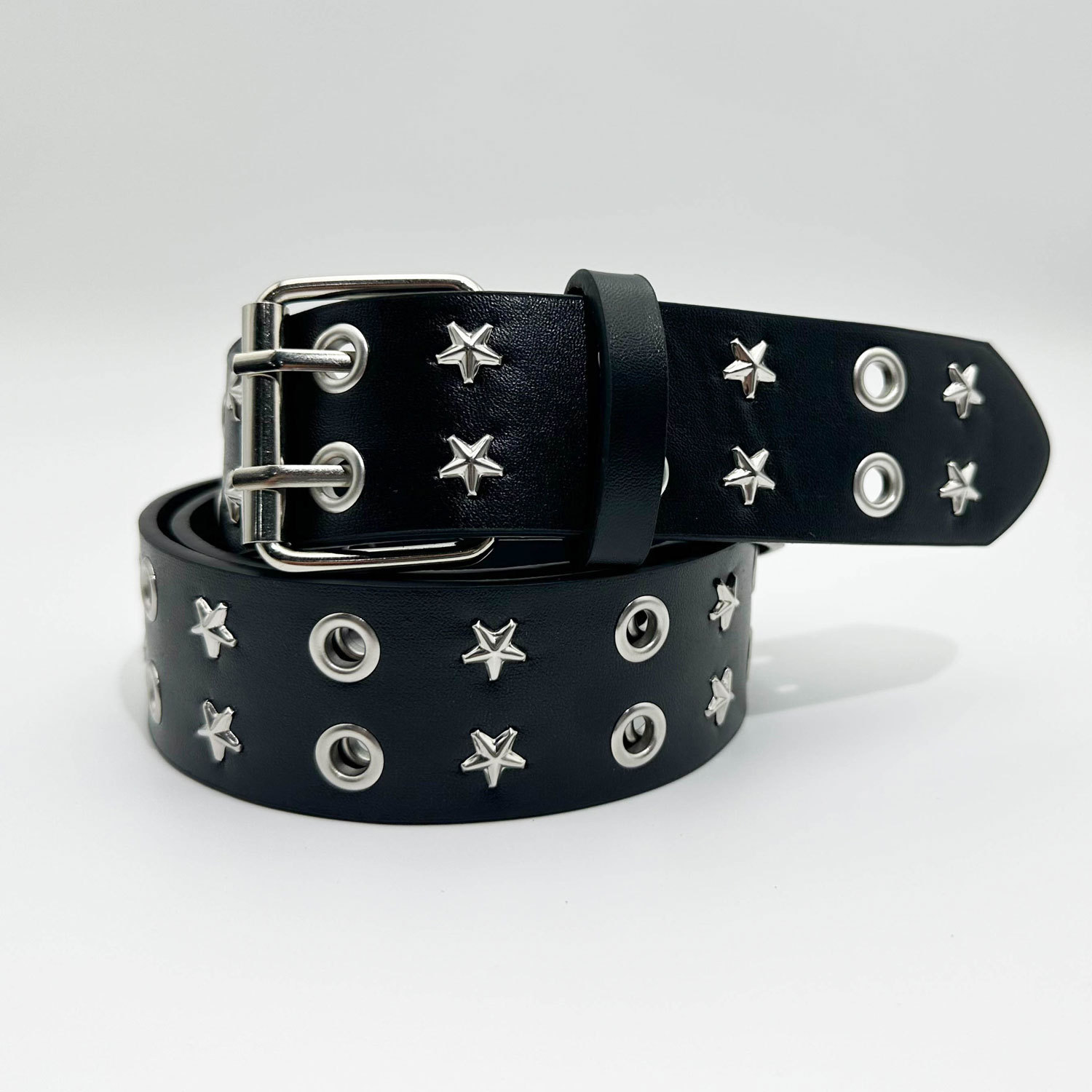 리벳 벨트 블랙 스파이스 펑크 남녀 다발 스타 총알 리벳 버클 청바지 벨트