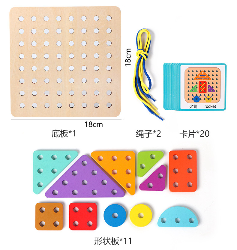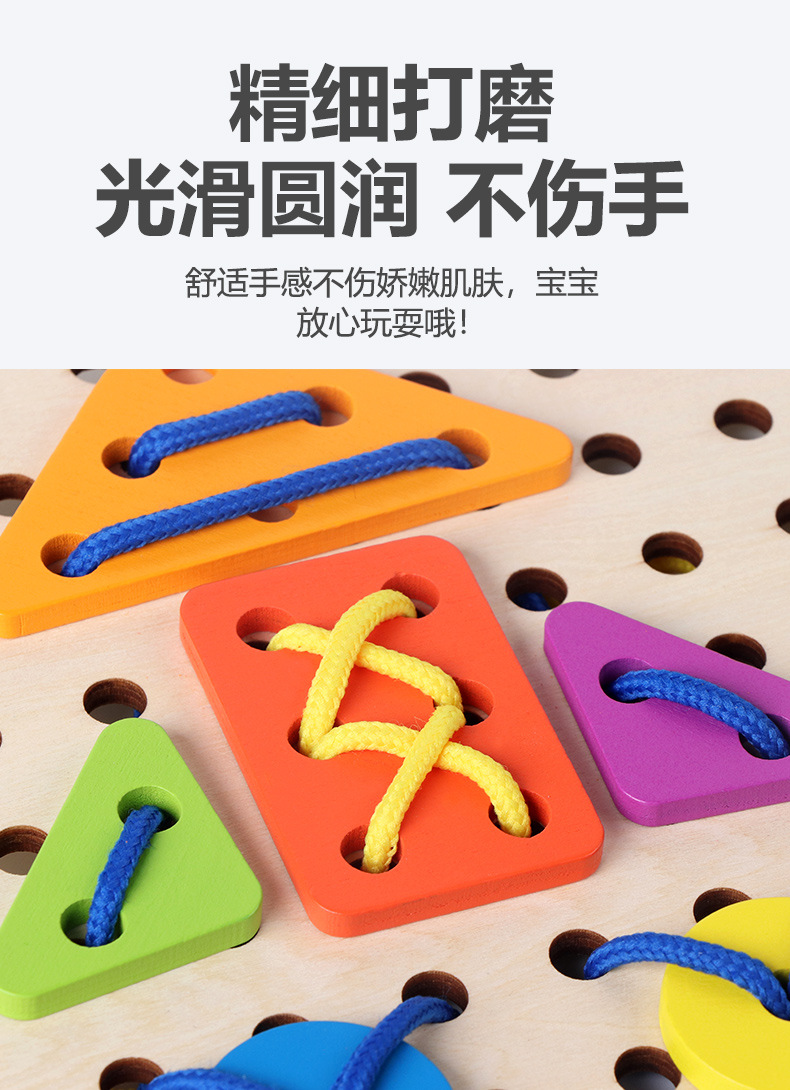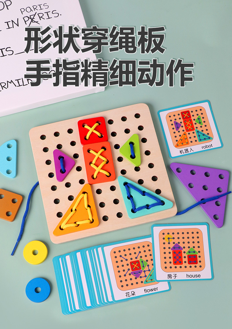 새로운 몬테소리 어린이 창조적 인 밧줄 착용 게임 아기 조기 교육 교육 다양한 모양 일치하는 재미있는 건물 블록 장난감