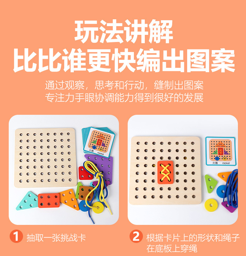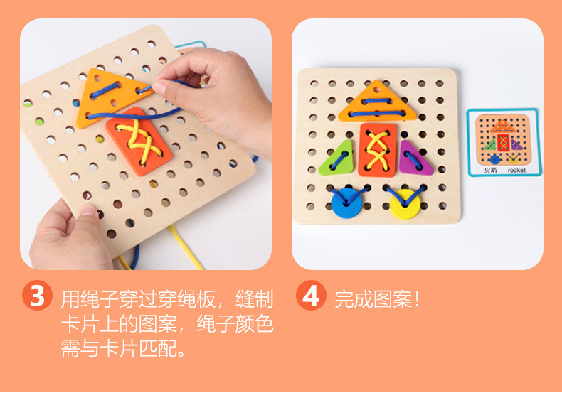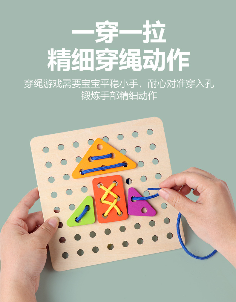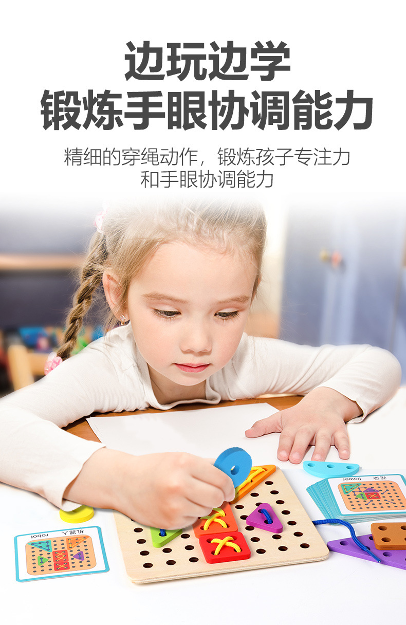 새로운 몬테소리 어린이 창조적 인 밧줄 착용 게임 아기 조기 교육 교육 다양한 모양 일치하는 재미있는 건물 블록 장난감스토어 가기